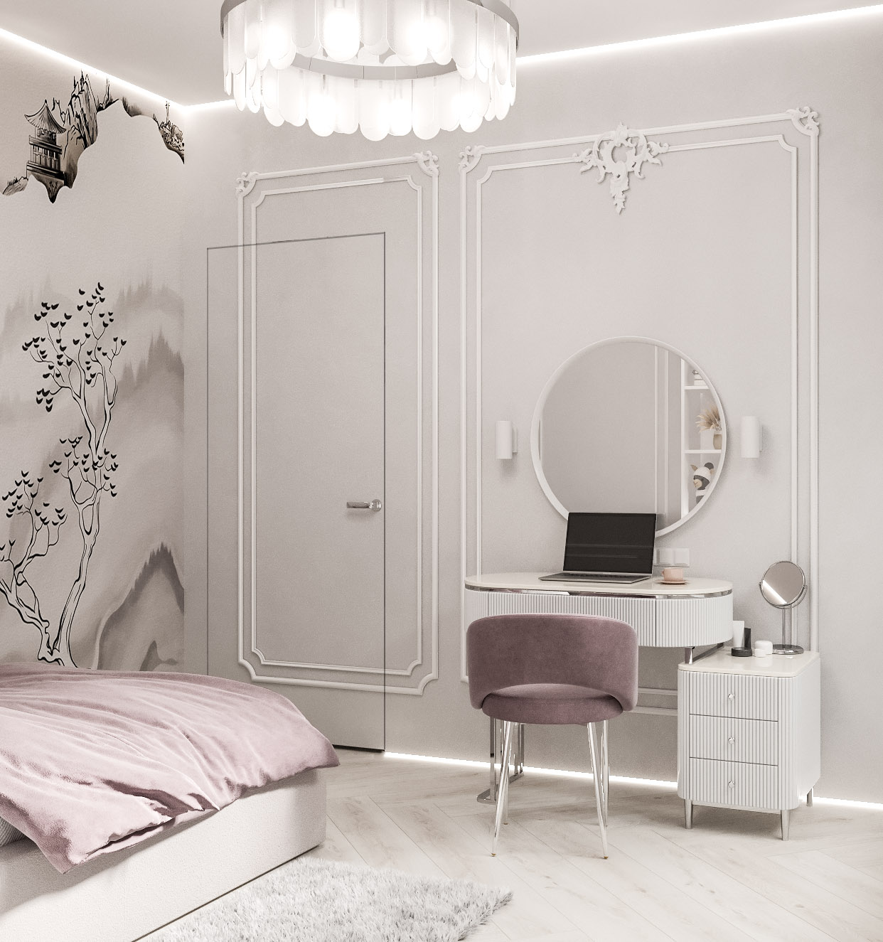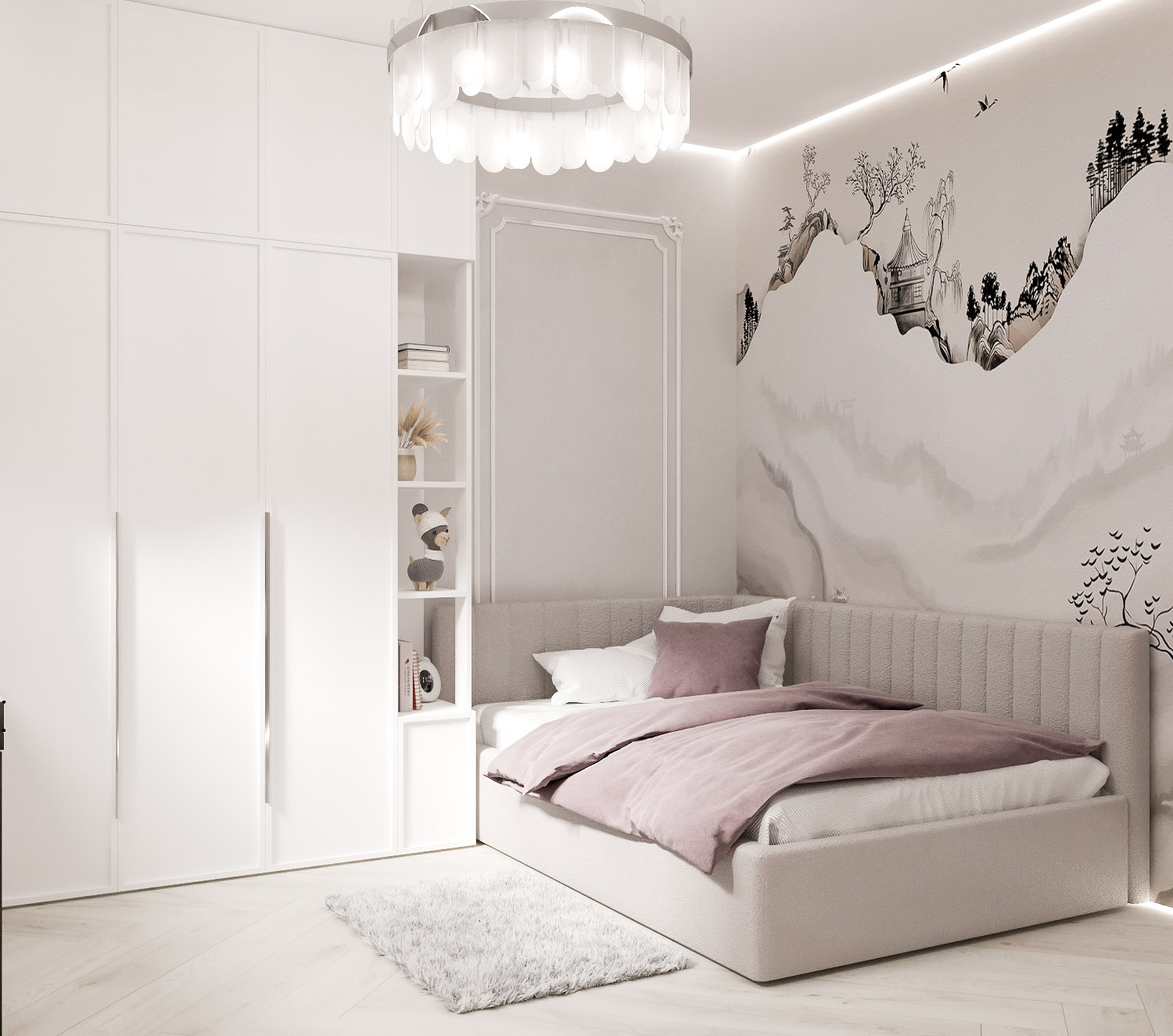 Детская комната для девочки-подростка. Обои из коллекции BUSIDO. Создавая эту коллекцию, дизайнеры вдохновлялись уникальной культурой Японии: от знаменитой графики, каллиграфии, живописи до архитектуры. Цвета коллекции представлены в двух версиях: насыщенные и приглушенные, что расширяет границы ее применения.