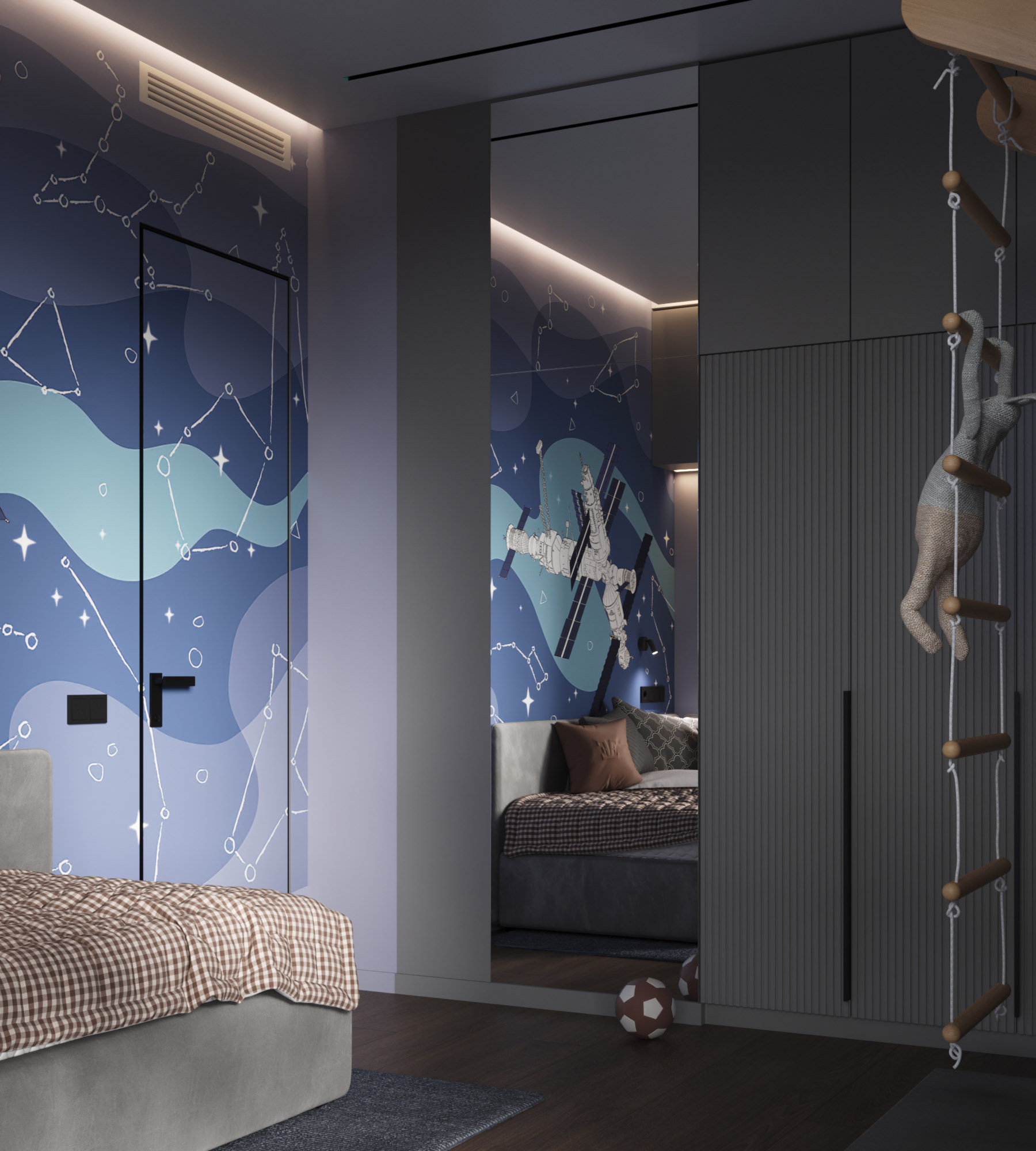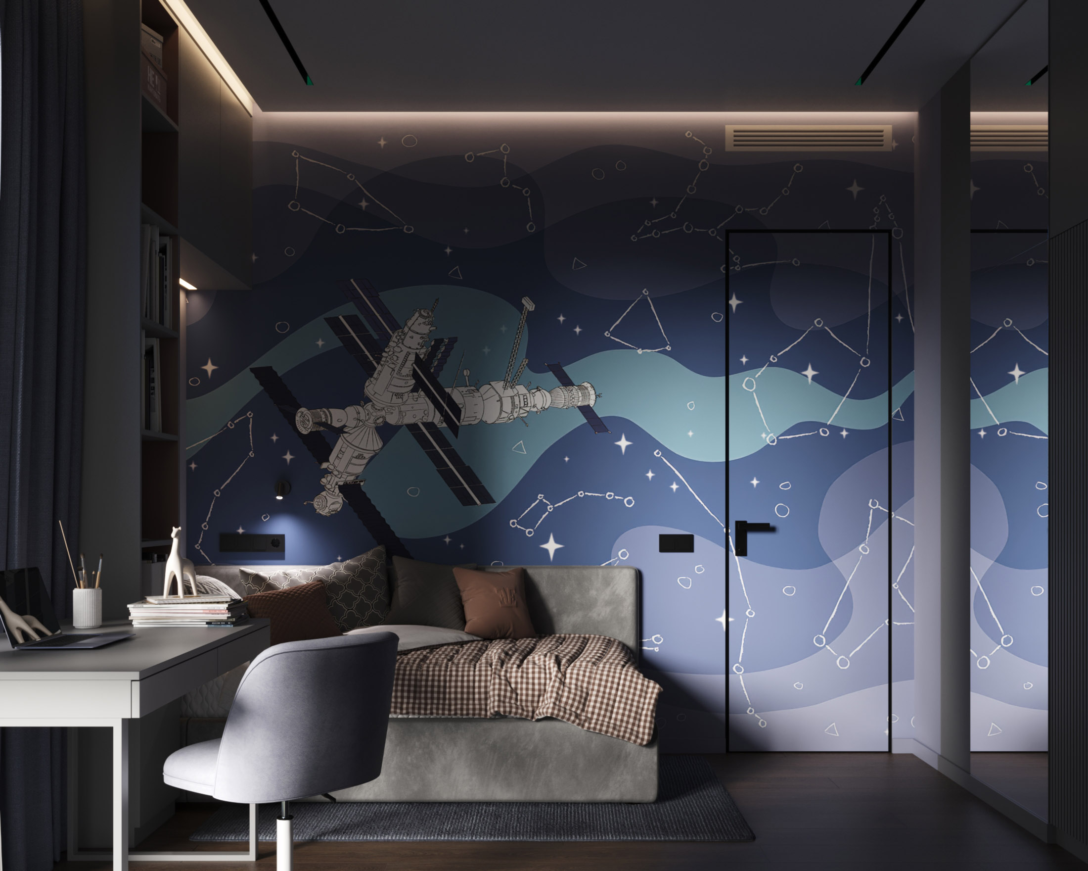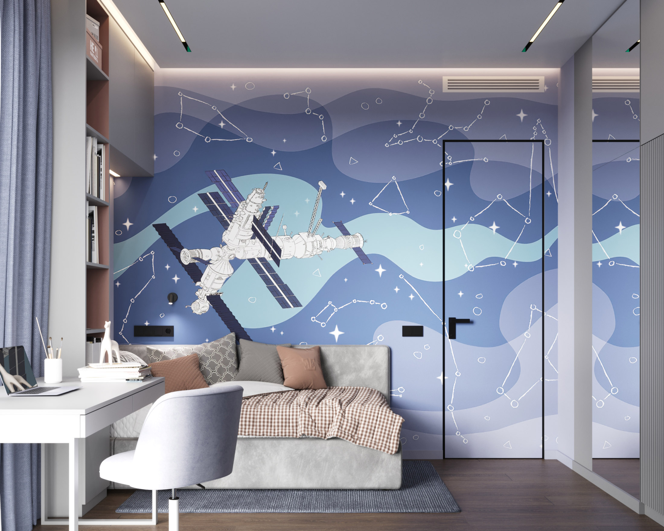 Детская с космическими обоями Childhood Space и скрытой дверью