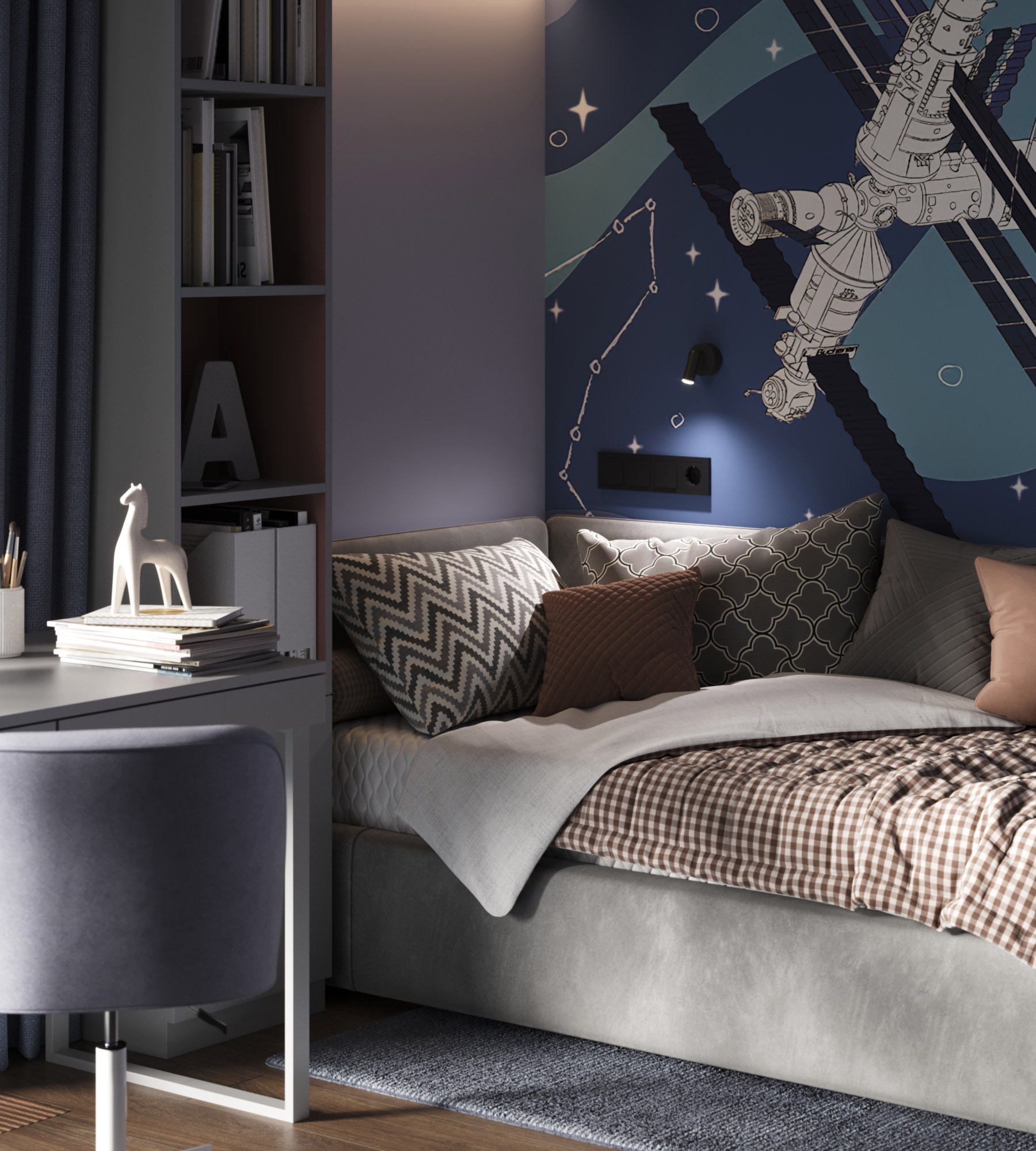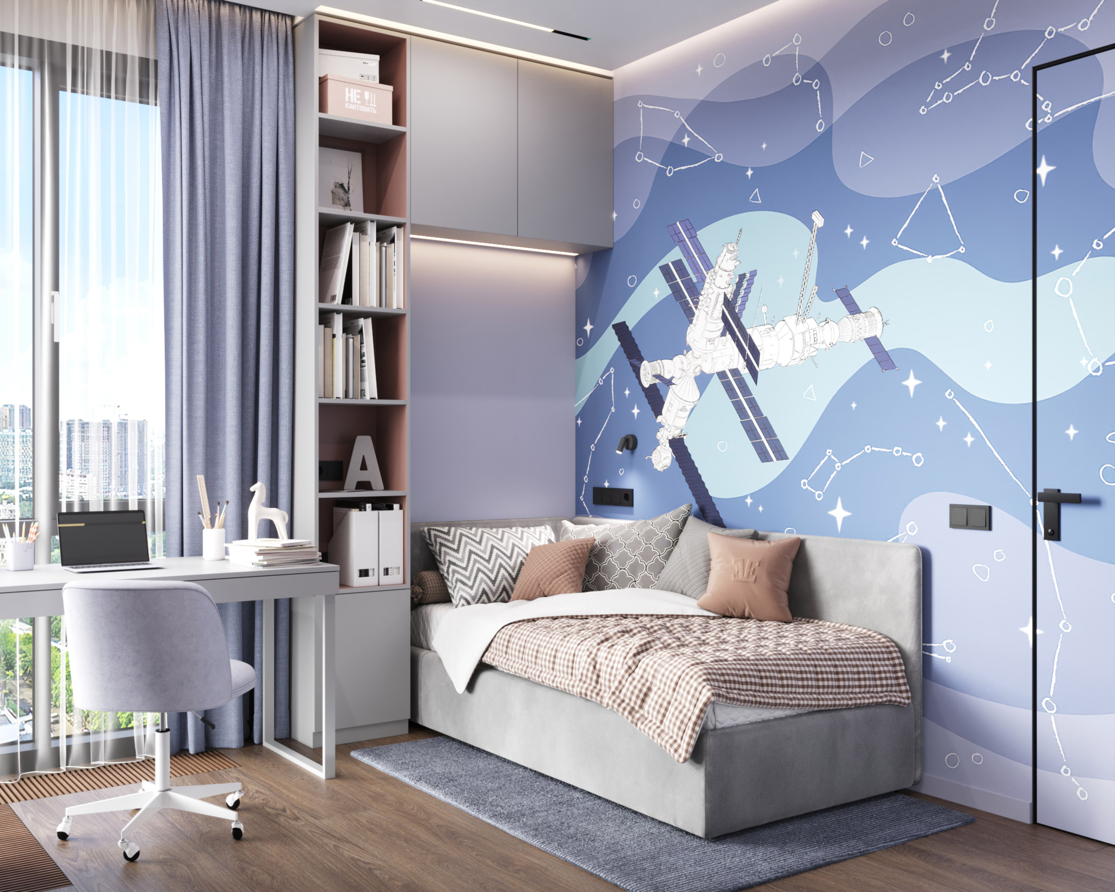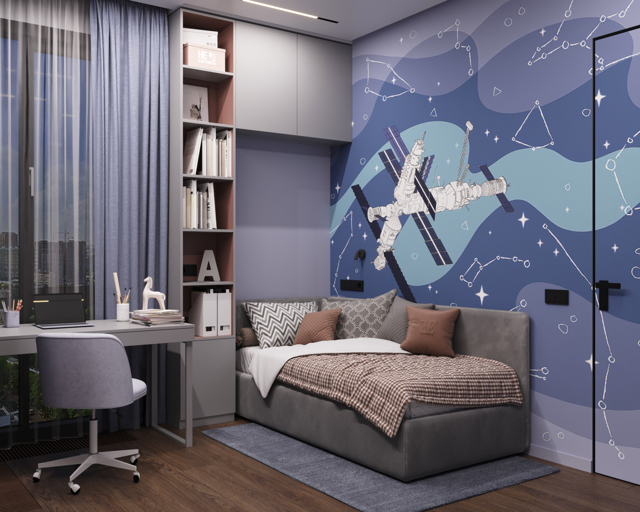 Детская с космическими обоями Childhood Space и скрытой дверью