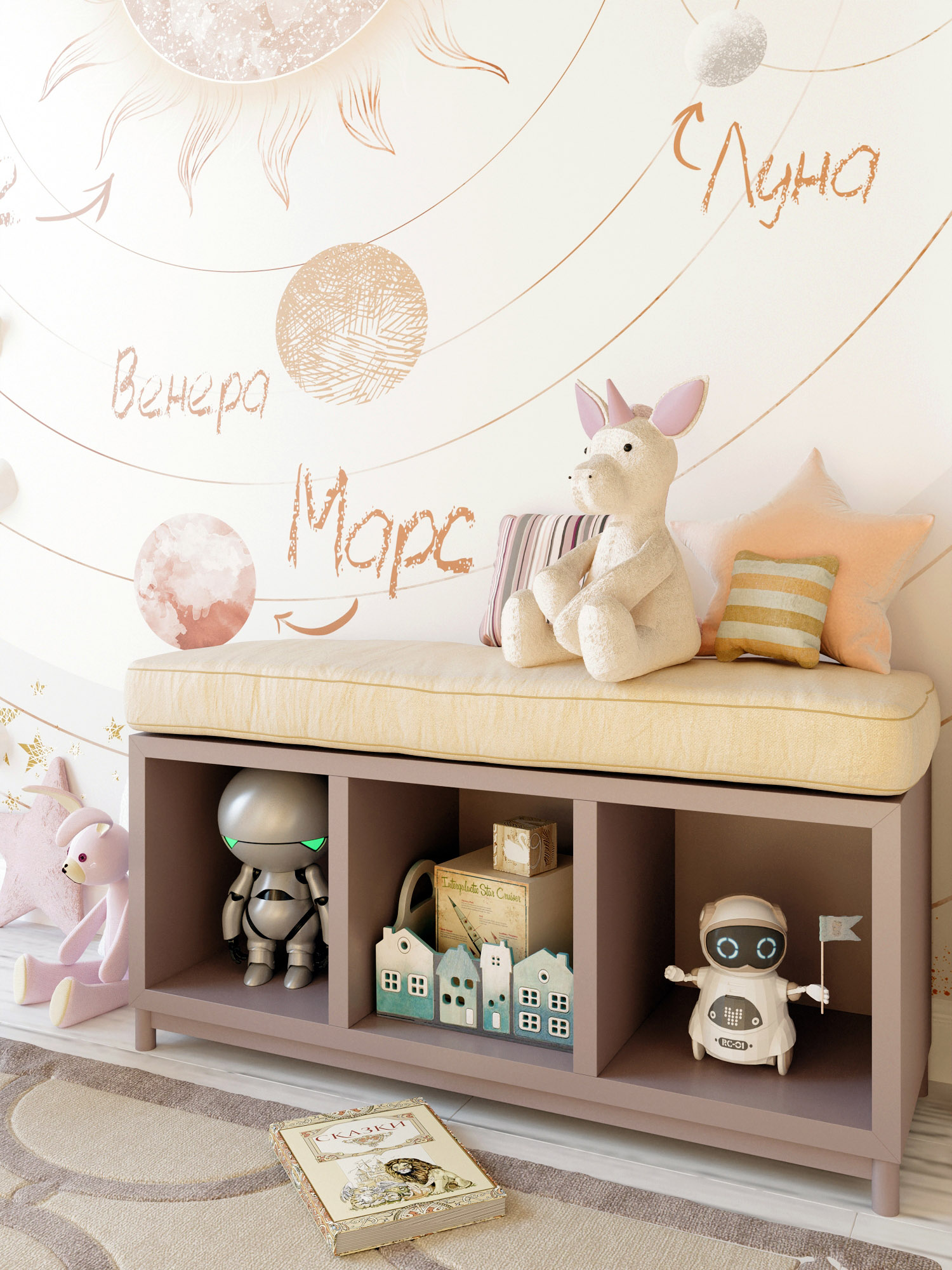 любимые игрушки, но и изучать солнечную систему на необычных обоях из