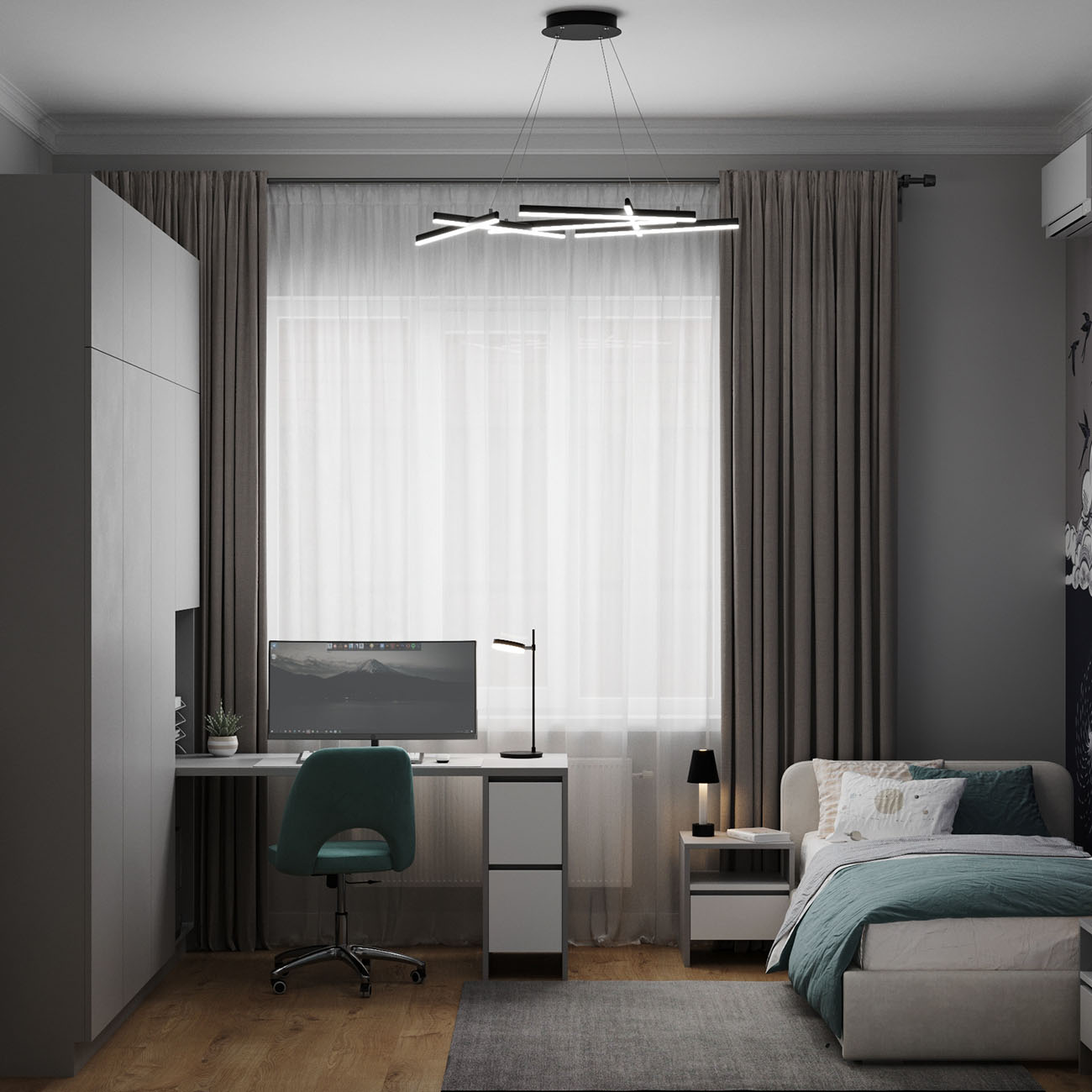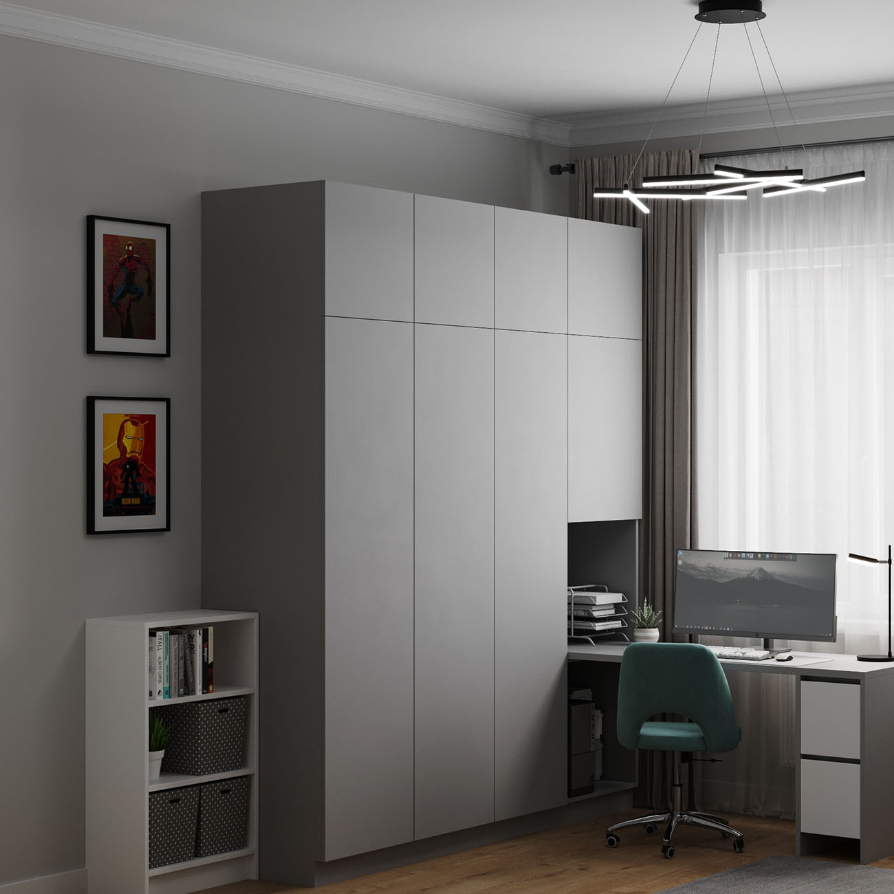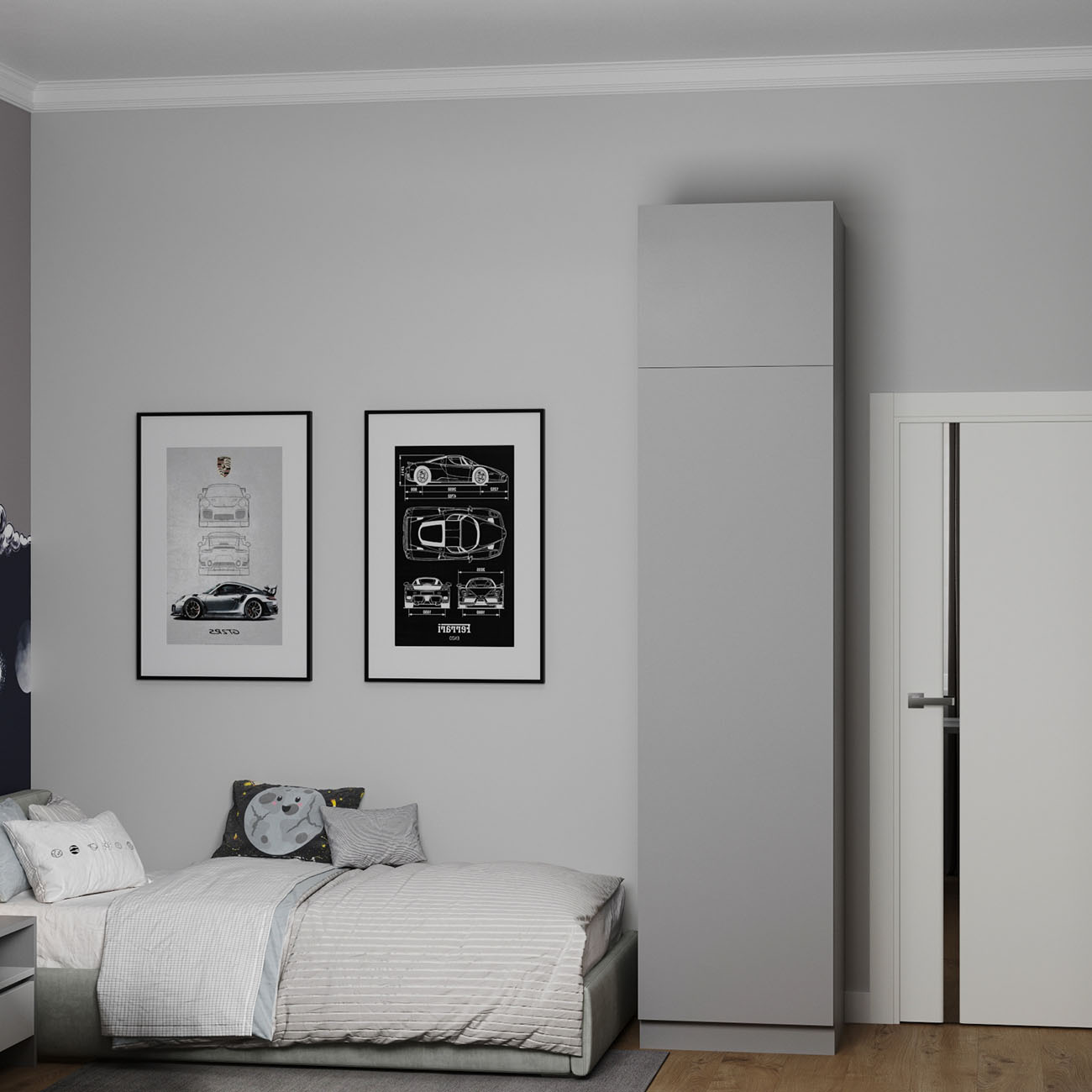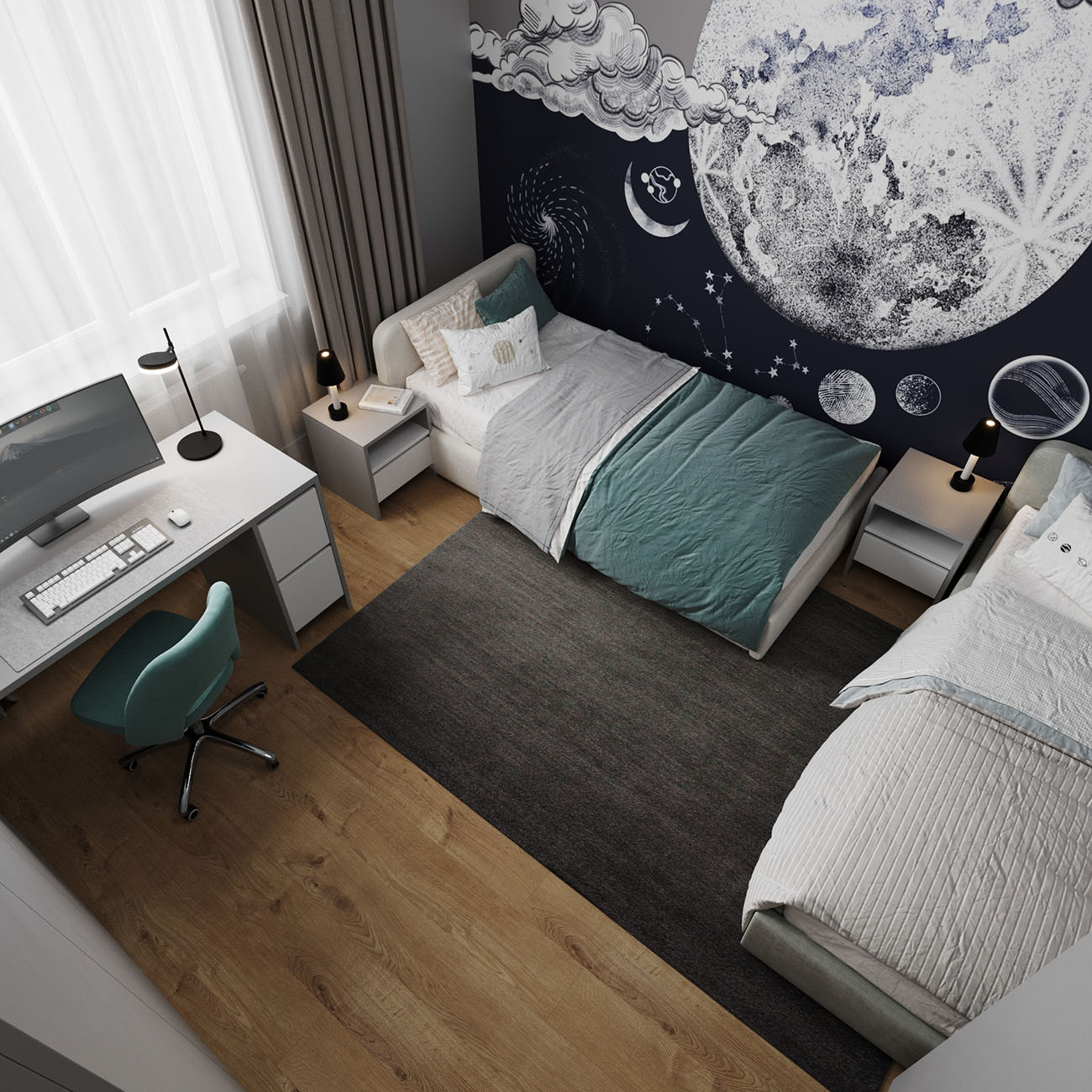 Проект детской комнаты для двоих детей в городе Ростов-на-Дону. Площадь комнаты — 15,8 кв.м. Заказчики хотели что-то необычное в детской, что подчеркнуло бы ее и стало акцентом. И эта луна попала в самое сердечко!