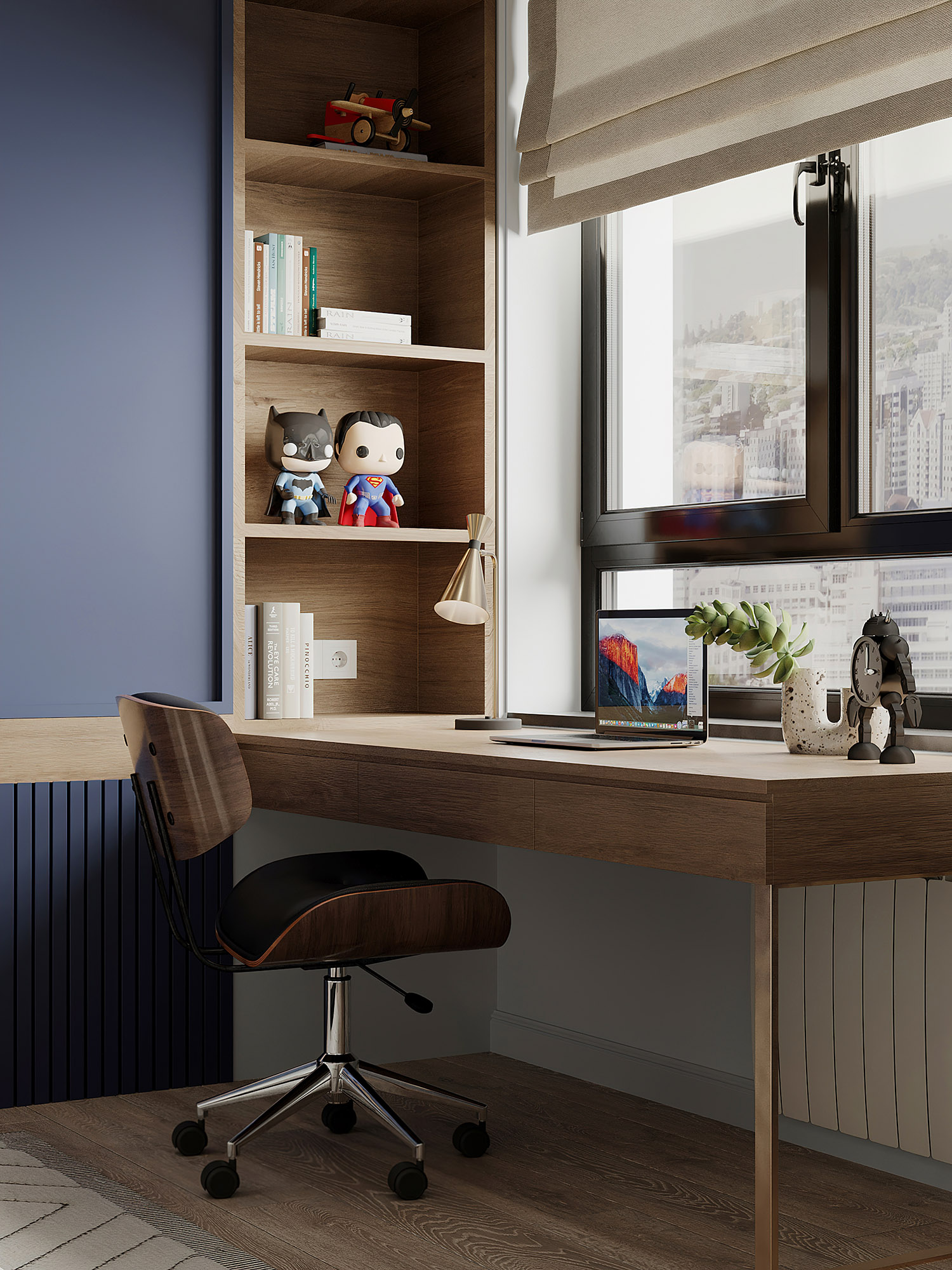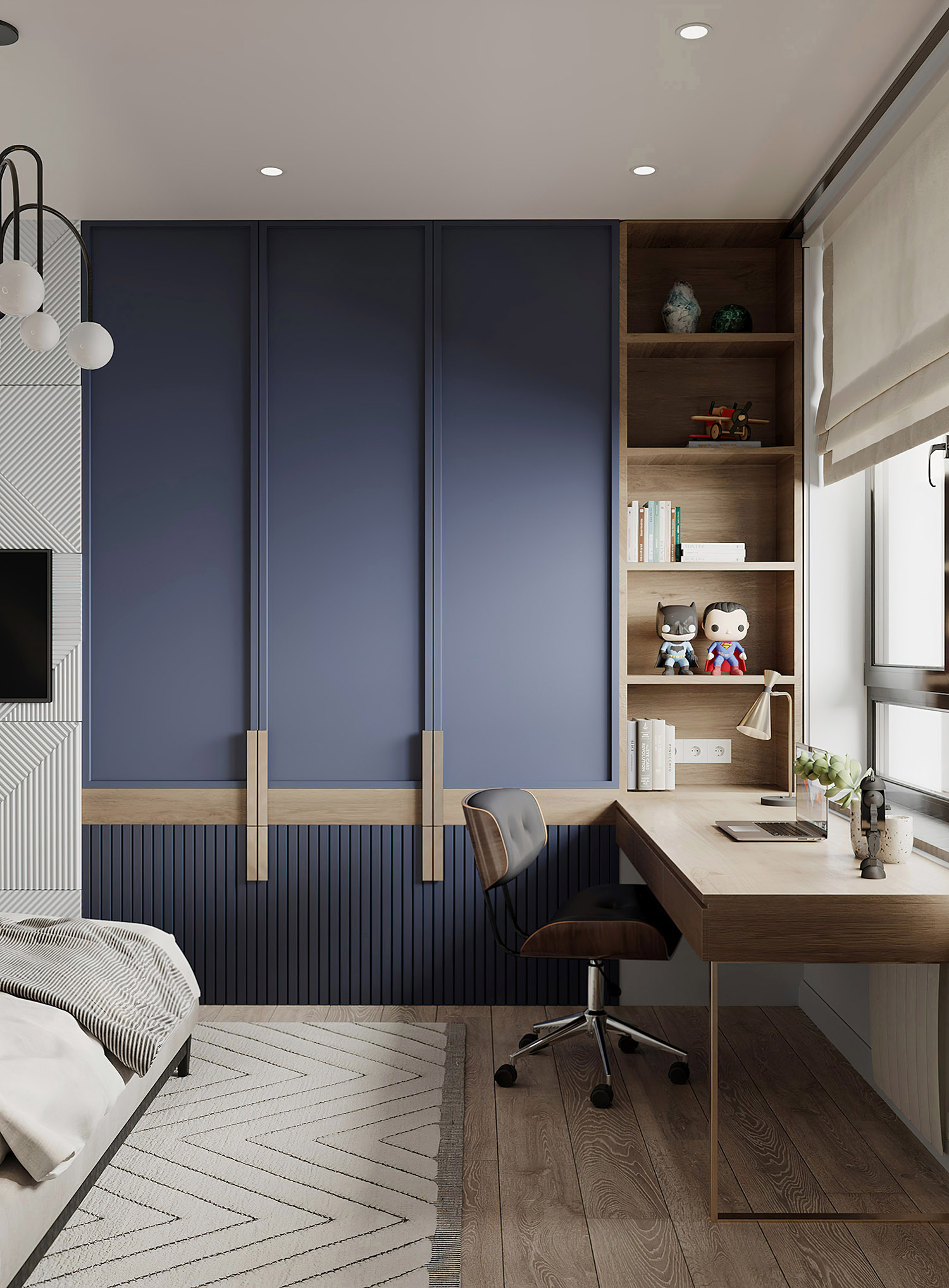 Как и в других проектах, обои и здесь стали той самой отправной точкой, вокруг которой создавался интерьер комнаты. А для создания идеального пространства и развития фантазии дизайнер наполнил этот интерьер интересными уютными деталями, чтобы маленькому мечтателю в его детской было по-настоящему комфортно.
