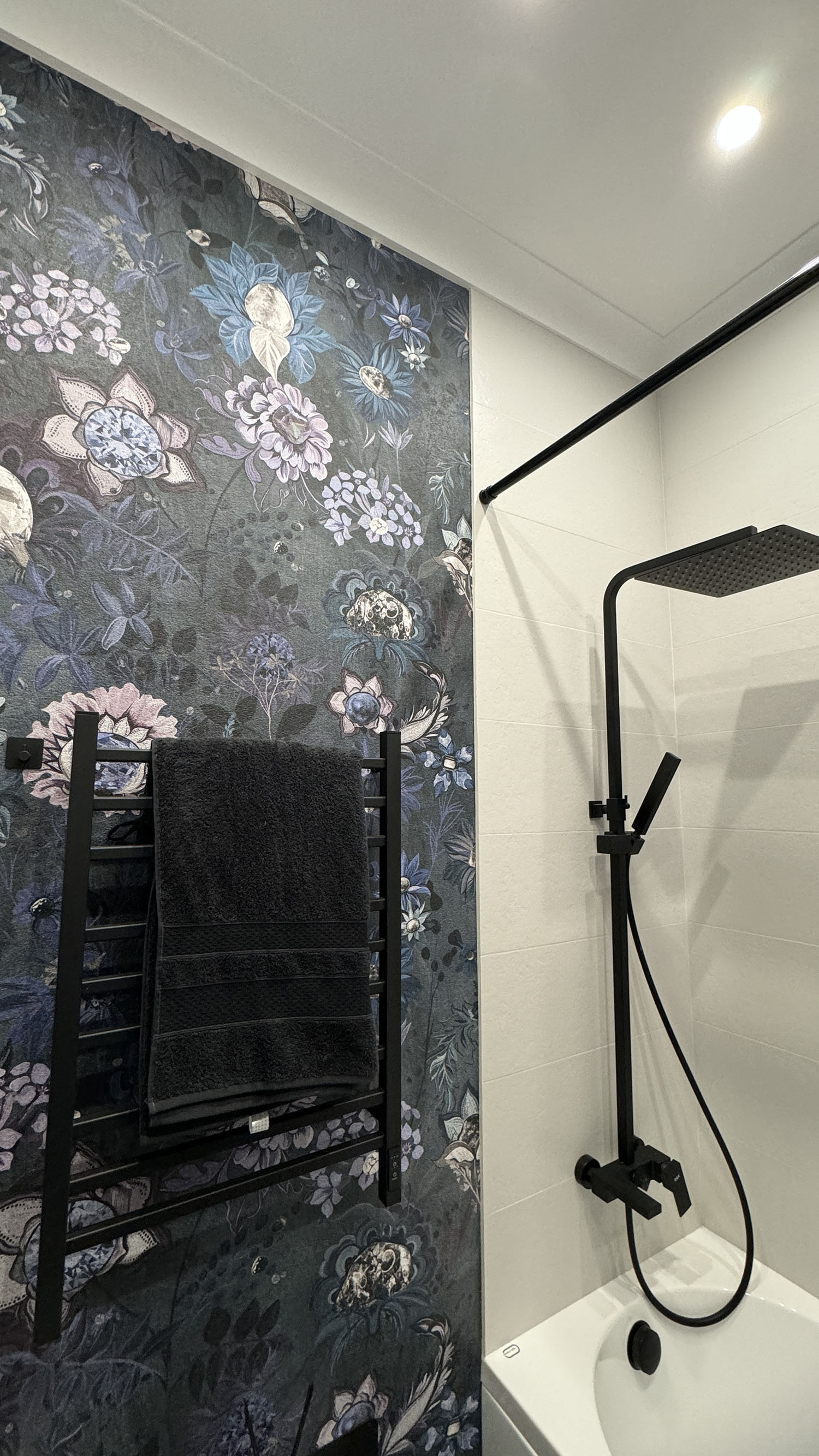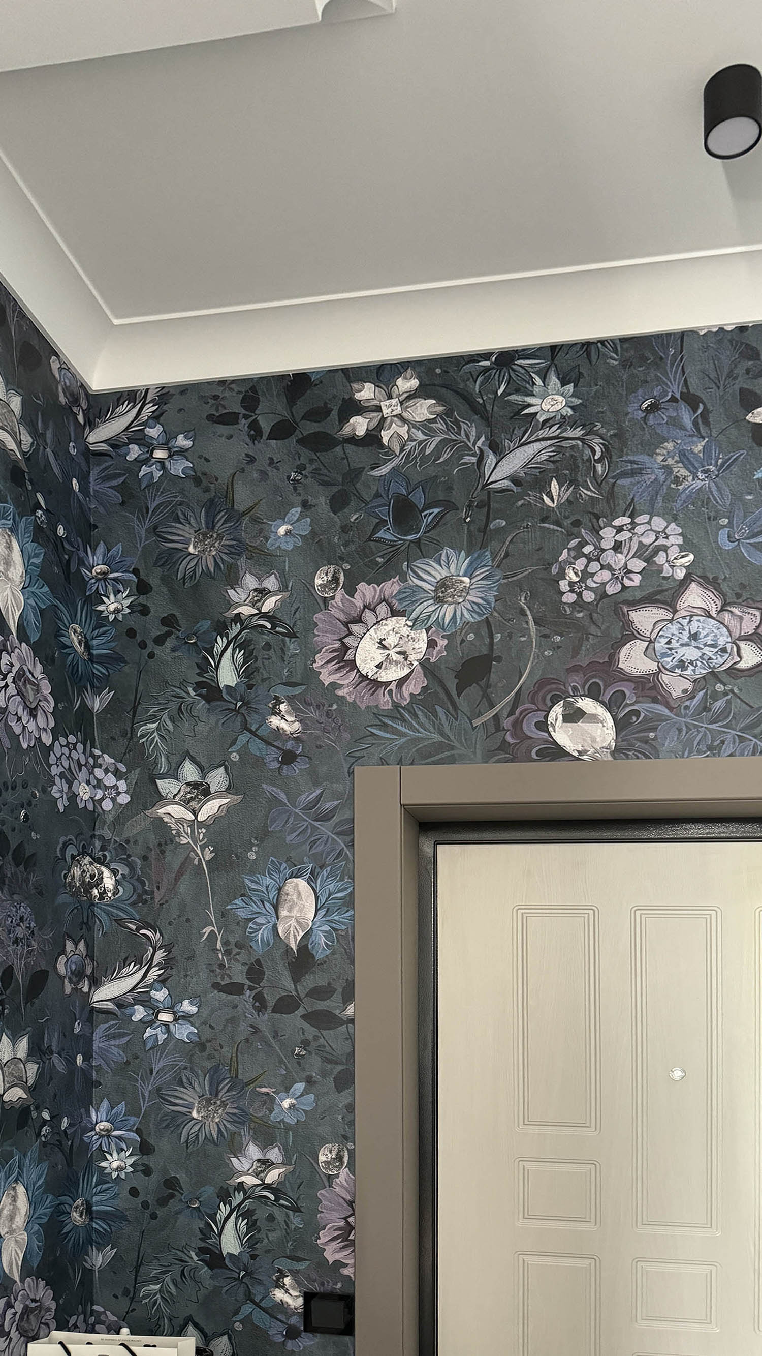 Очень важным моментом было убедиться, что оттенки на разных материалах обоев совпадают. Для этого заказали цветопробы, в результате — оттенки идеально подходят друг к другу.
