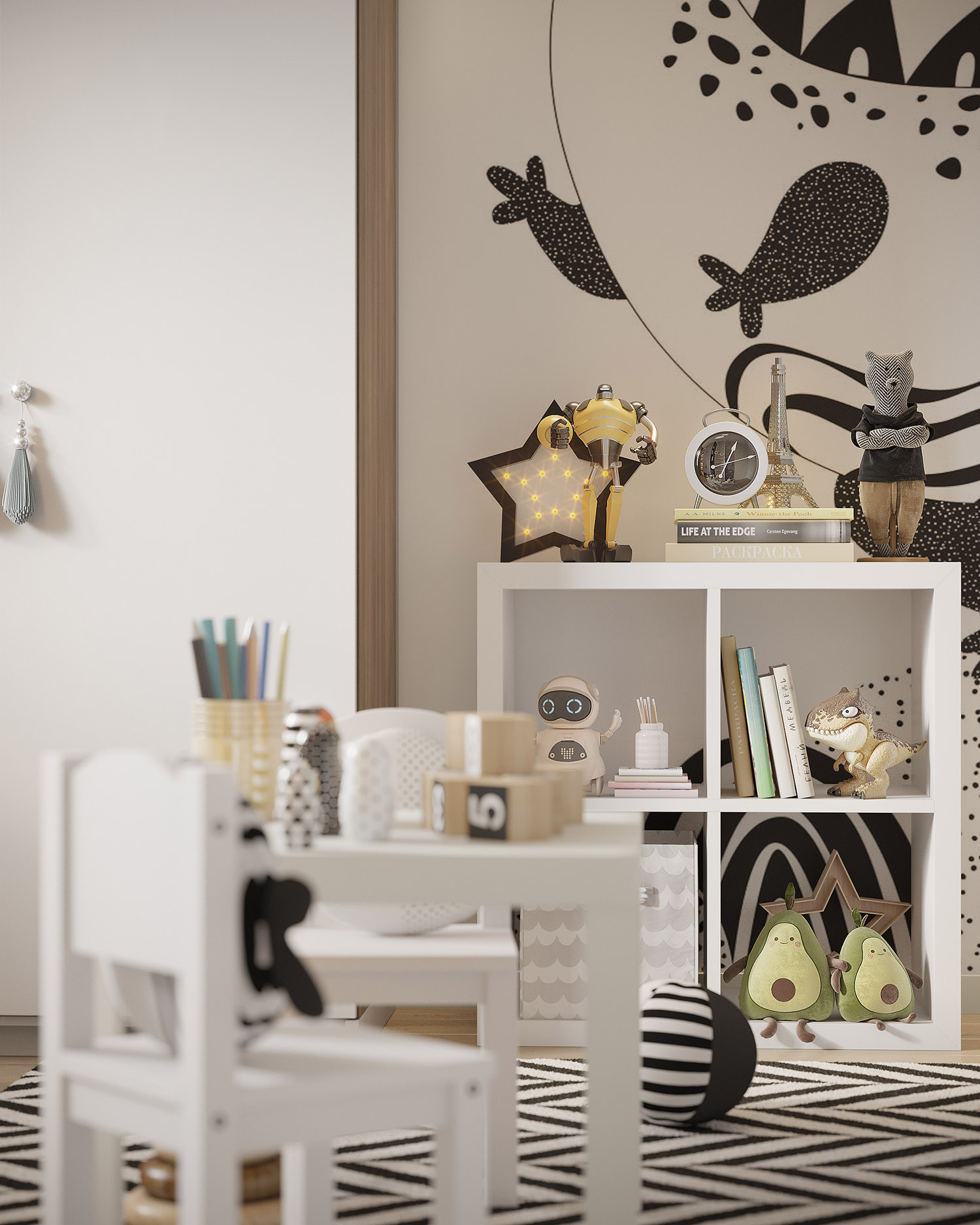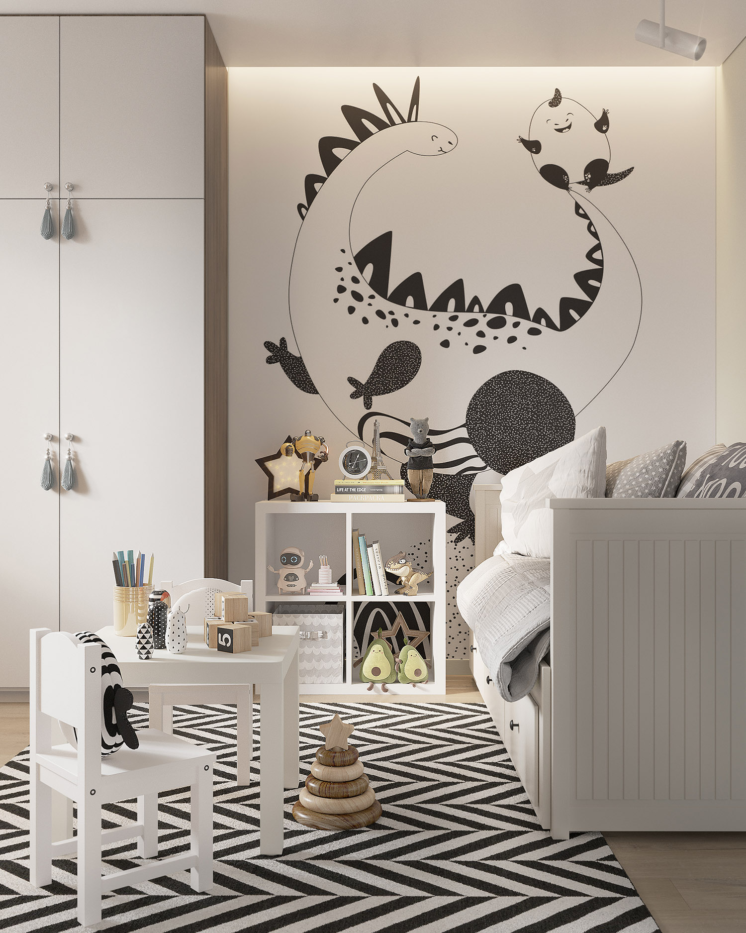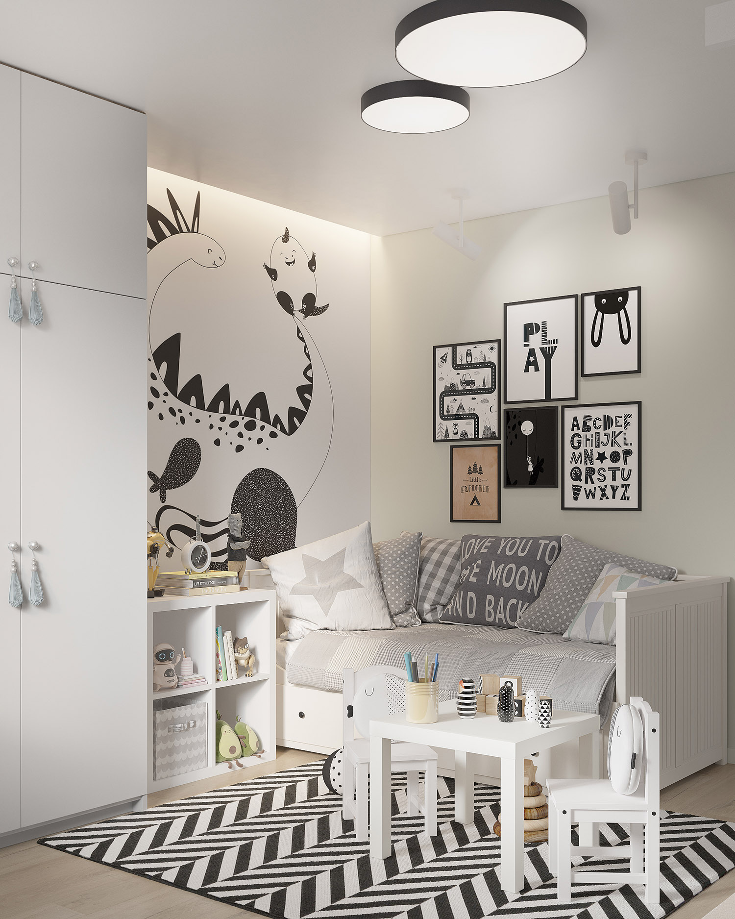 Уютная детская с яркими чёрно-белыми деталями