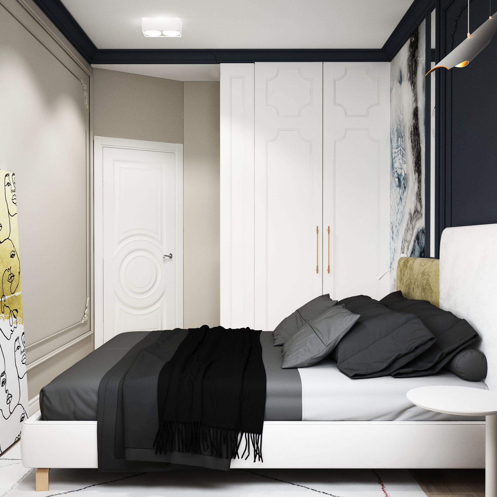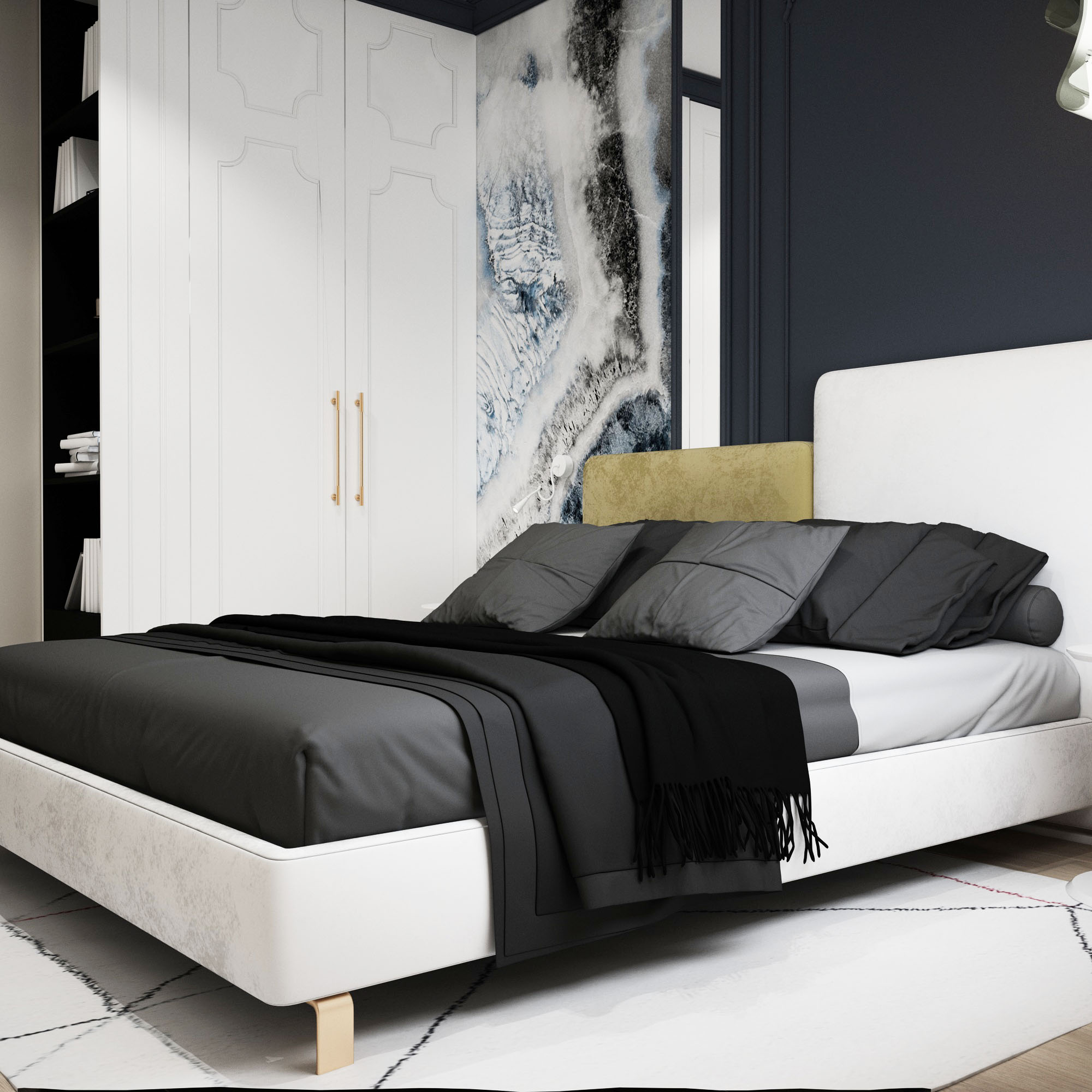 Эту спальню украсили сразу два продукта студии интерьерных решений Wall Street: обои из коллекции ELEGANT 20 и волборд GOLD SET.