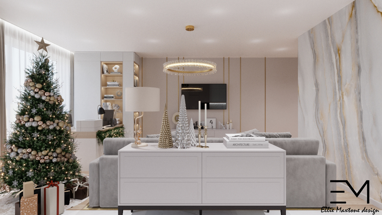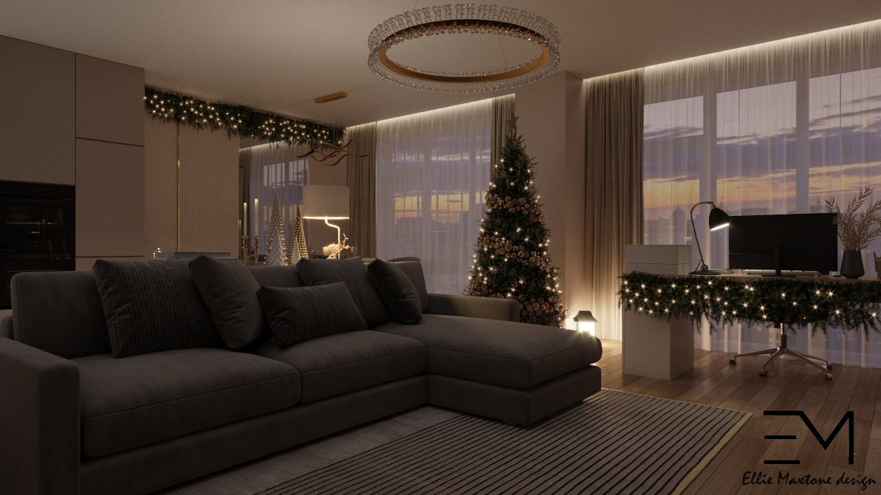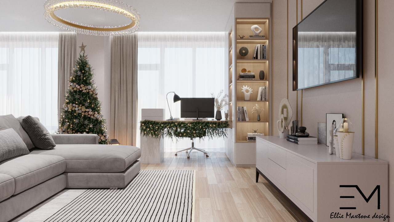 Дизайн кухни-гостиной в городе Екатеринбург. Площадь комнаты — 40 м². Проект создавался для семьи из 5 человек. Заказчик просил создать что-то в светлых, теплых оттенках, обязательно с обеденной зоной, чтобы можно было проводить вечера в кругу семьи и друзей. А также было важно предусмотреть рабочую зону для мужа, который часто работает дома.
