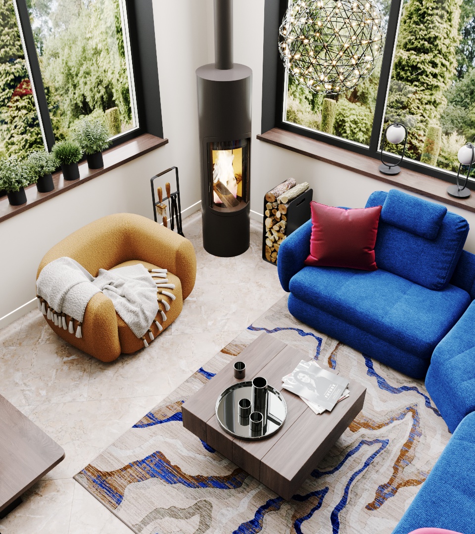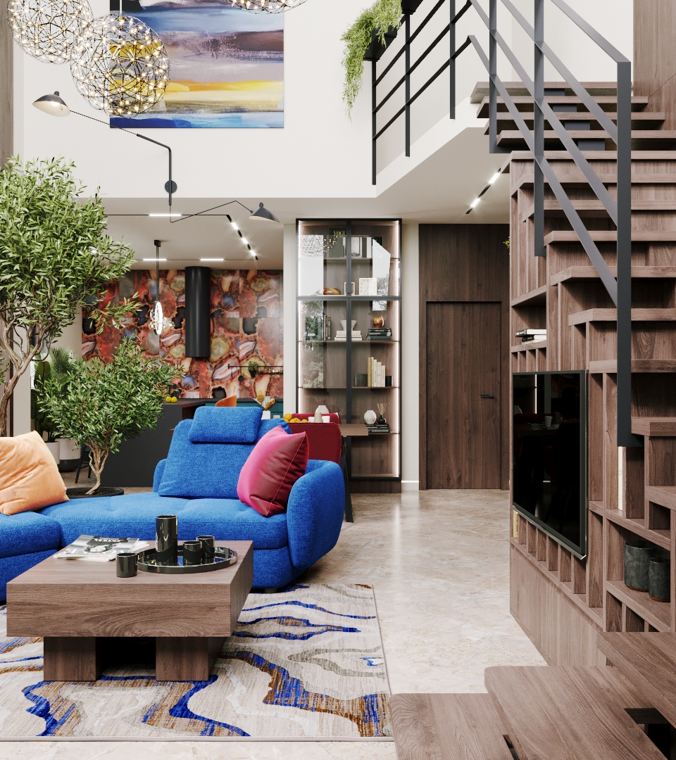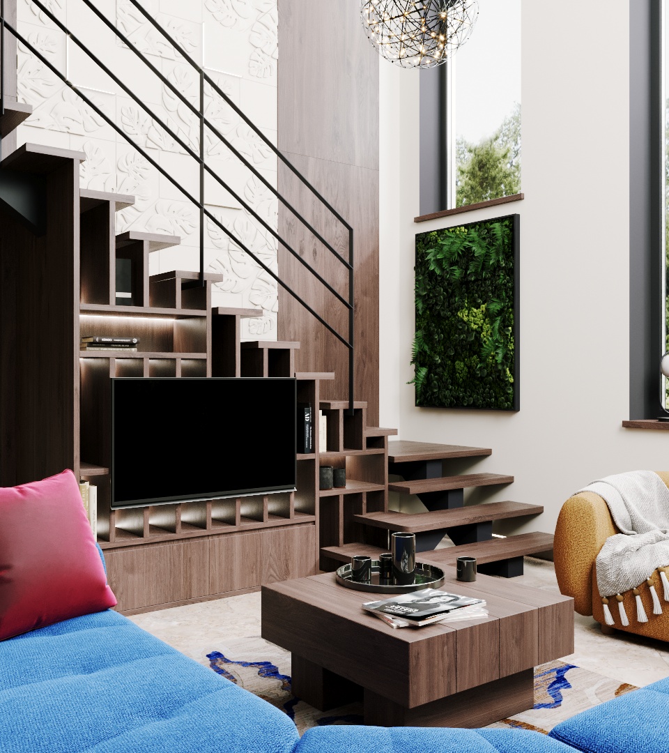 Дом — это всегда небольшая мастерская, где строится счастье. Широкими мазками и яркими красками картина из коллекции Element идеально завершила интерьер этой гостиной.