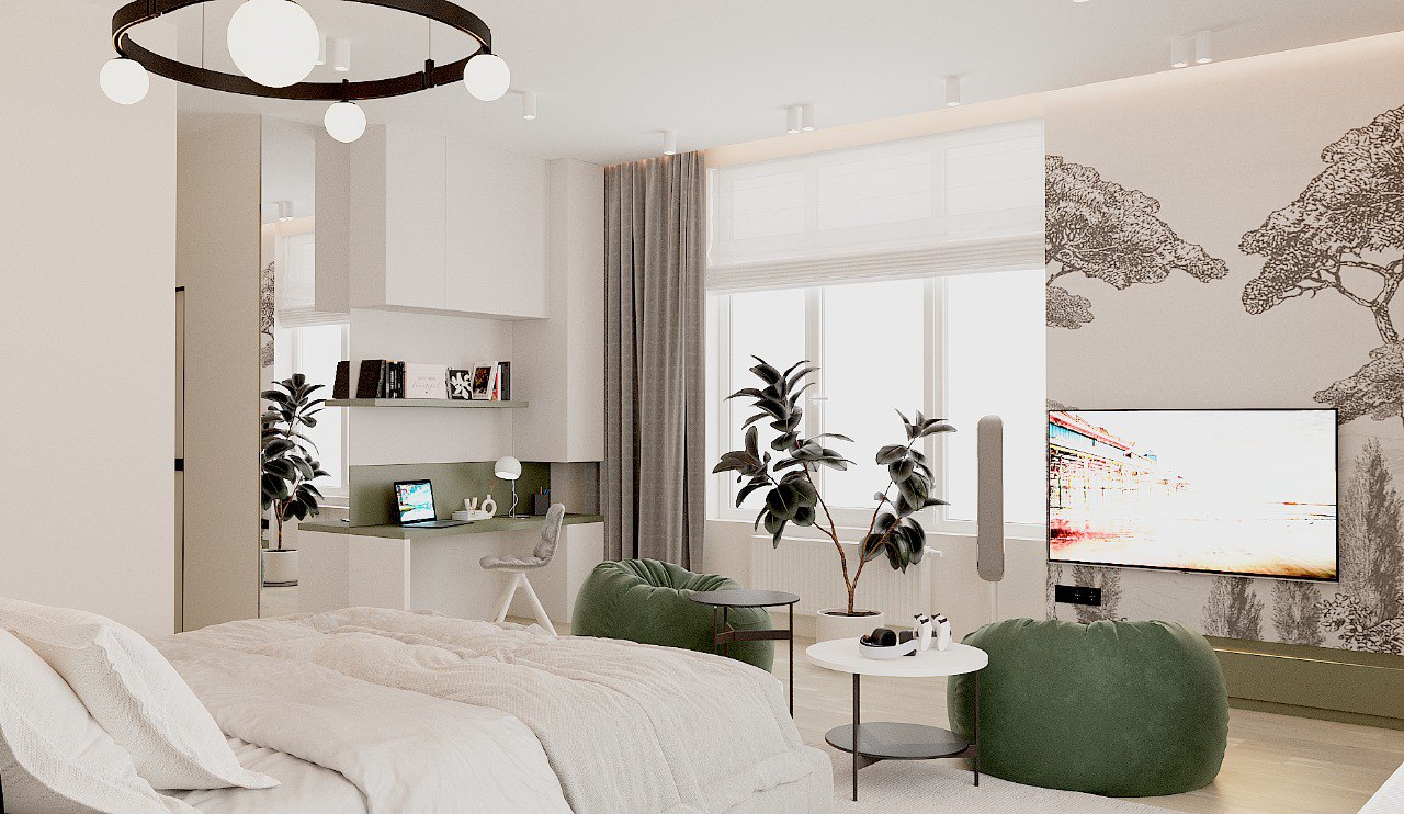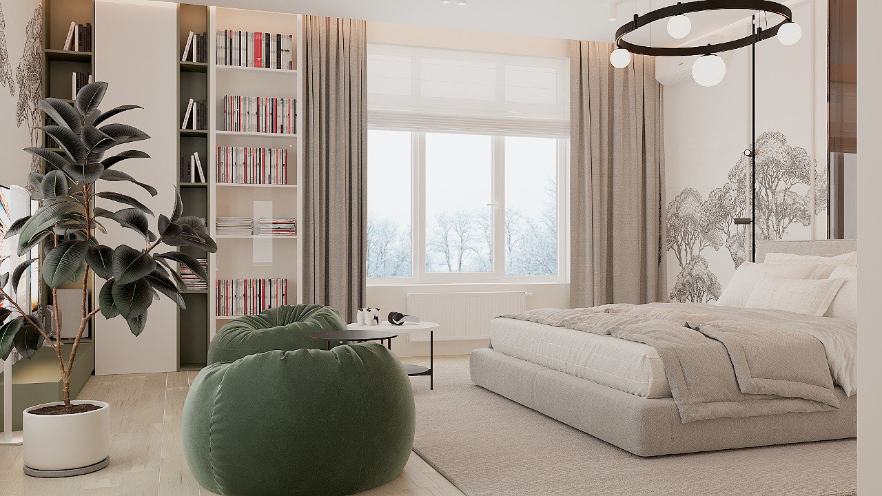 Спальня в спокойных тонах