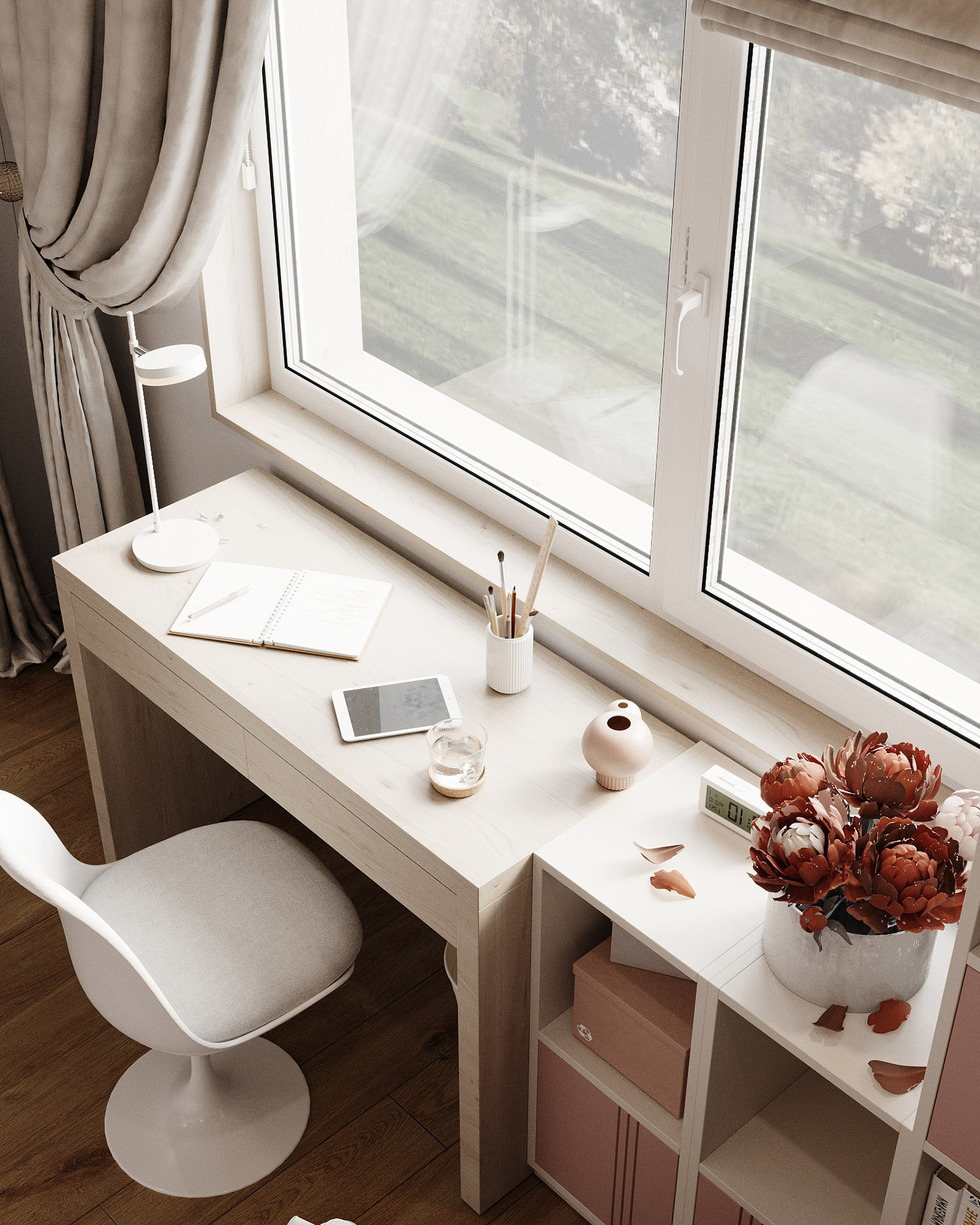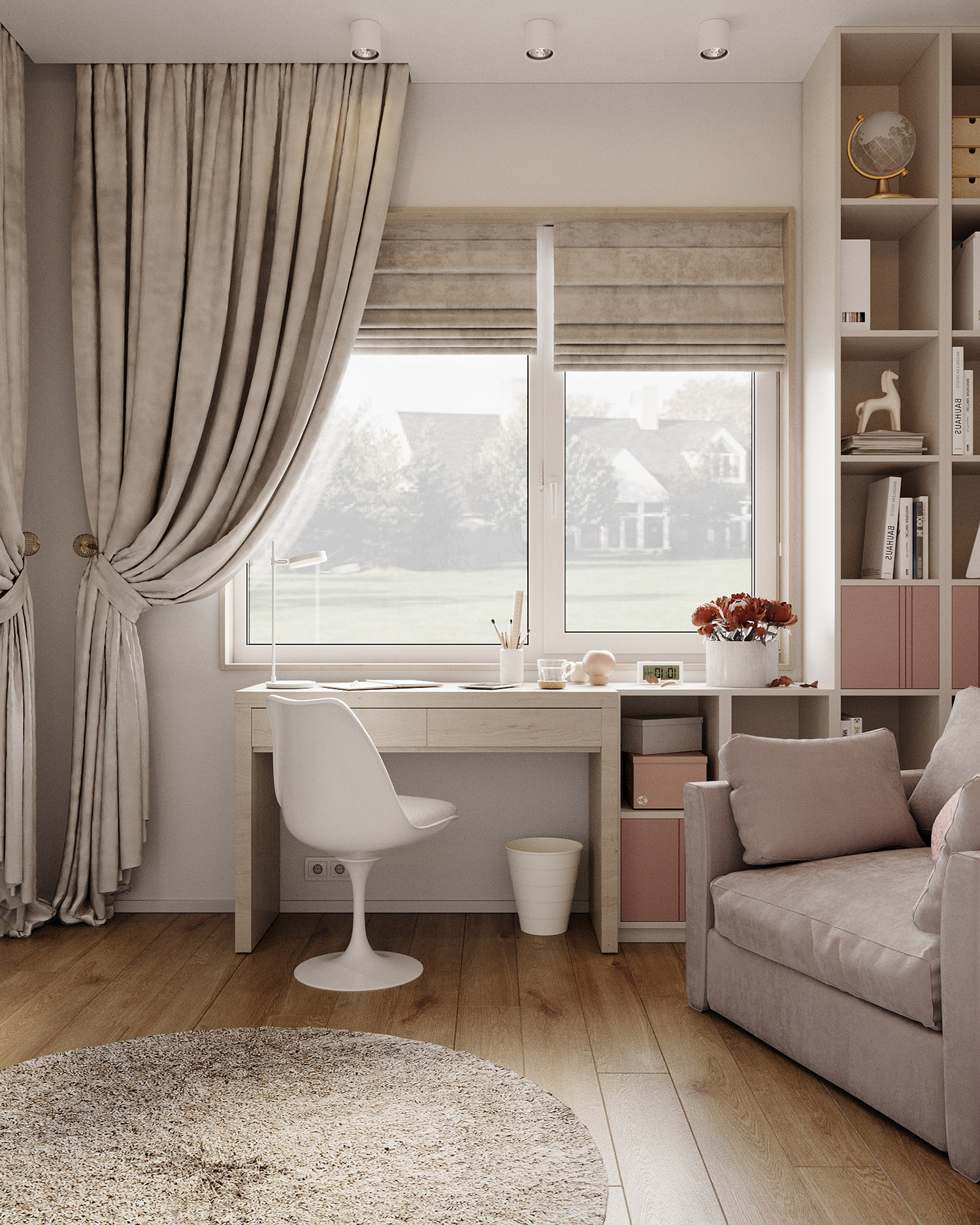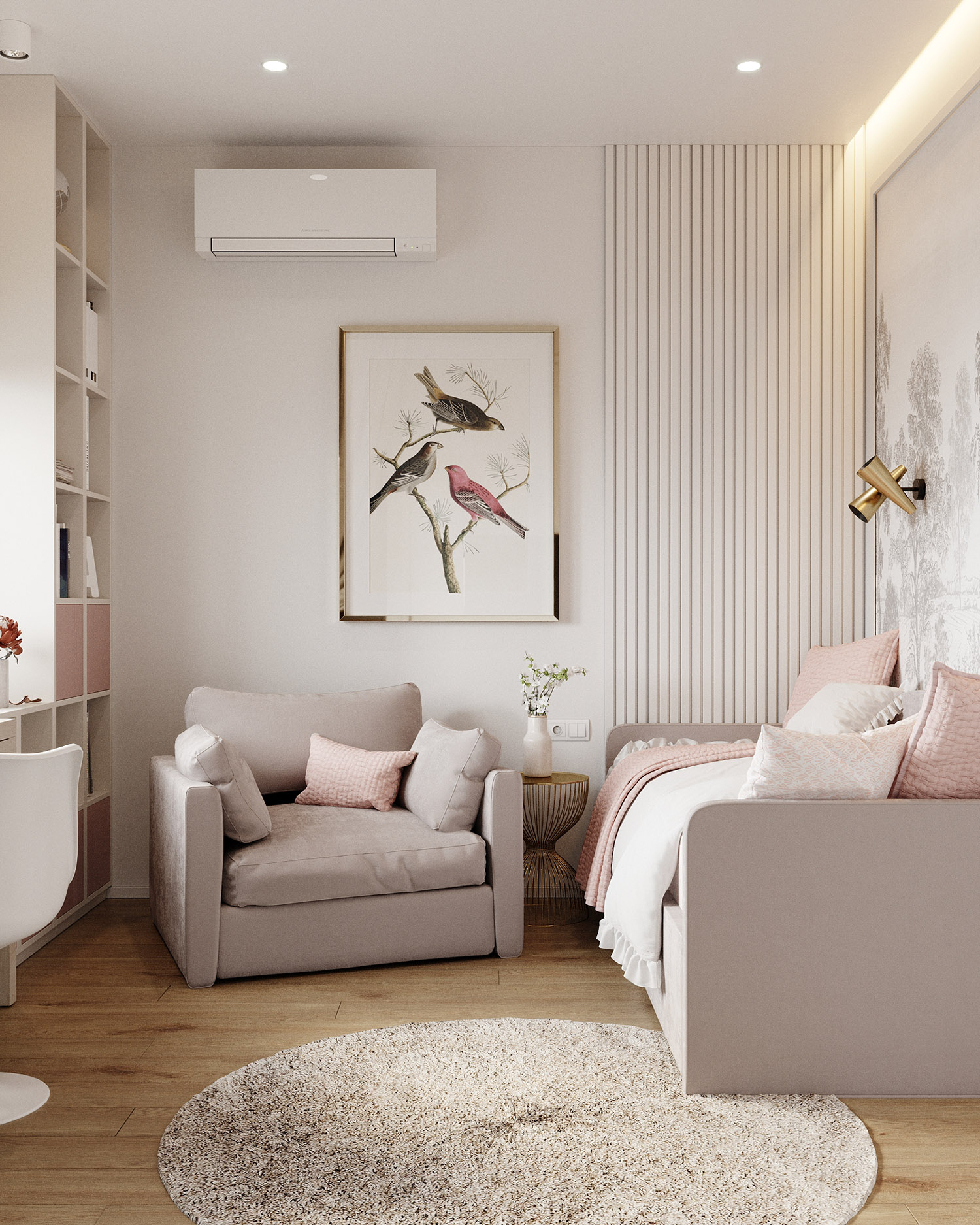 Комната в нейтральных оттенках для девочки-подростка
