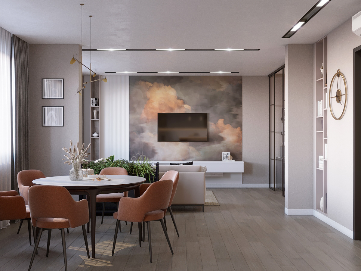 Ну, и конечно же, оригинальные обои из коллекции «Euphoria-2019» в зоне ТВ точно отражают настроение этого интерьера: легко, воздушно, нежно, КРАСИВО!
