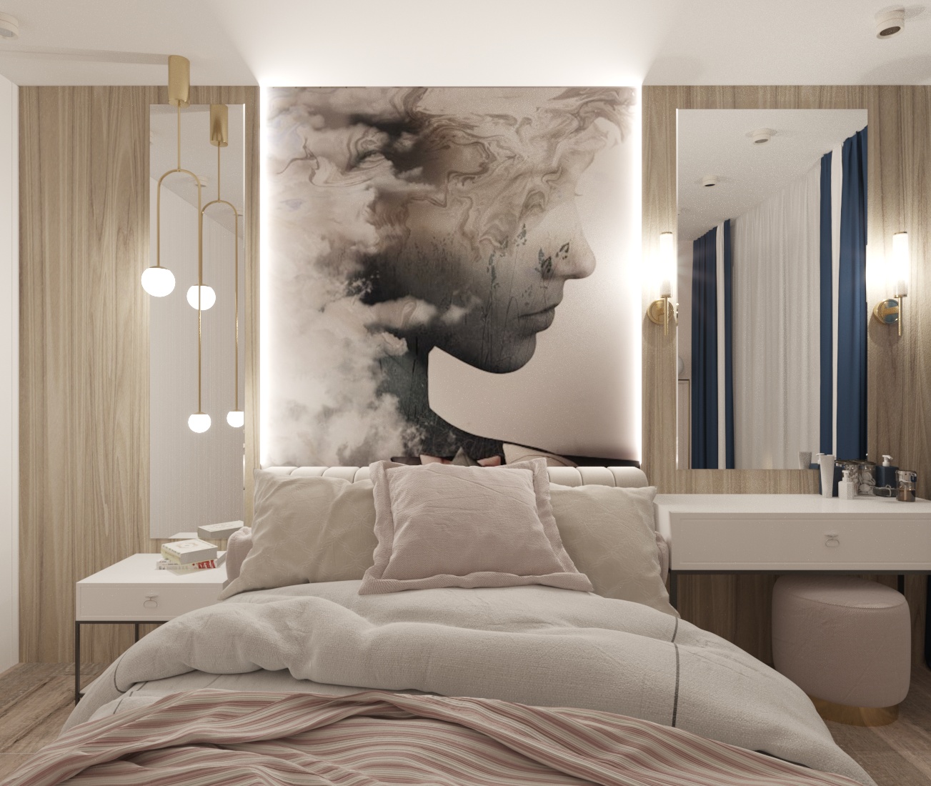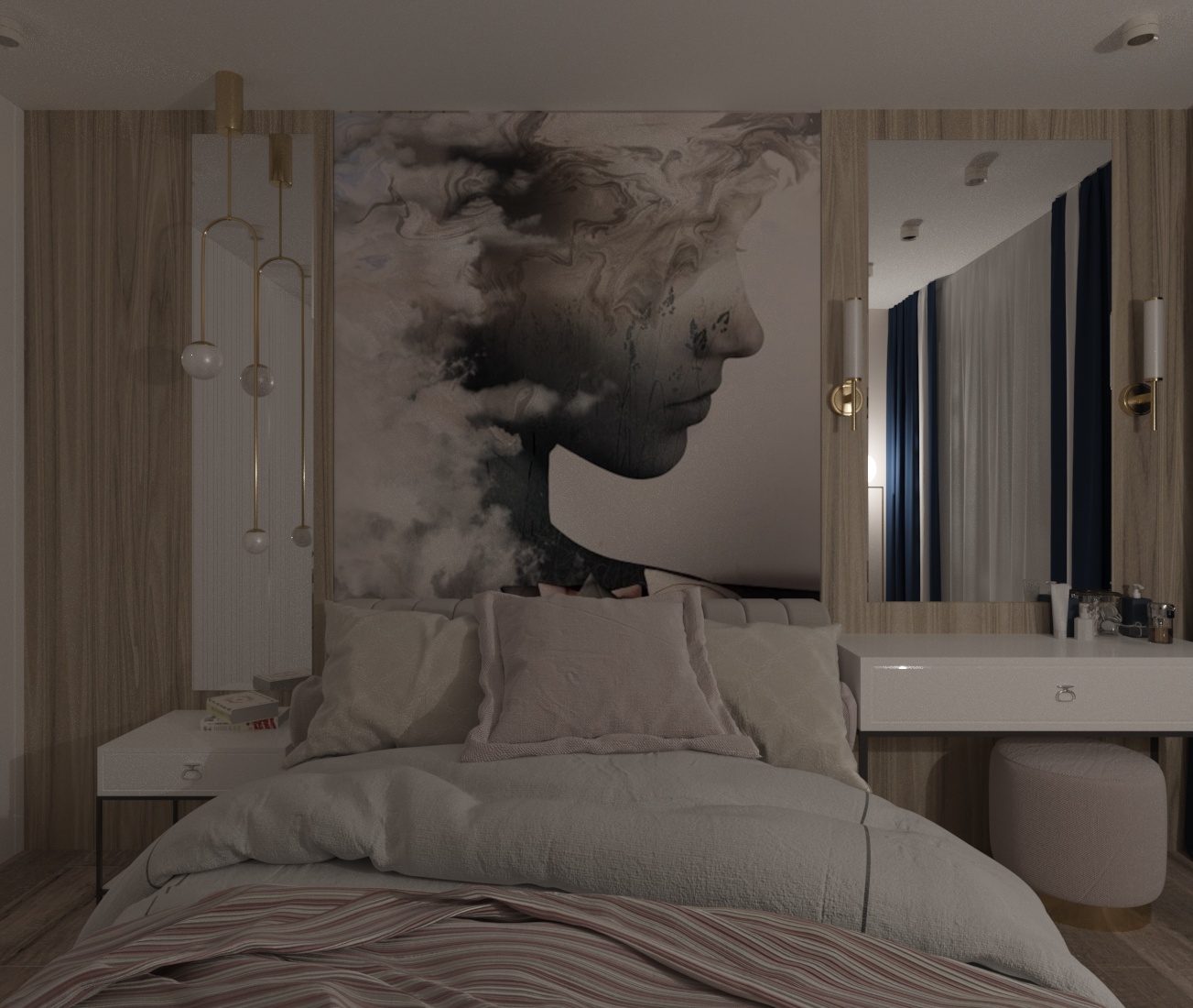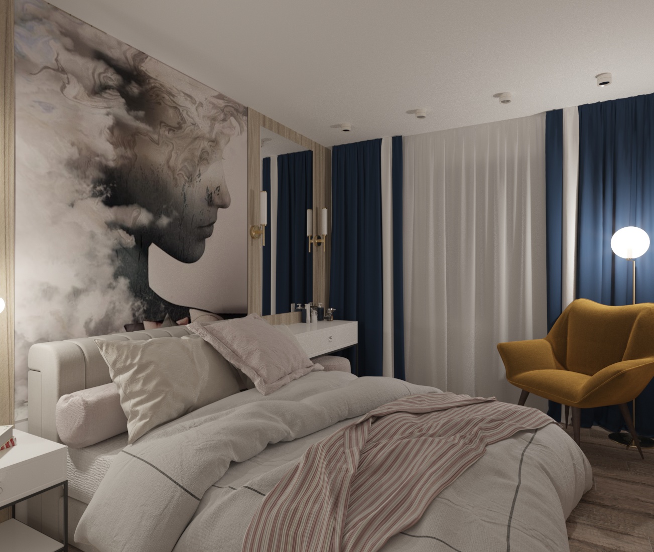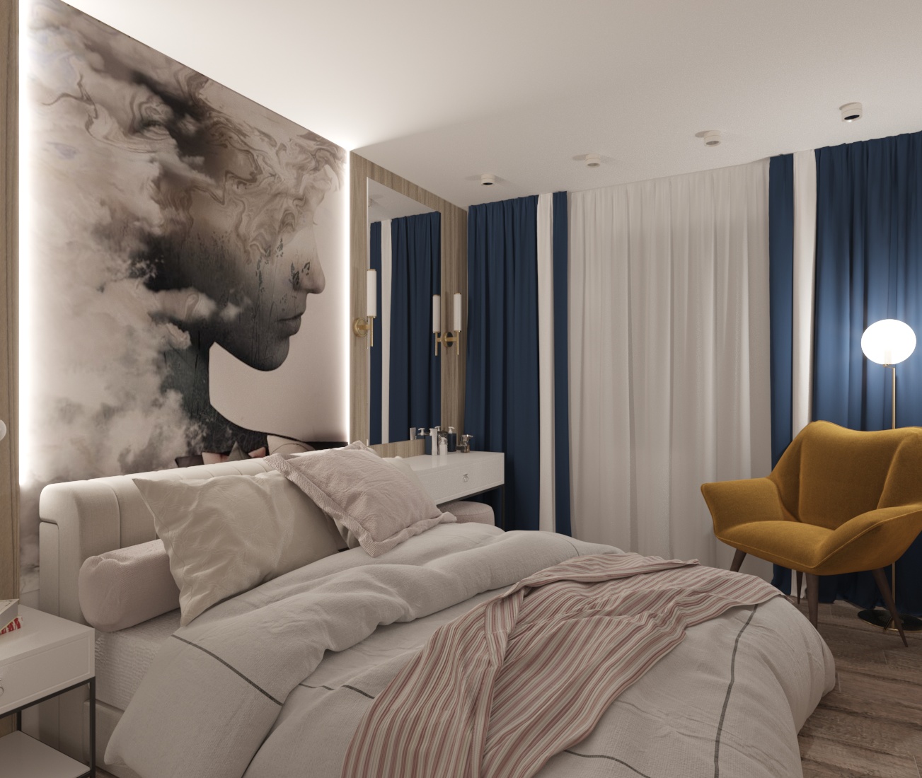 Спальня в ЖК Династия, г. Ярославль. Площадь комнаты — 10 м². Пожеланием заказчицы было — добиться полного уюта, комфорта и функциональности.