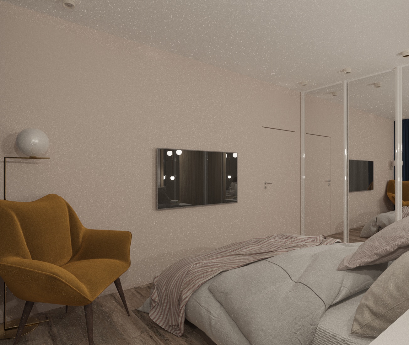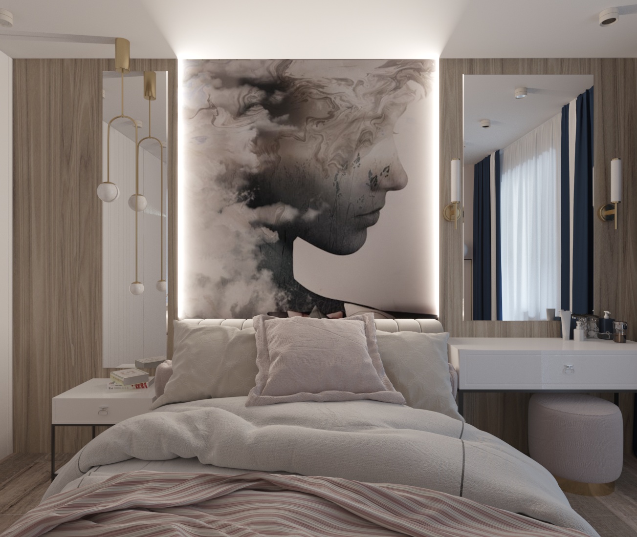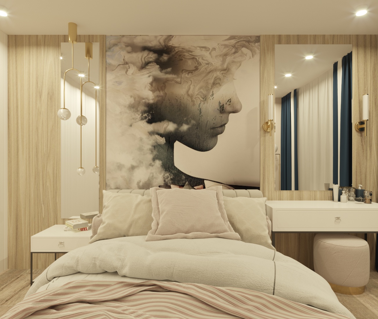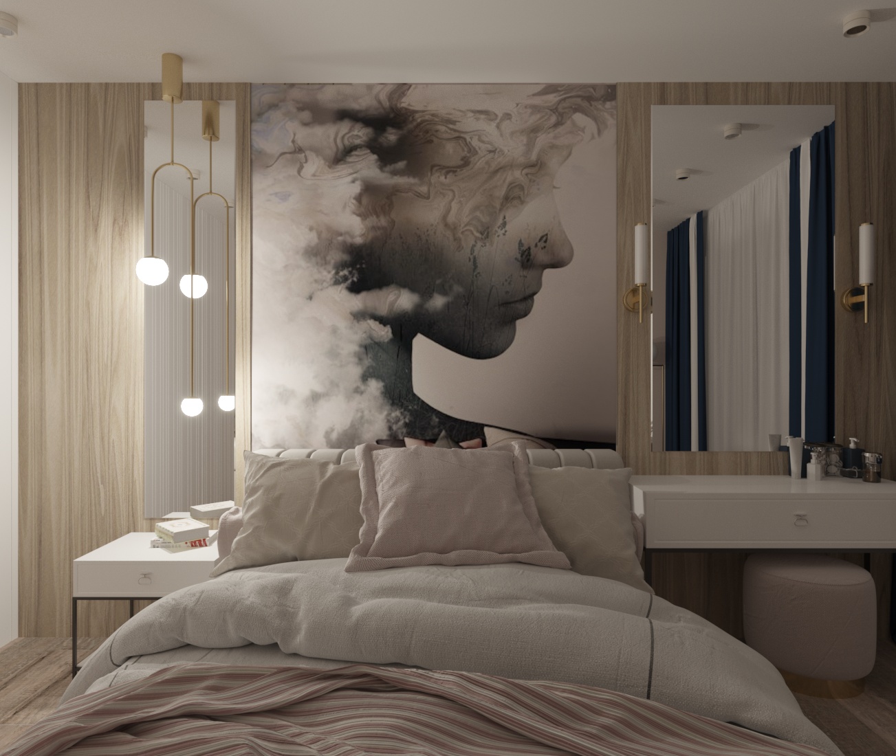 Спальня в ЖК Династия, г. Ярославль. Площадь комнаты — 10 м². Пожеланием заказчицы было — добиться полного уюта, комфорта и функциональности.