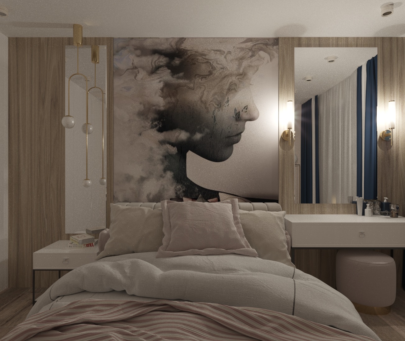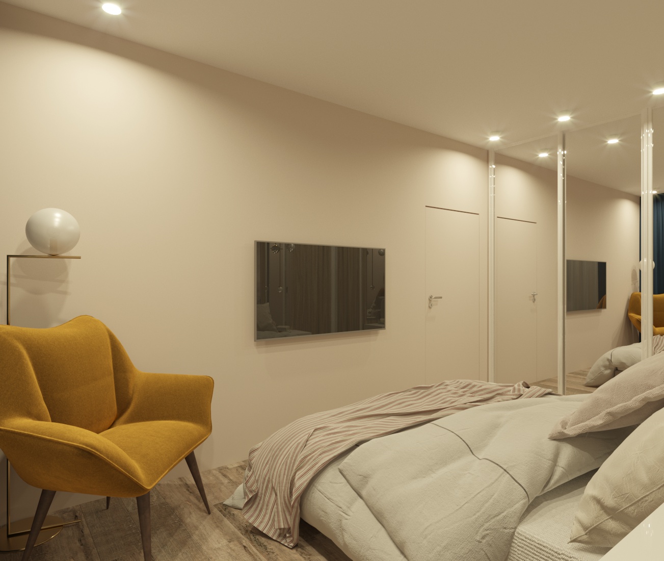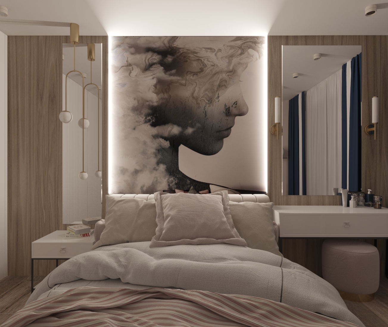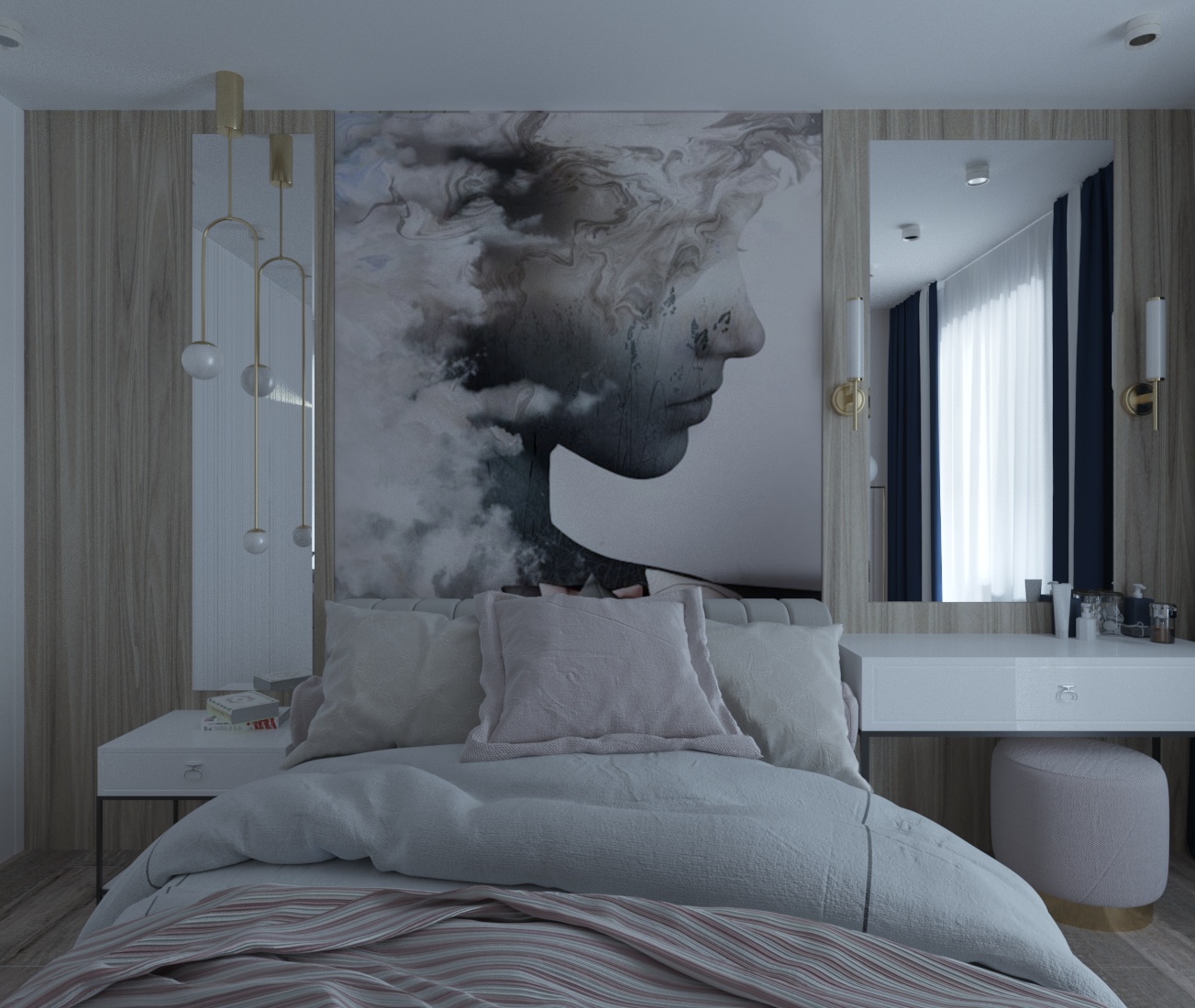Спальня в ЖК Династия, г. Ярославль. Площадь комнаты — 10 м². Пожеланием заказчицы было — добиться полного уюта, комфорта и функциональности.