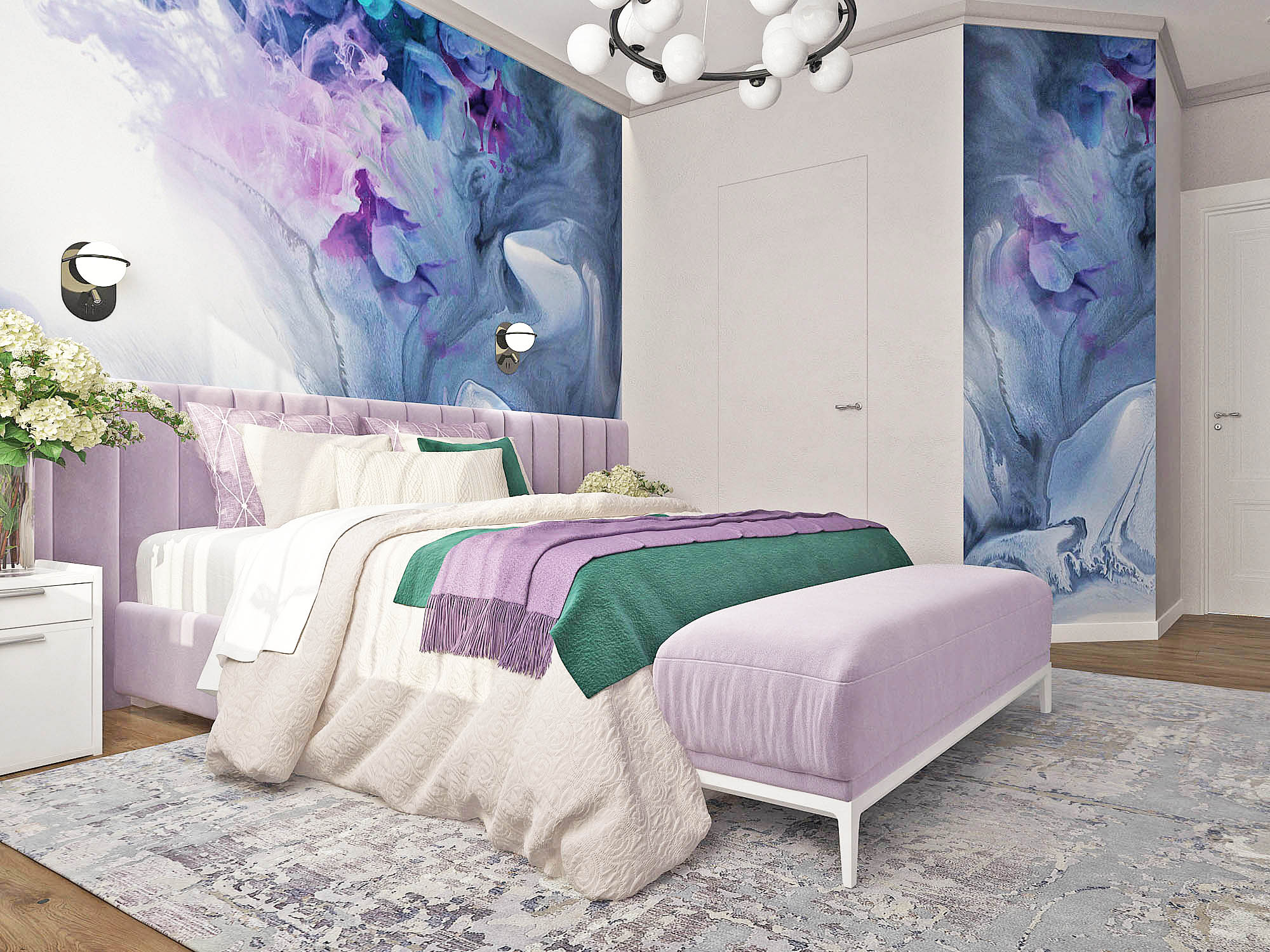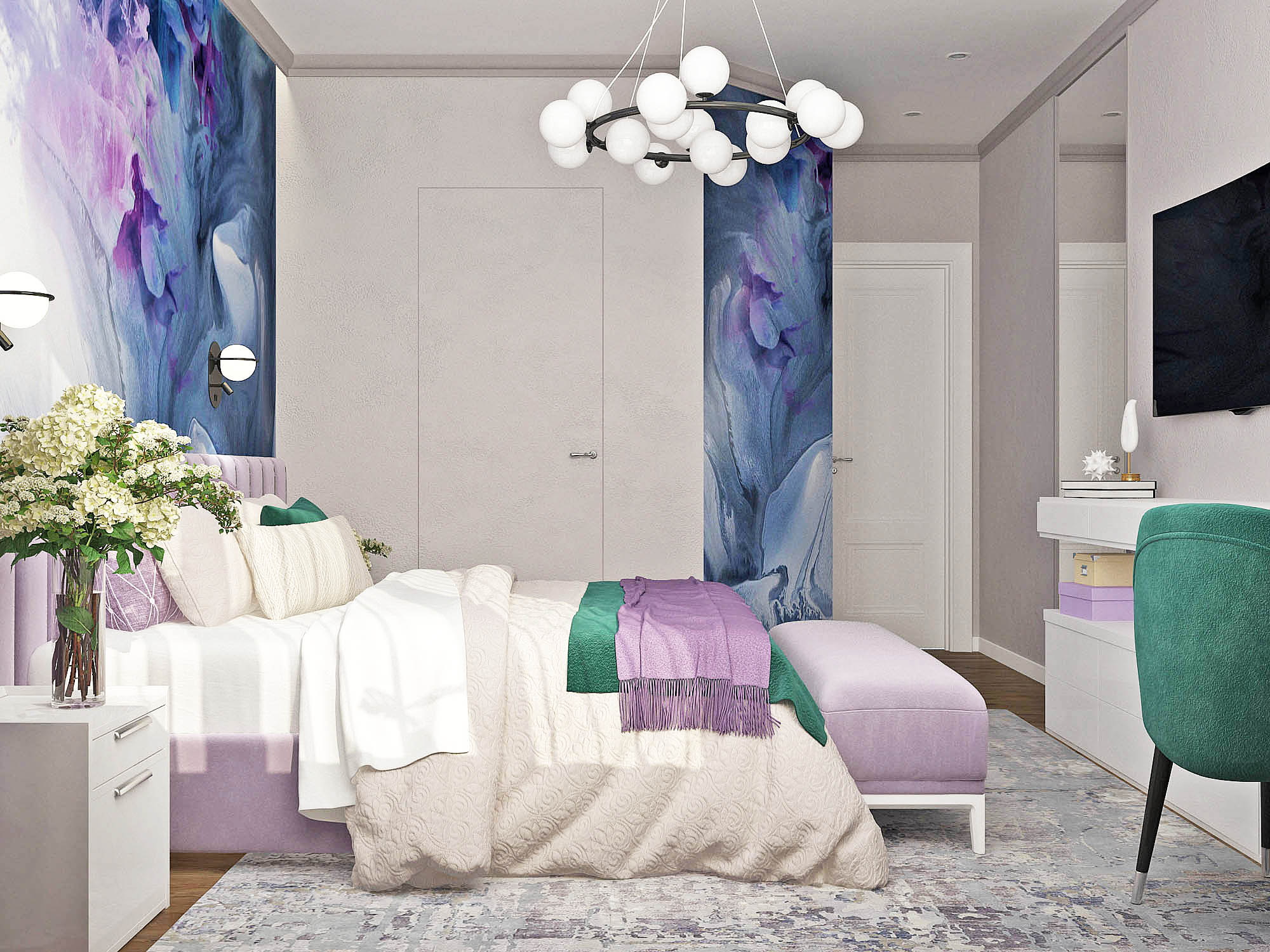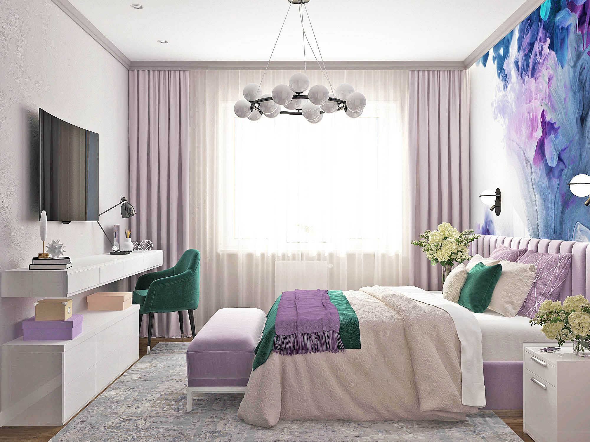 Нежная спальня с ярким акцентом