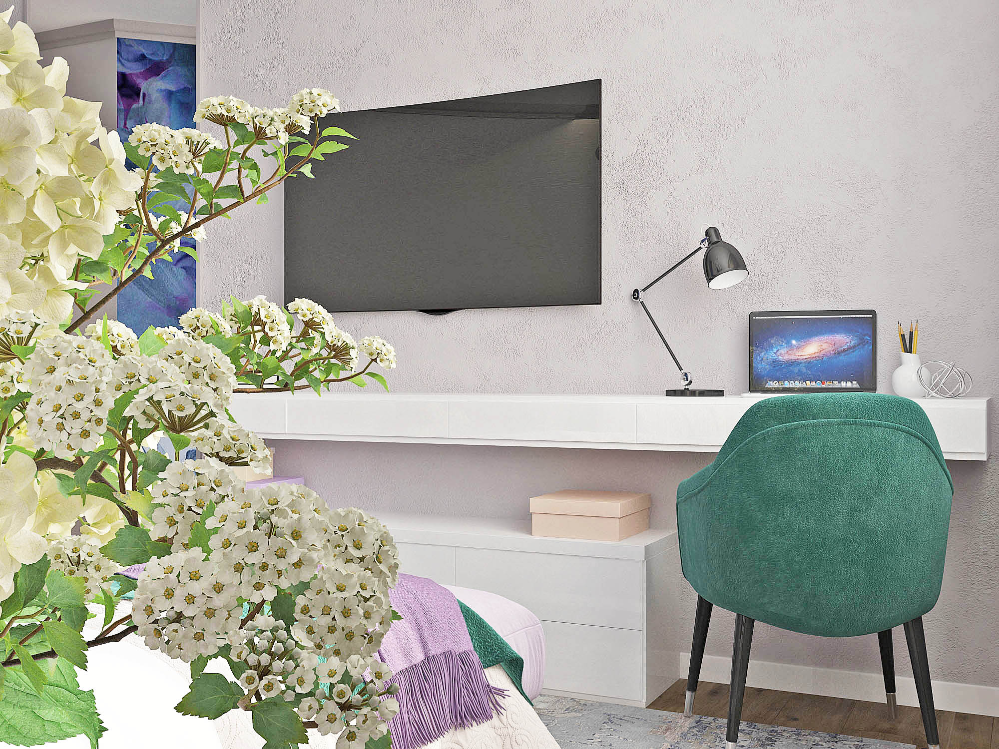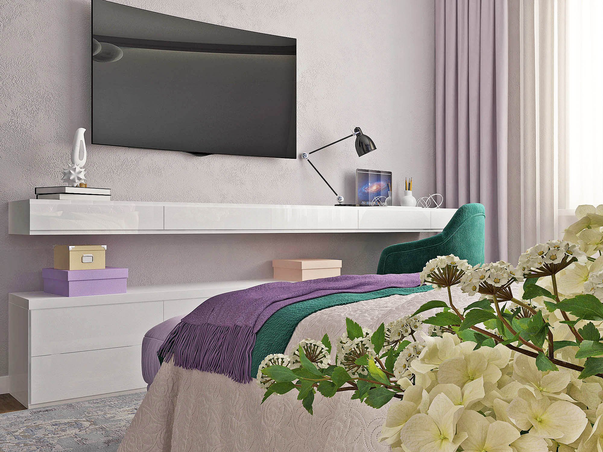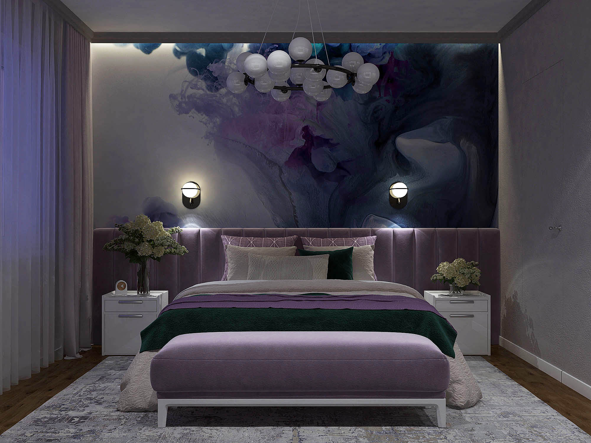 Нежная спальня с ярким акцентом