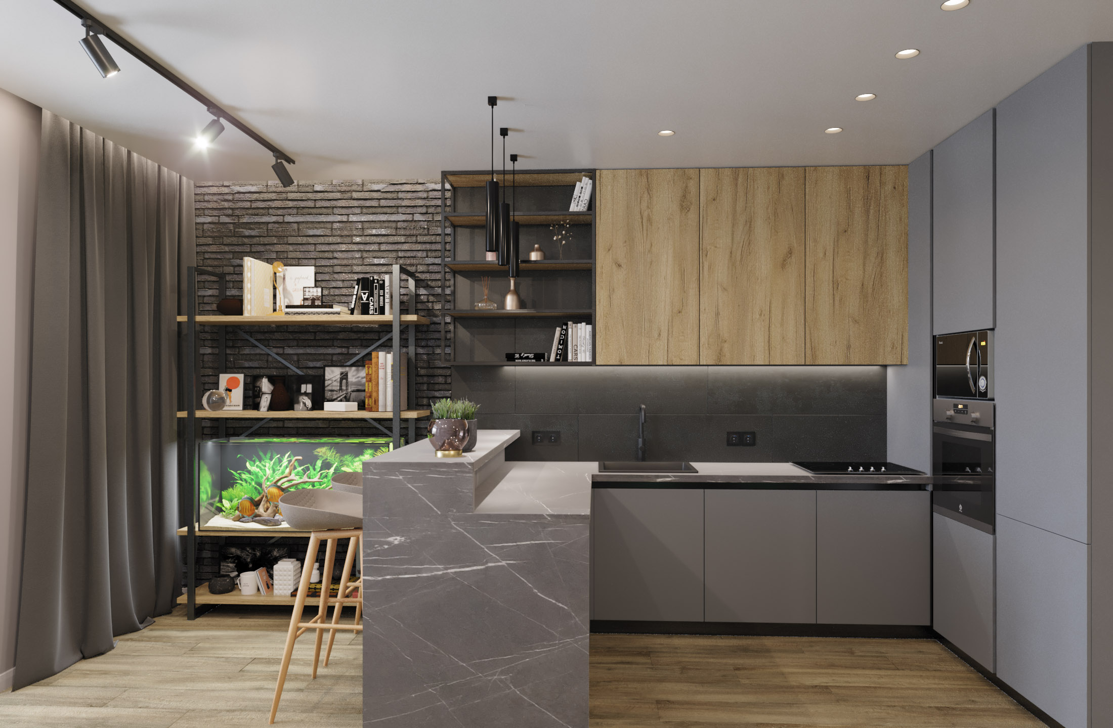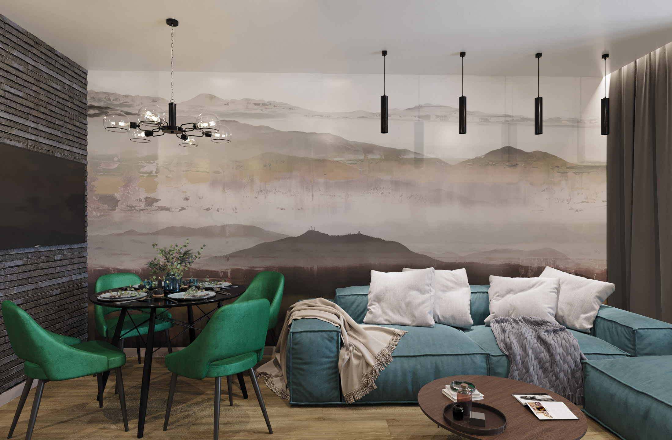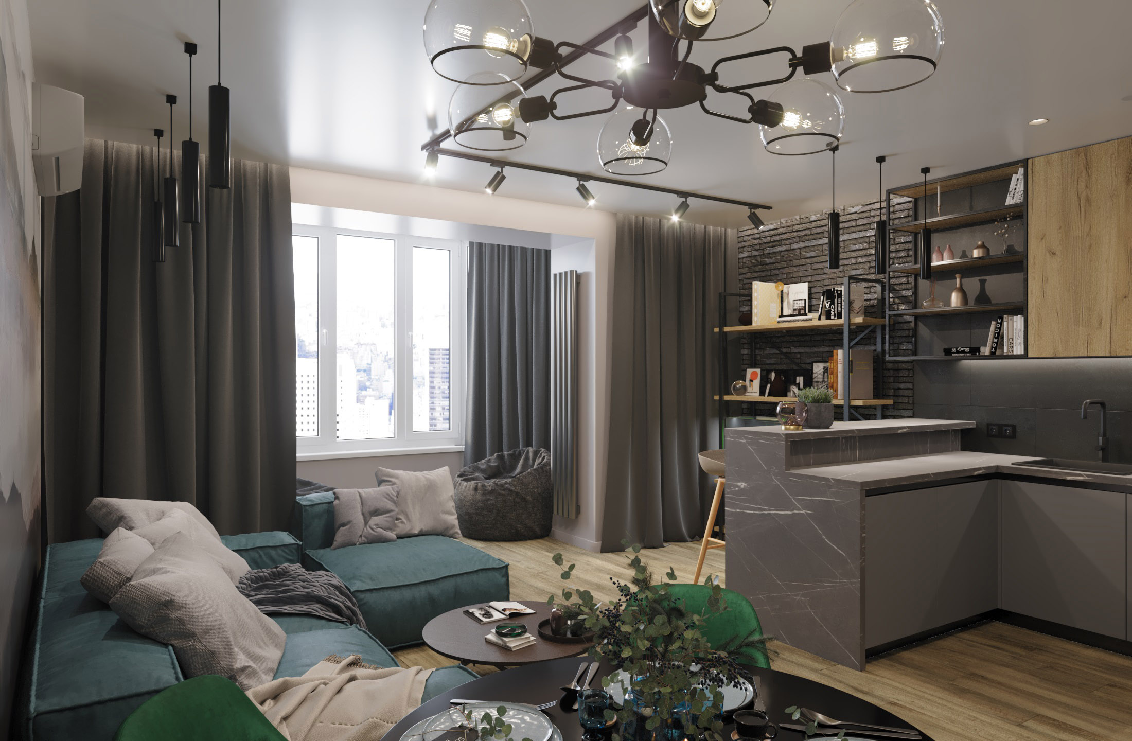 Кухня-гостиная для семьи из трех человек