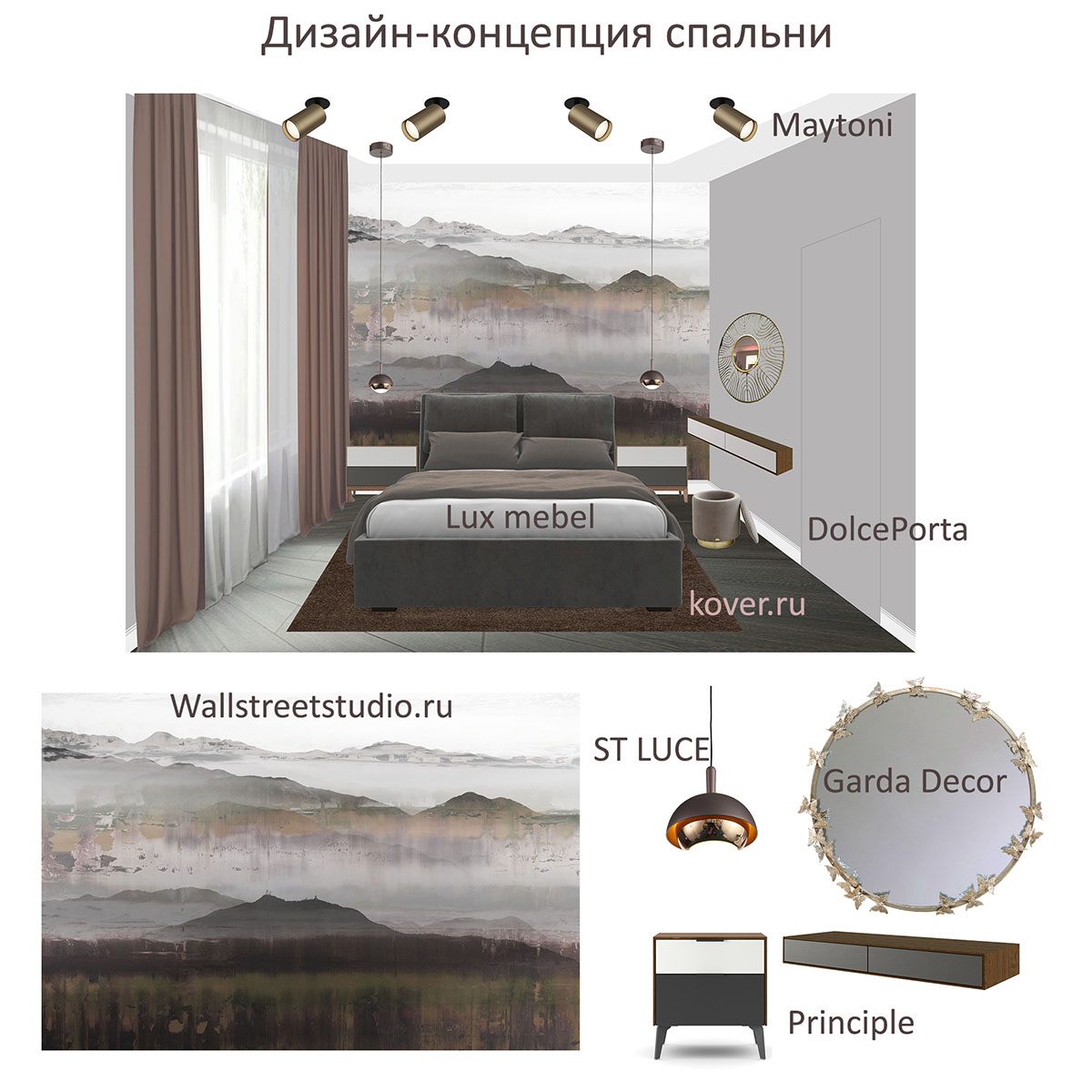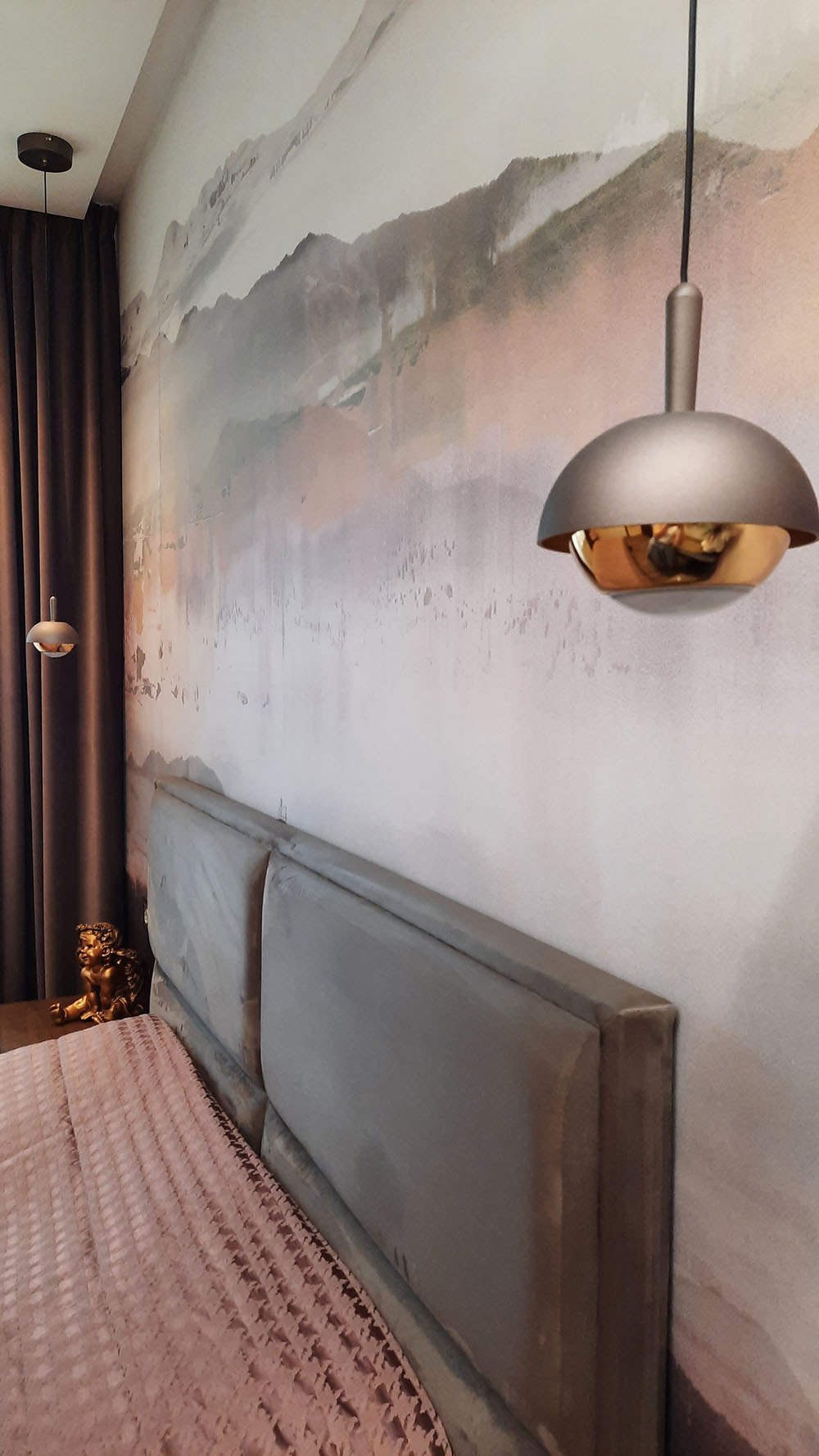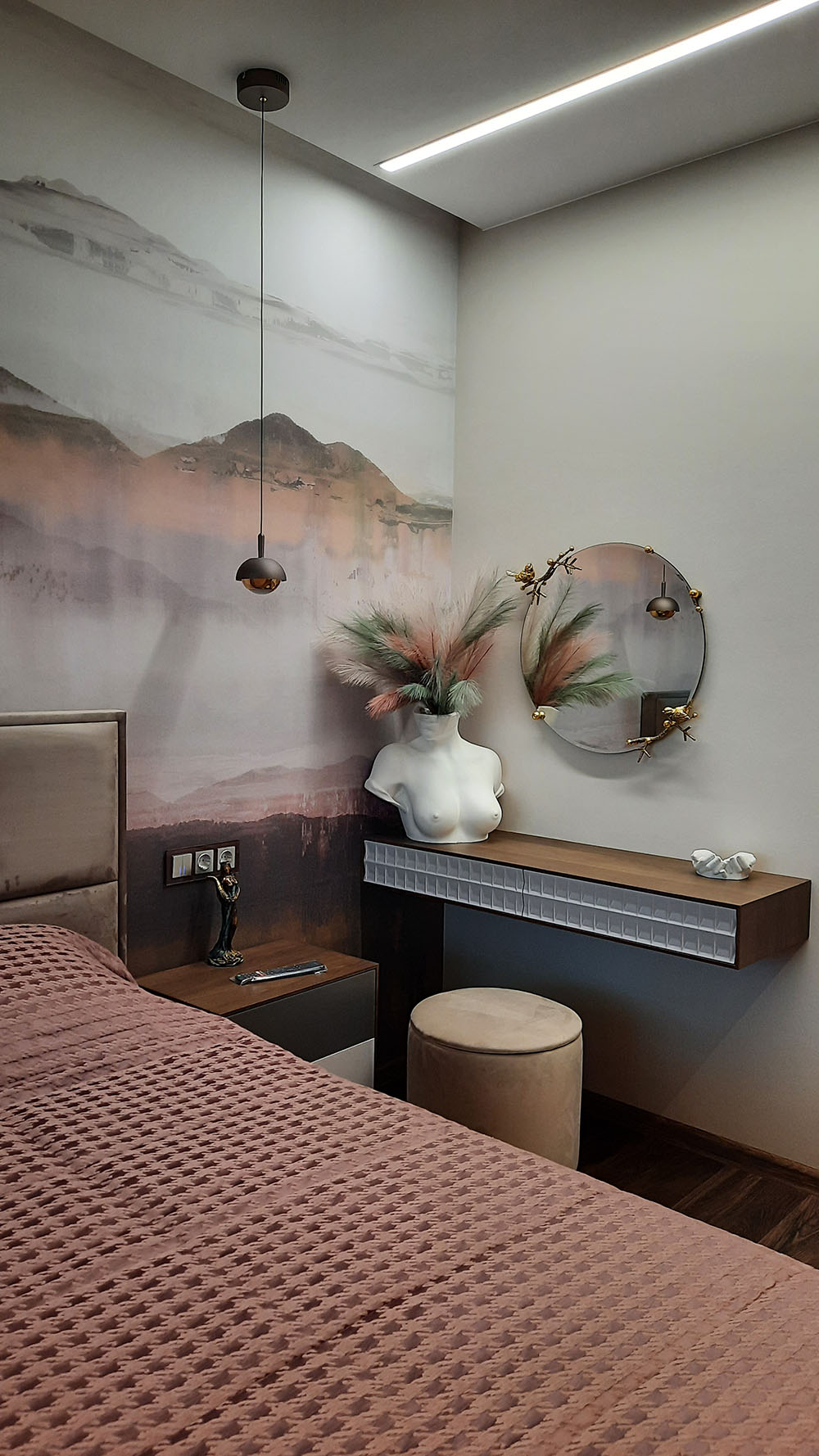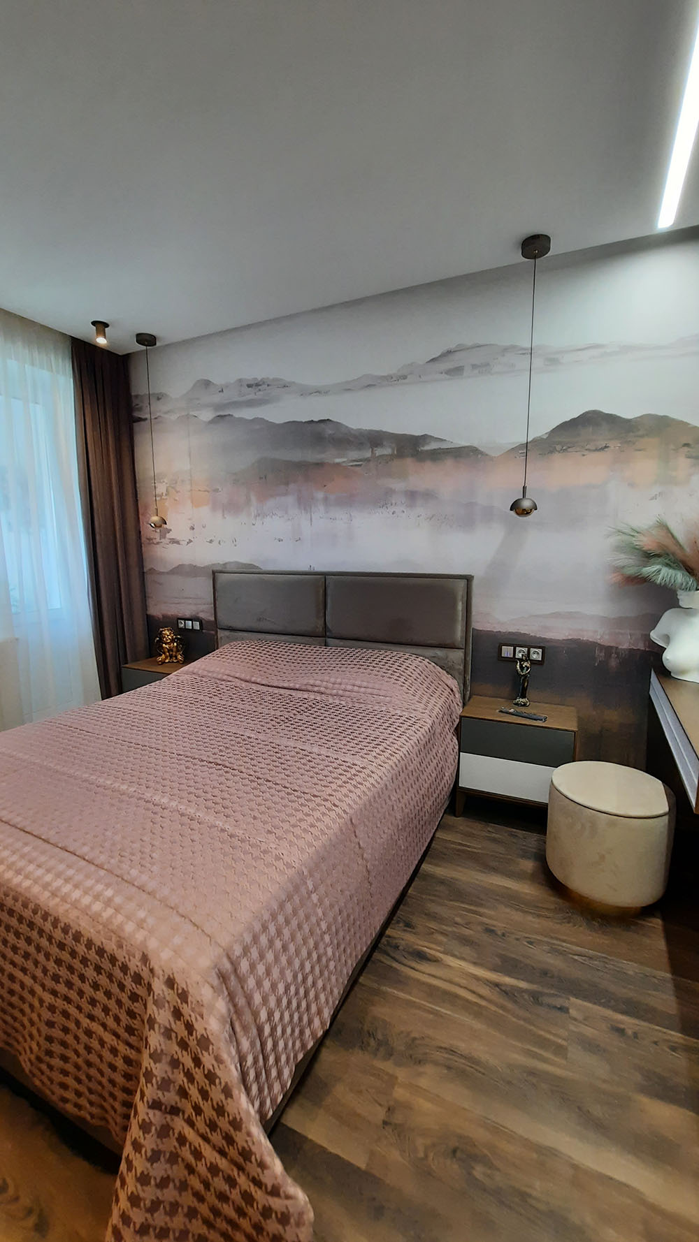 Дизайн спальни, город Санкт-Петербург, Приморский район. Площадь комнаты — 15,5 м². Заказчики — семейная пара средних лет. Предпочтениями были модный актуальный дизайн, современные технологии, уютная цветовая гамма, спокойные тона, комфортное ощущение от пребывания. Обои из коллекции EUPHORIA помогли создать нужную атмосферу.