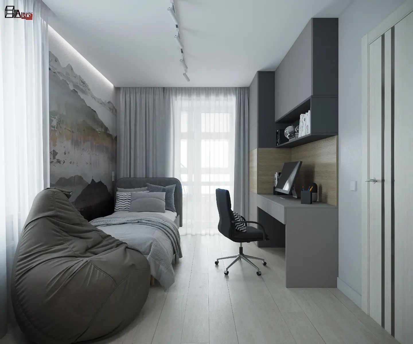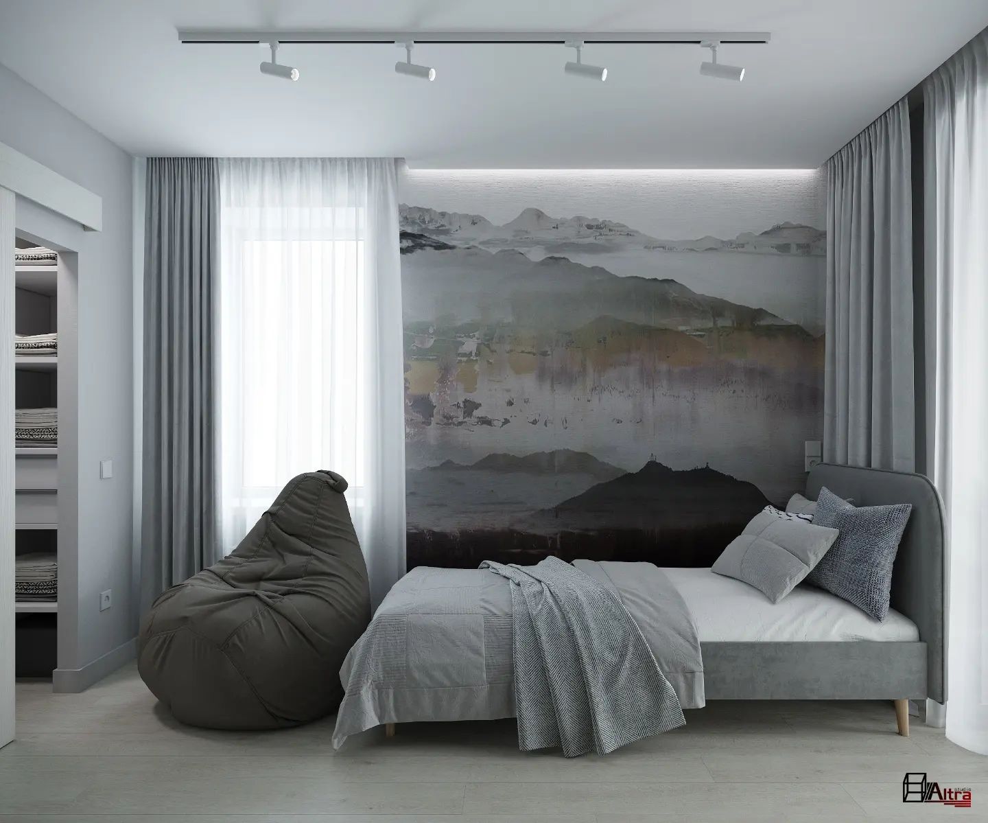 Комната для мальчика-подростка площадью 11,6 м² в ЖК Андерсен Парк. Обои из коллекции EUPHORIA. В ней всё наполнено акварельной лёгкостью, и изображения расплываются, словно облака, рождающие свои личные образы. Игра воображения каждый раз восхищает, новый взгляд всегда рождает новые ассоциации: что же там вдали? Горы? Города? Другая планета? Пусть ясность и конкретность подождёт. Насладитесь абстрактной неопределенностью образов этой удивительной коллекции.