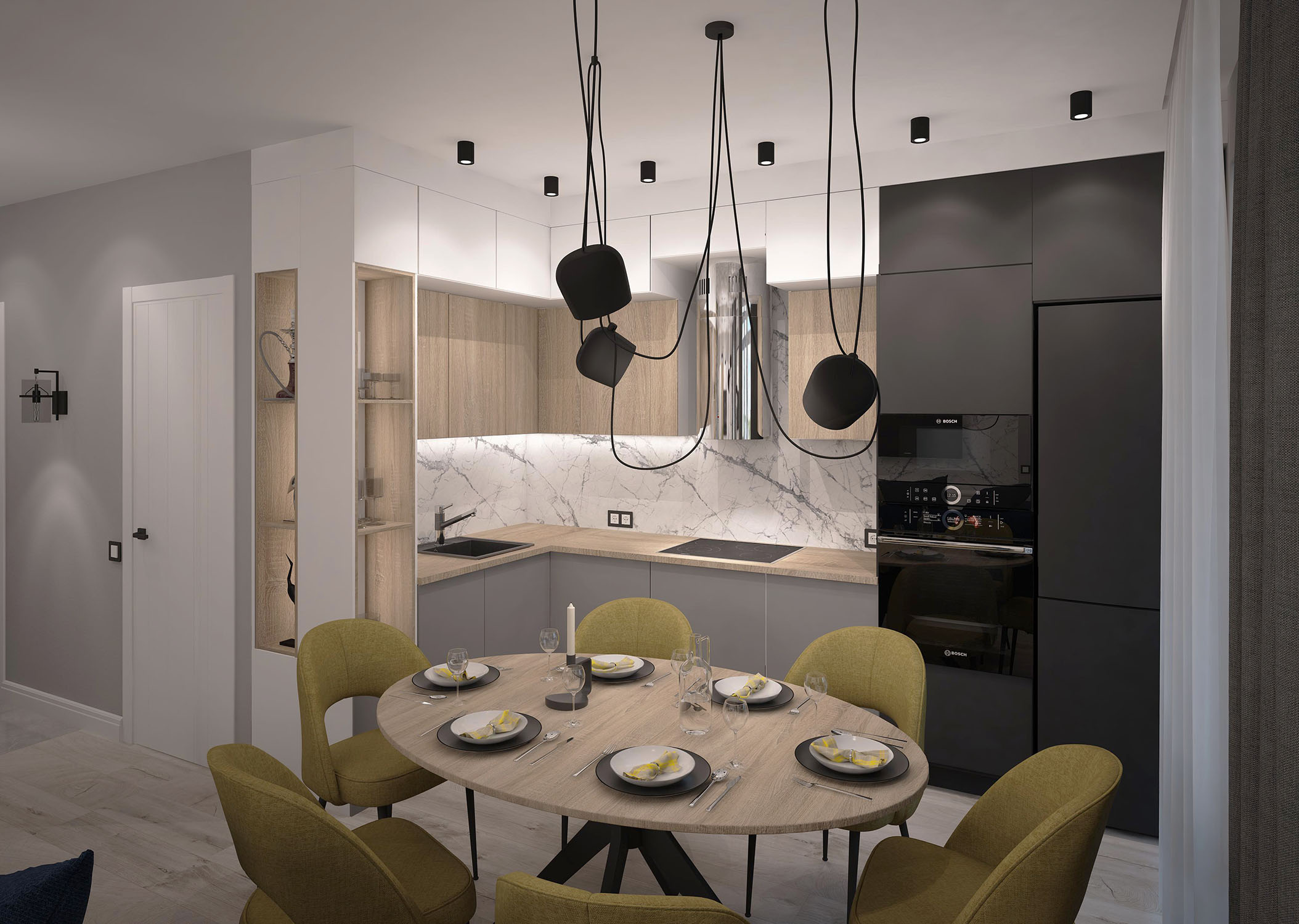 Кухня-гостиная из проекта трехкомнатной квартиры в Пензе