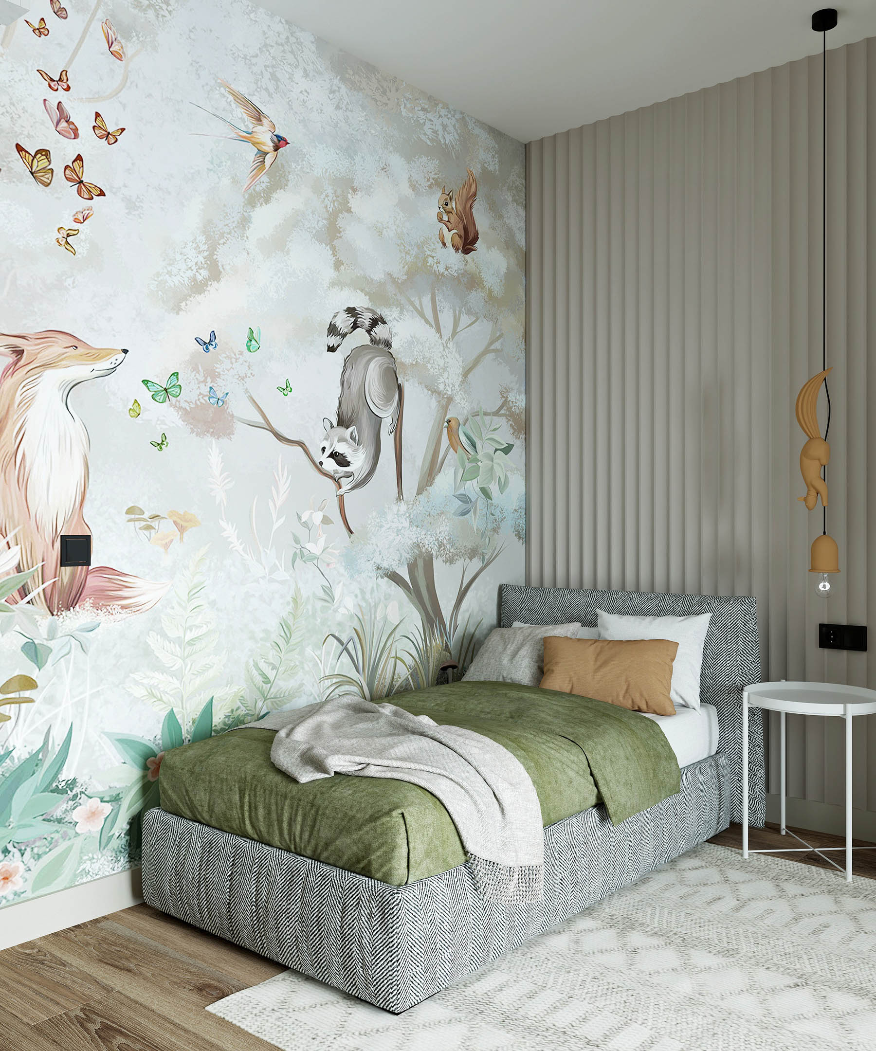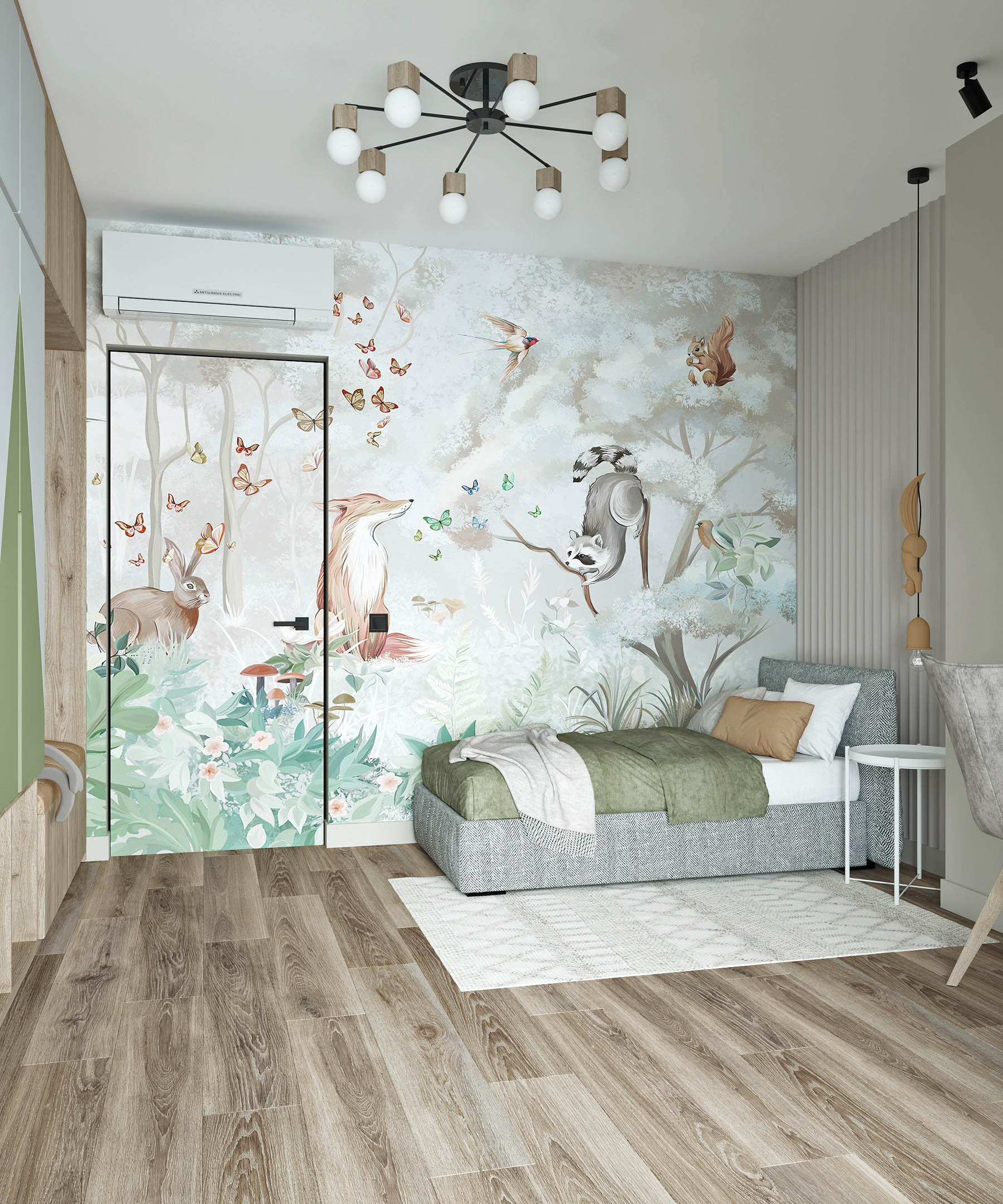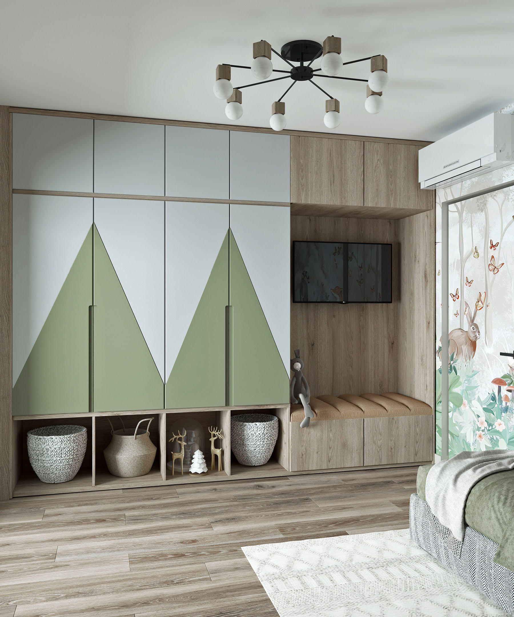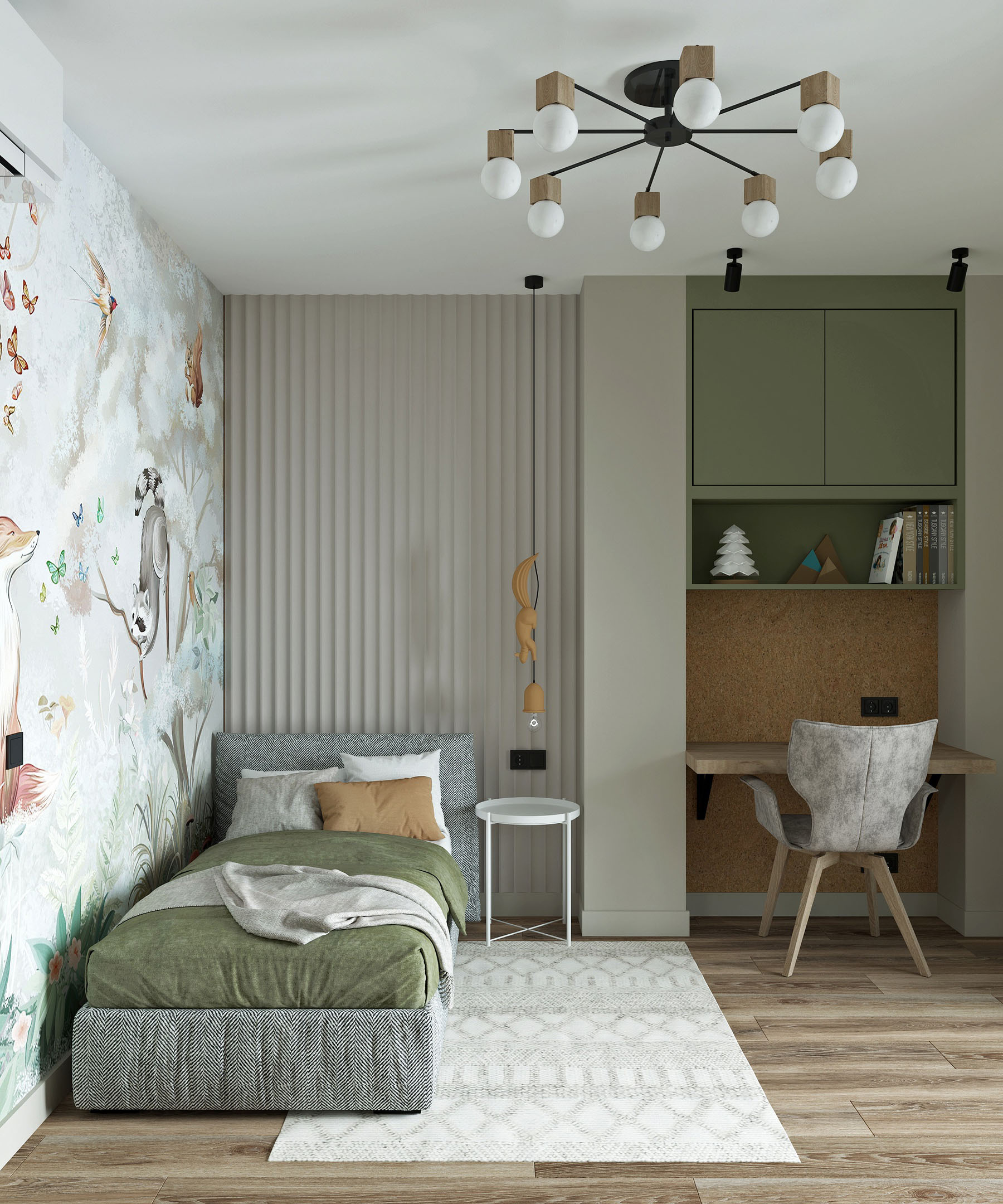 Детская комната в серо-зеленых оттенках