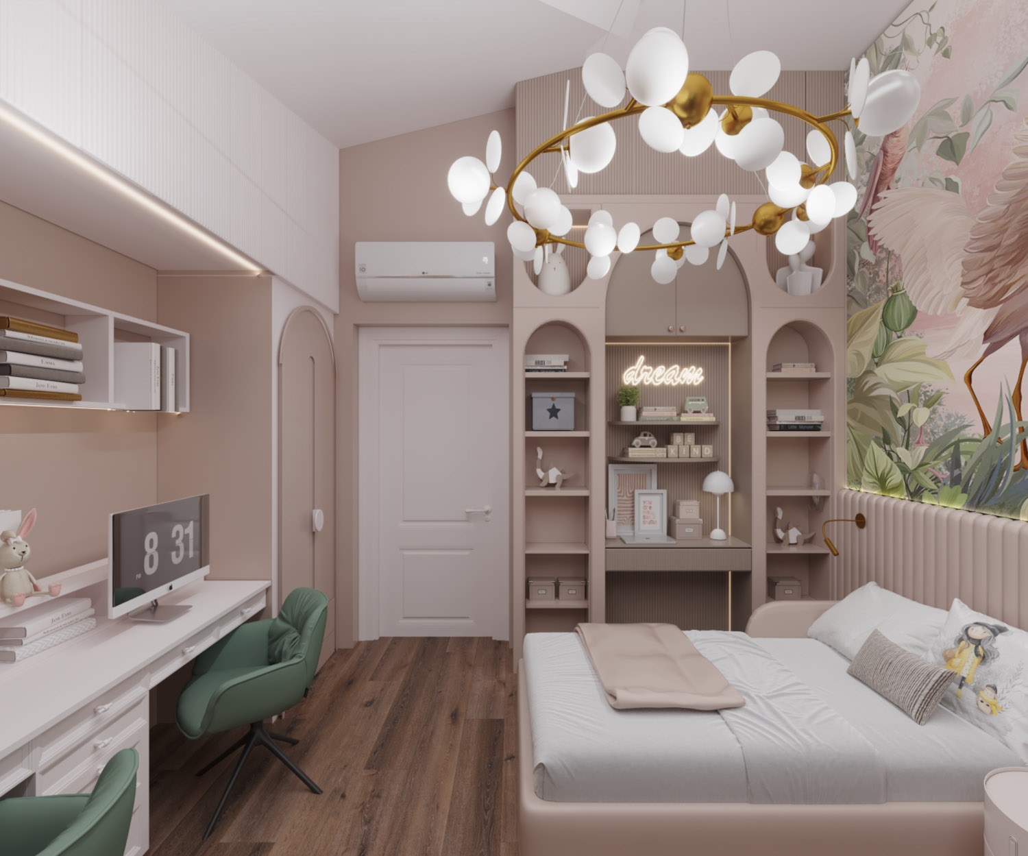 Лёгкий, уютный и продуманный до мелочей интерьер стал любимым местом для игр и отдыха маленьких принцесс. Родители по достоинству оценили удобство и функциональность решений.