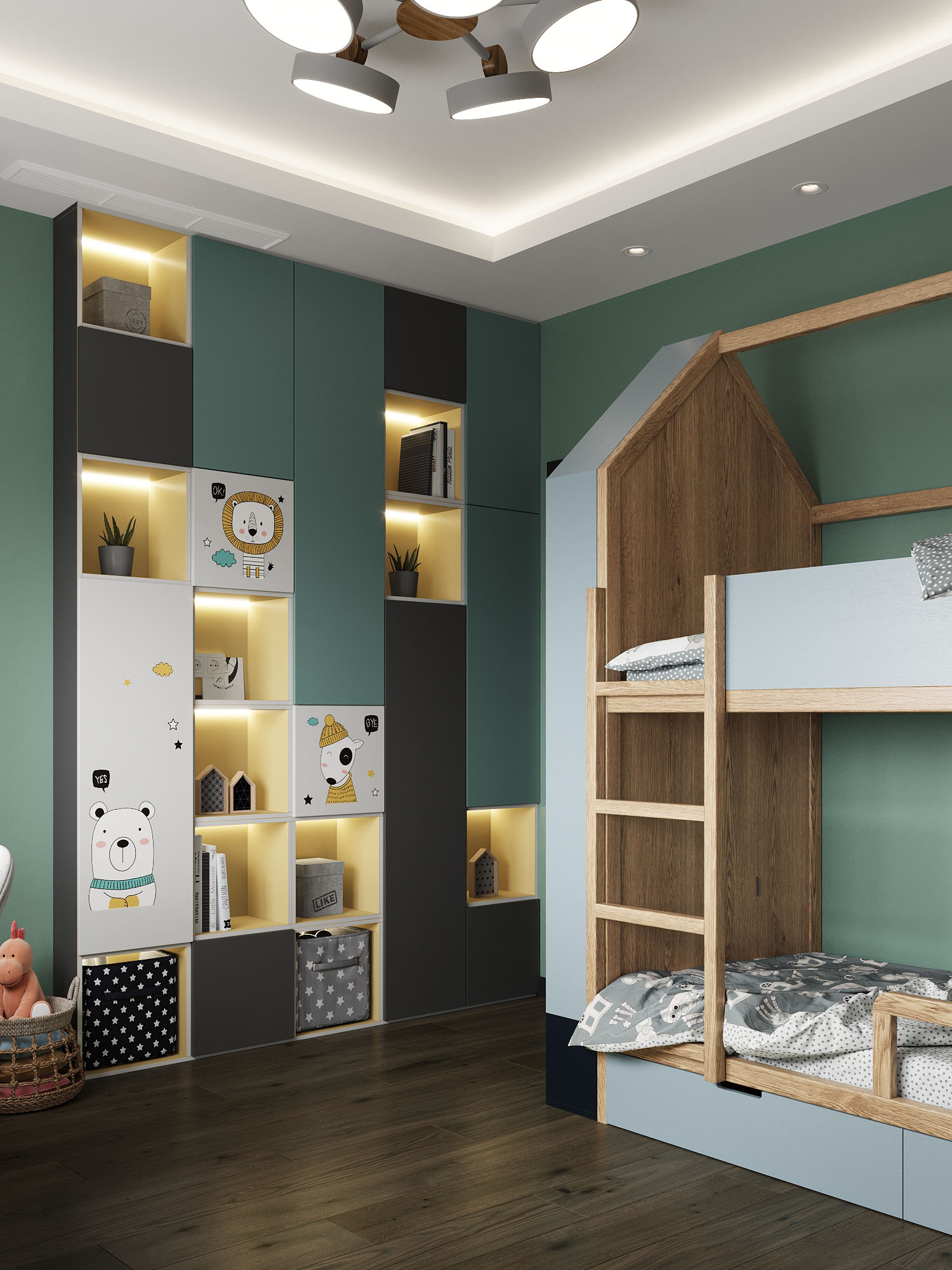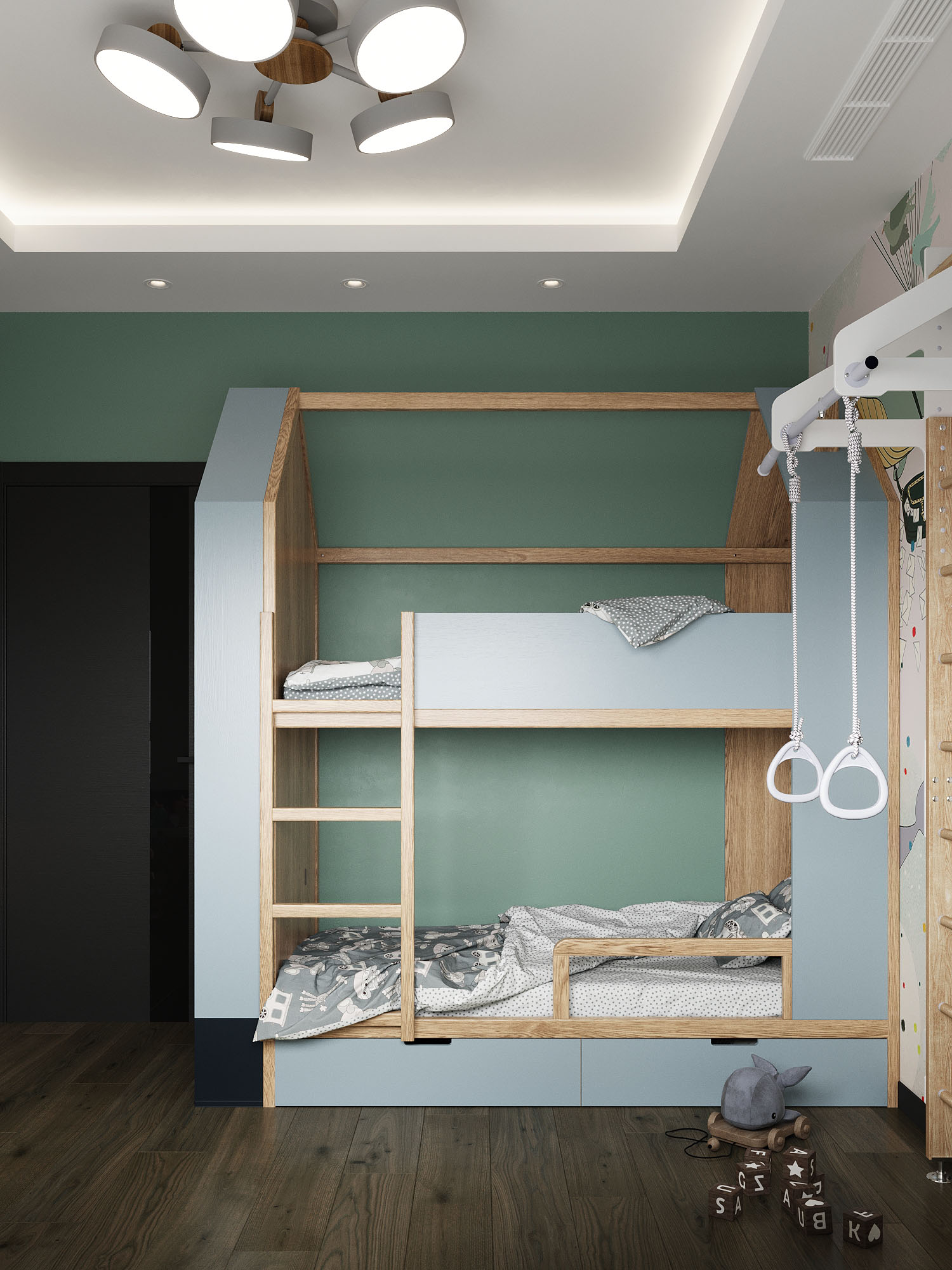 Дизайнеры с заказчиками сразу рассмотрели вариант для двух детей. Самой приятной новостью на середине реализации этого проекта стала беременность заказчицы. И в новую квартиру они уже заехали втроем!