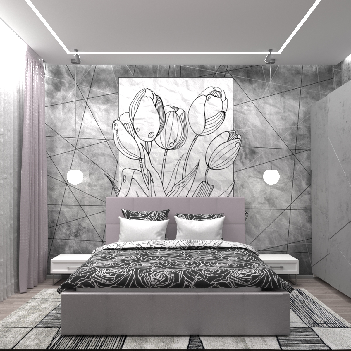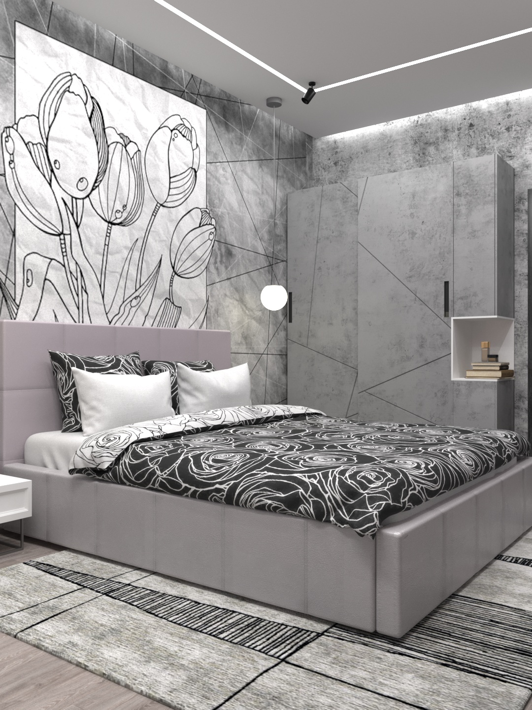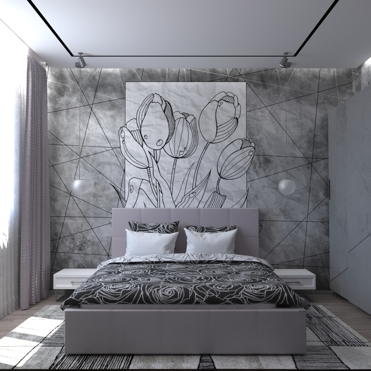 Спальня в серых тонах