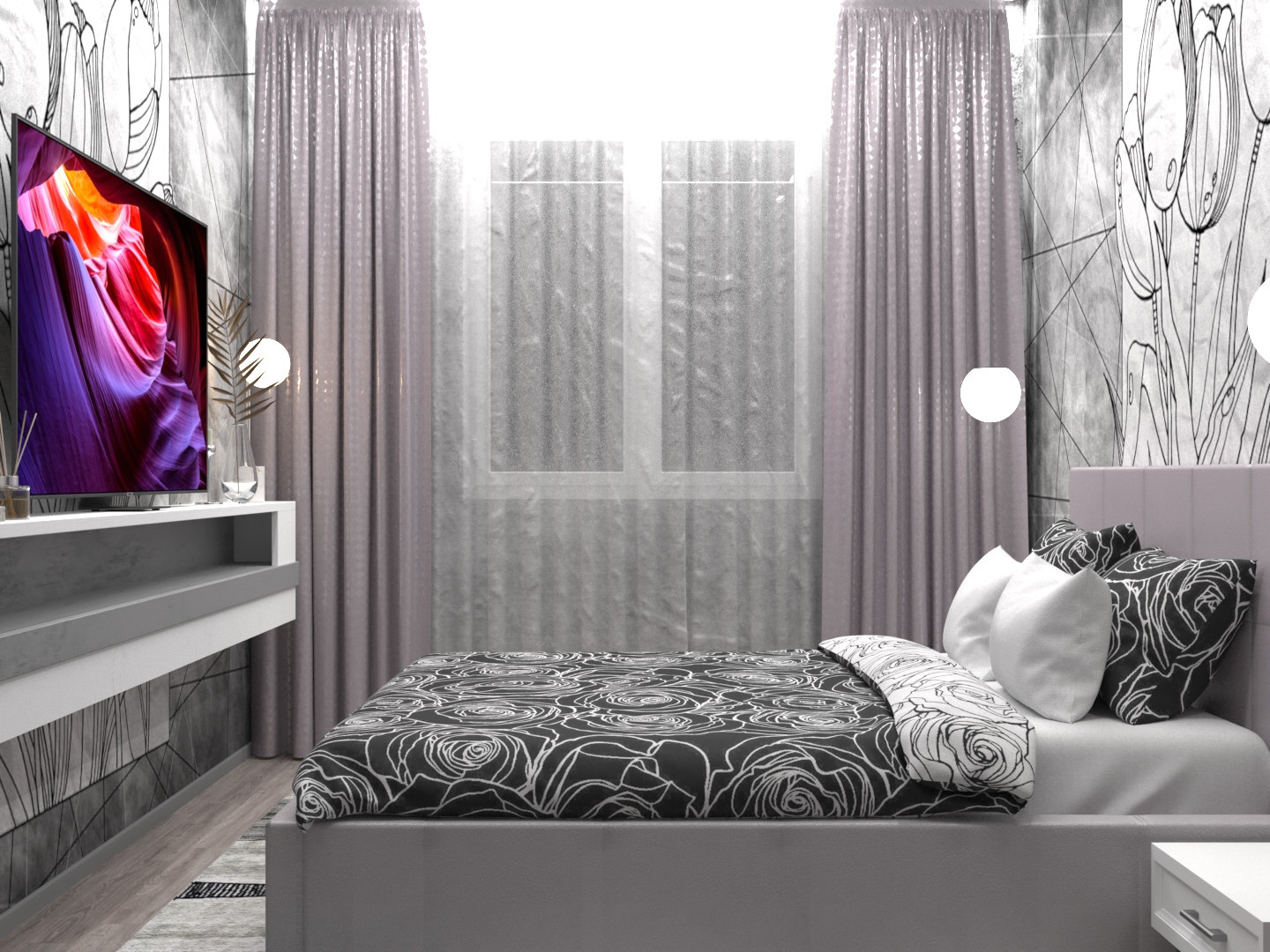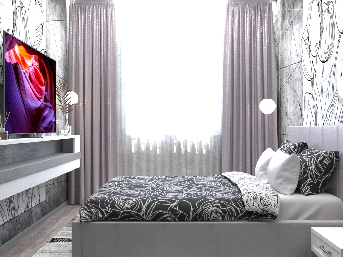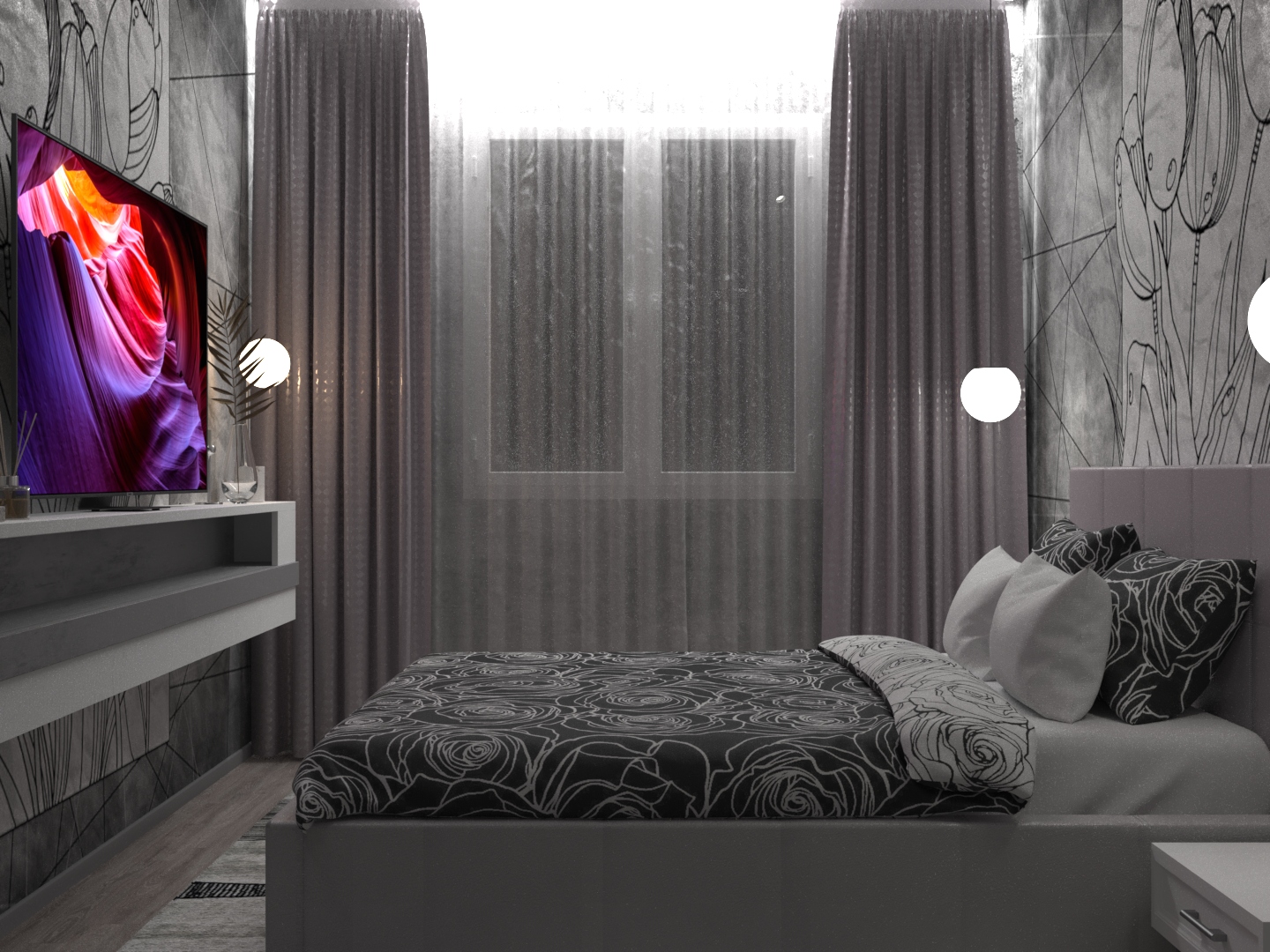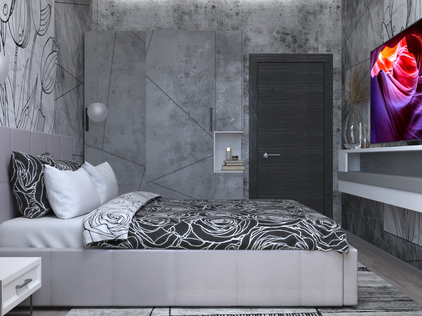 Спальня в серых тонах