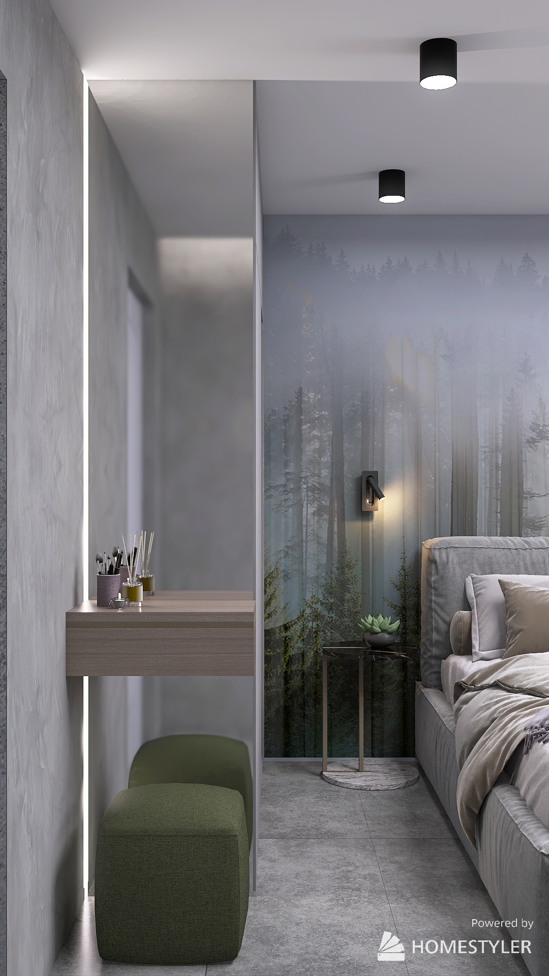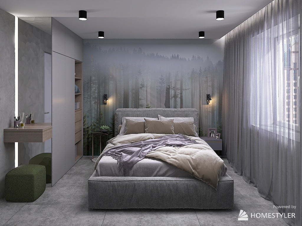 Спальня площадью 12 м², находящаяся в двухэтажном загородном доме г. Северодвинск, предназначена для друзей, которые будут приезжать в гости. Фреска из коллекции FORESTA создает неповторимую атмосферу. В нашей интерпретации лес скрывает легкая ткань, прозрачная и невесомая, не перегружающая, а наоборот, добавляющая воздух в ваше пространство. Это выглядит очень красиво, ненавязчиво и очень стильно!