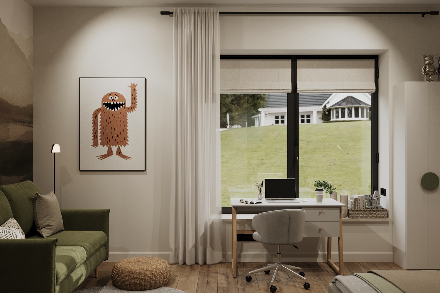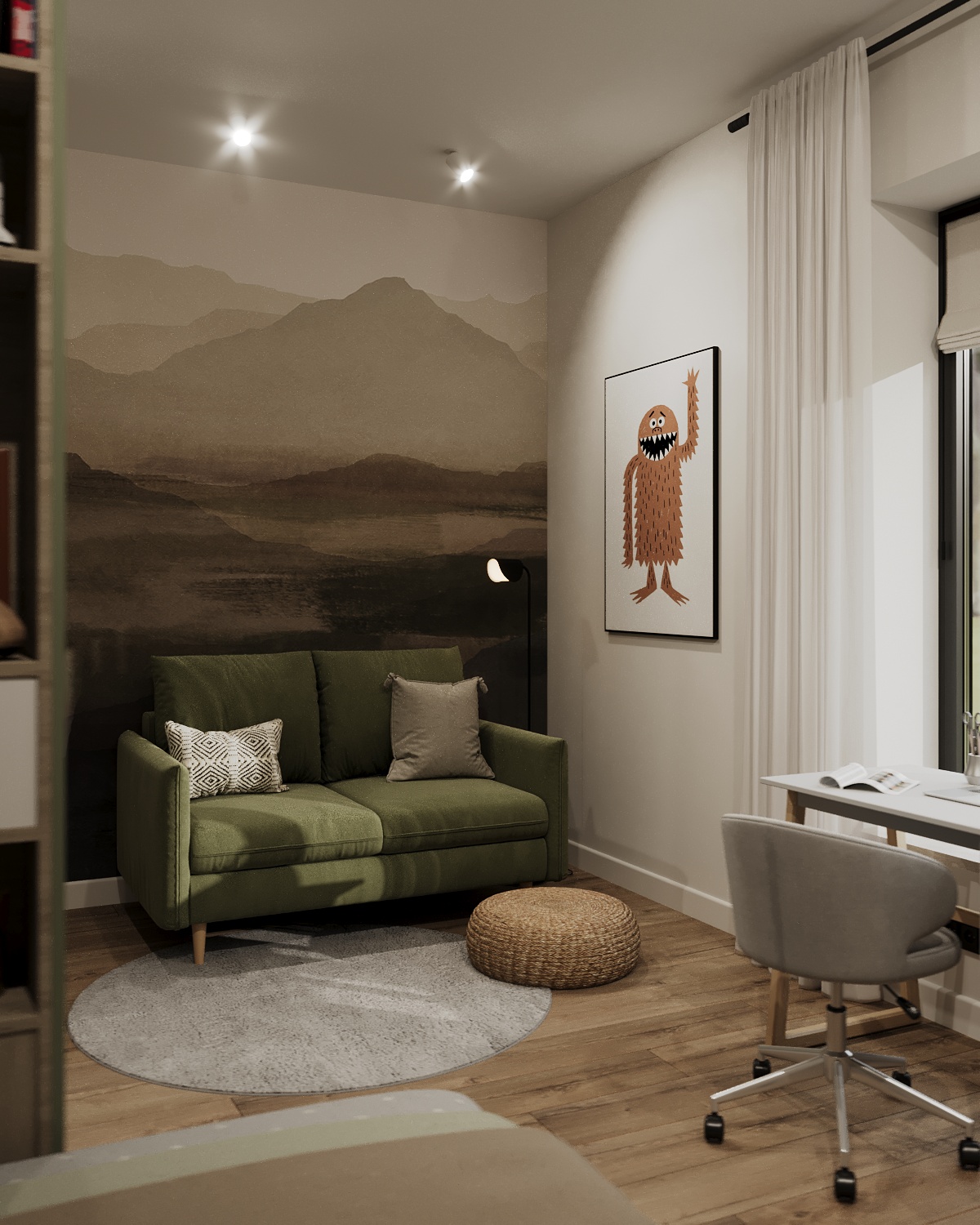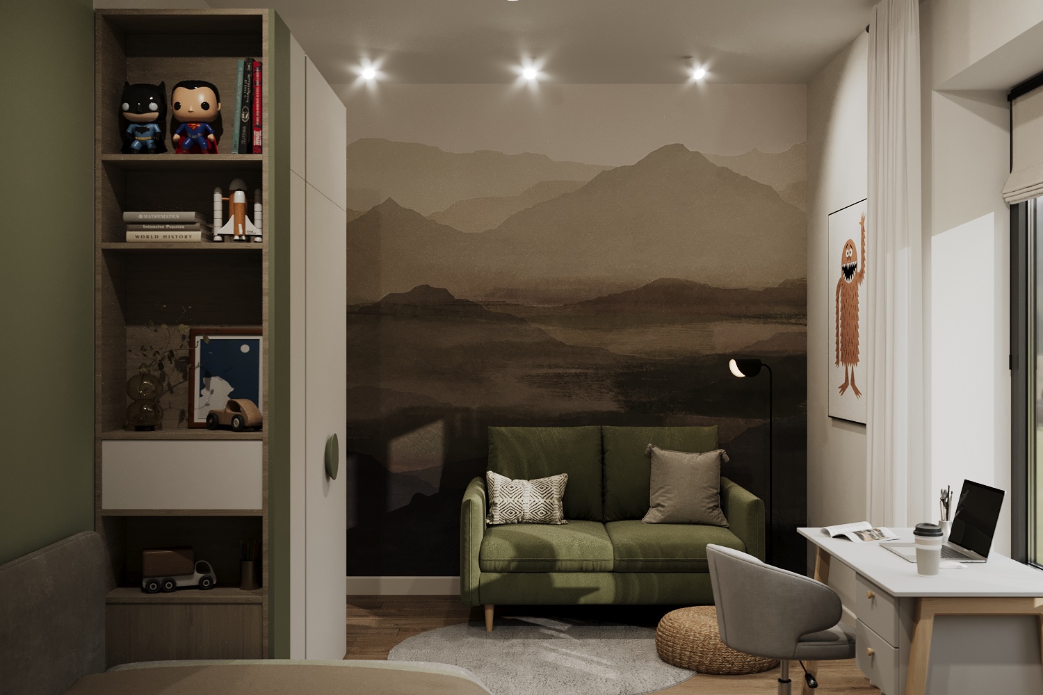 Уютное лаконичное пространство для парня в современном коттеджном поселке в г.Тула. Детская получилась самой яркой комнатой в данном проекте, при этом была сохранена общая стилистика дома.