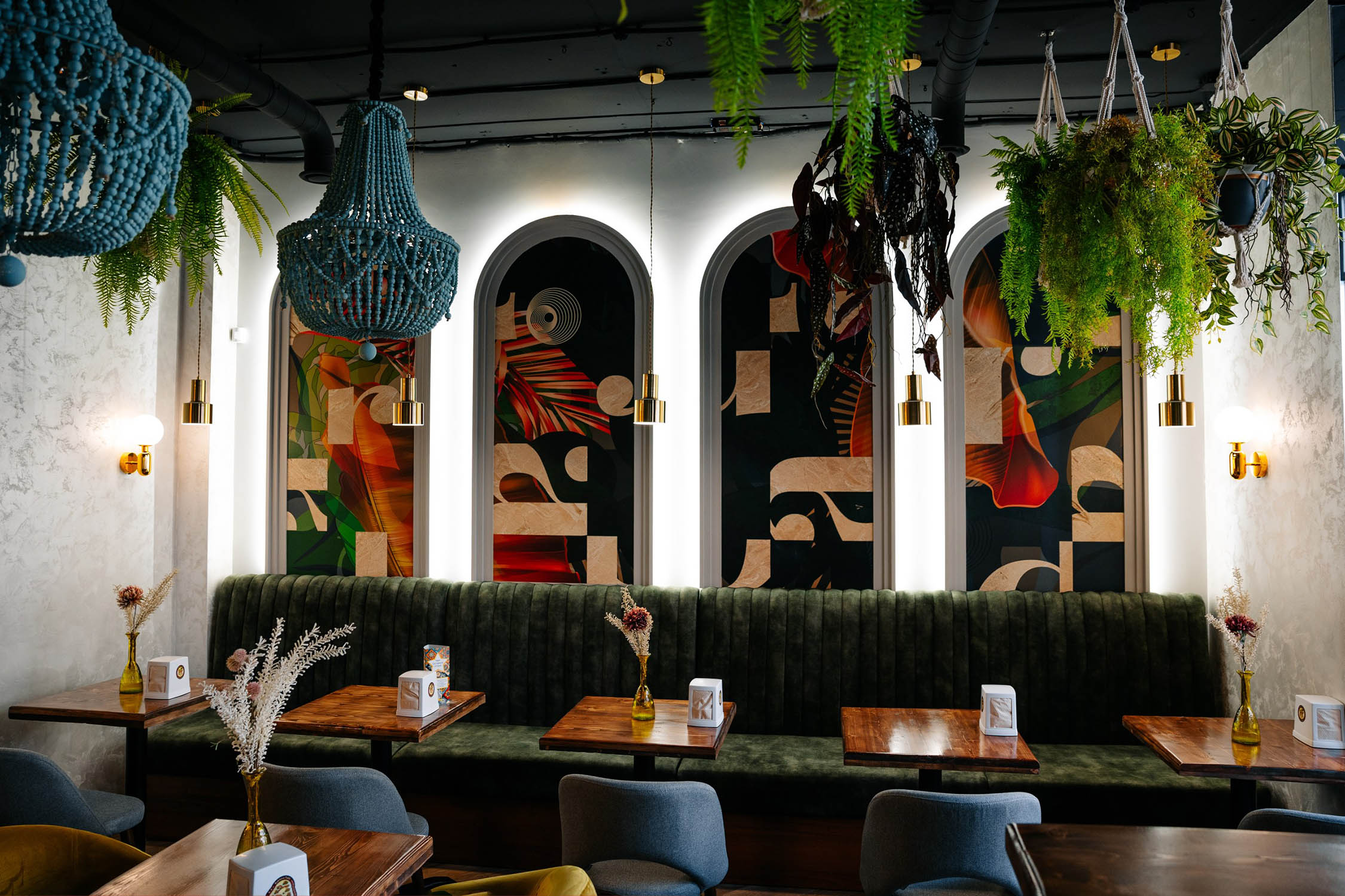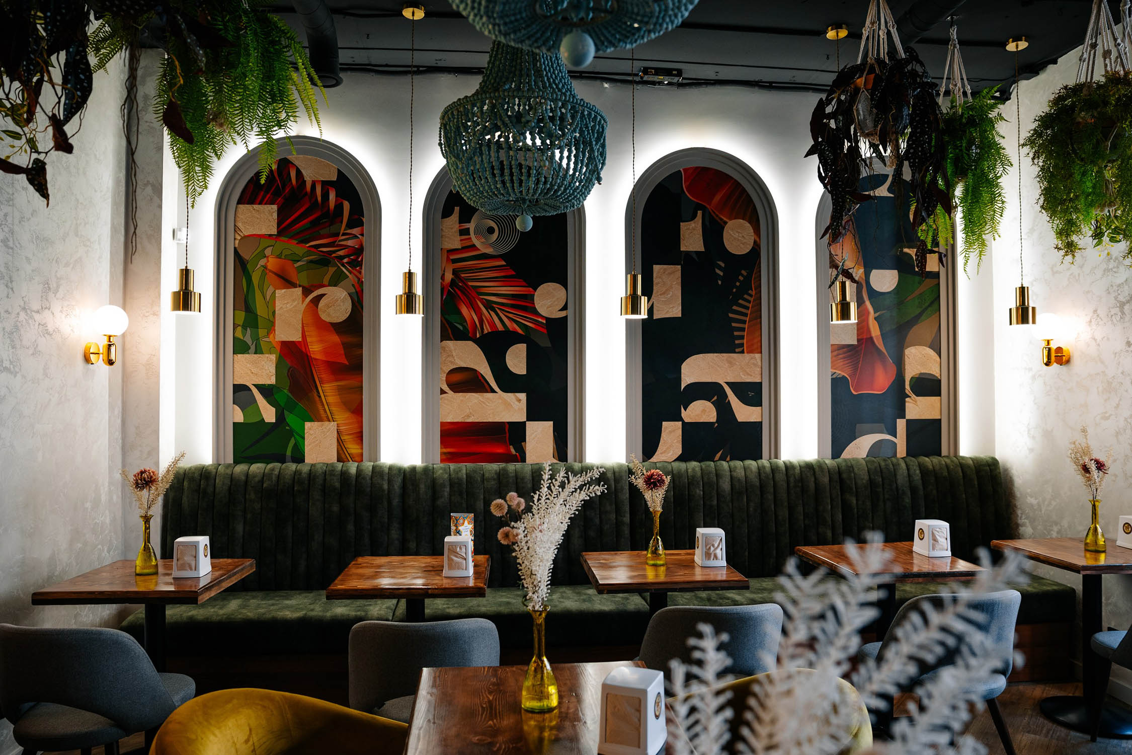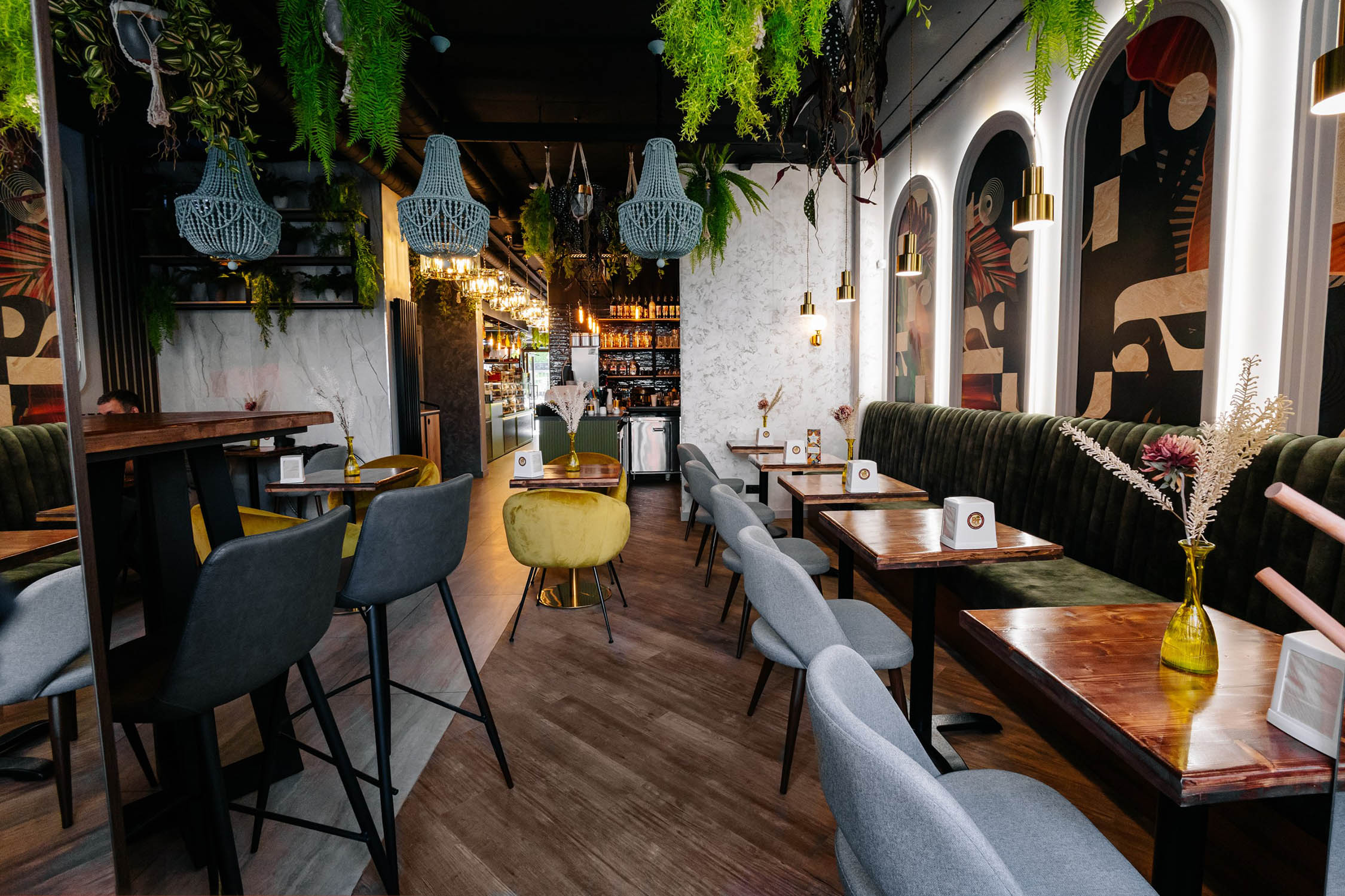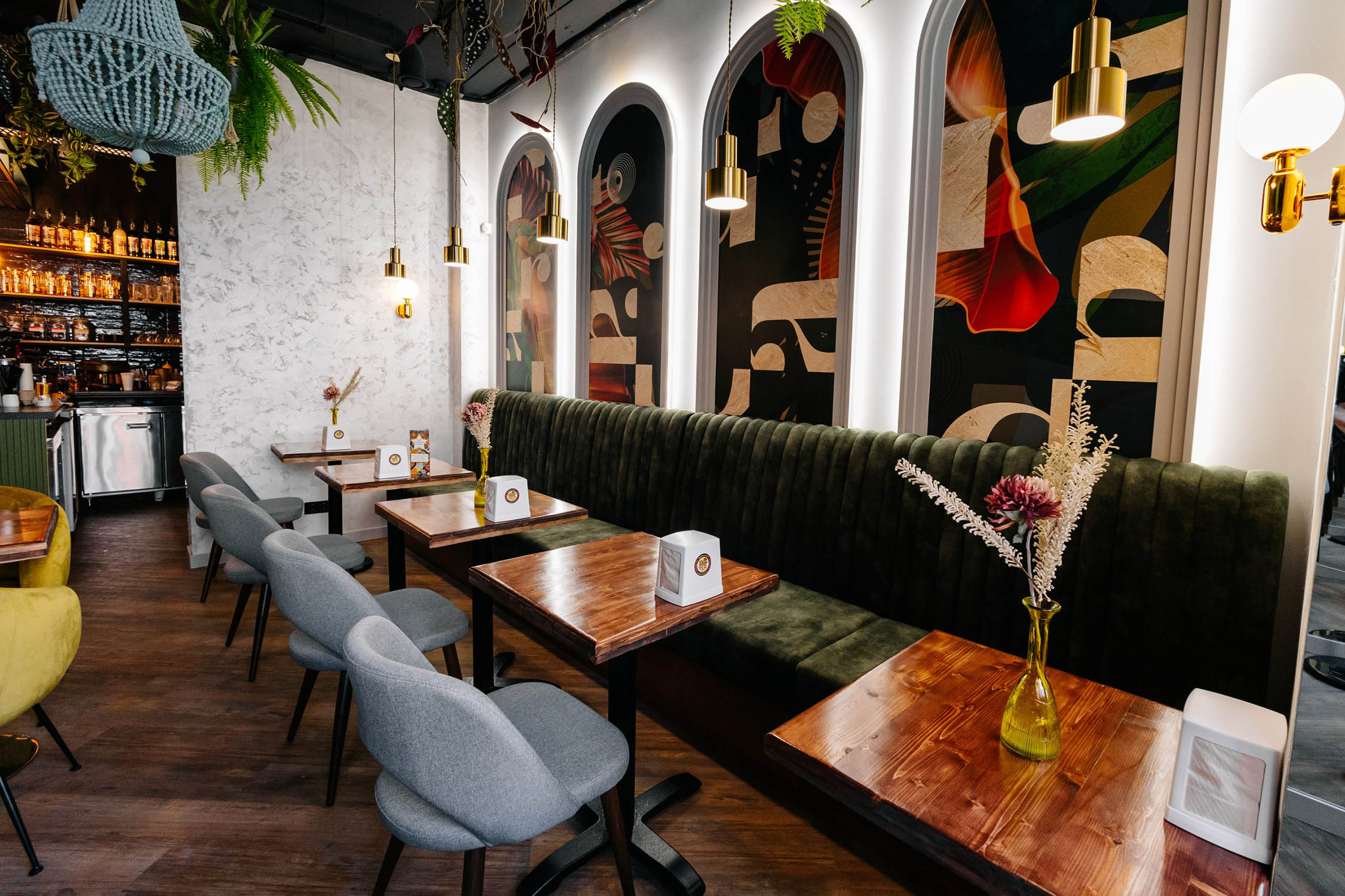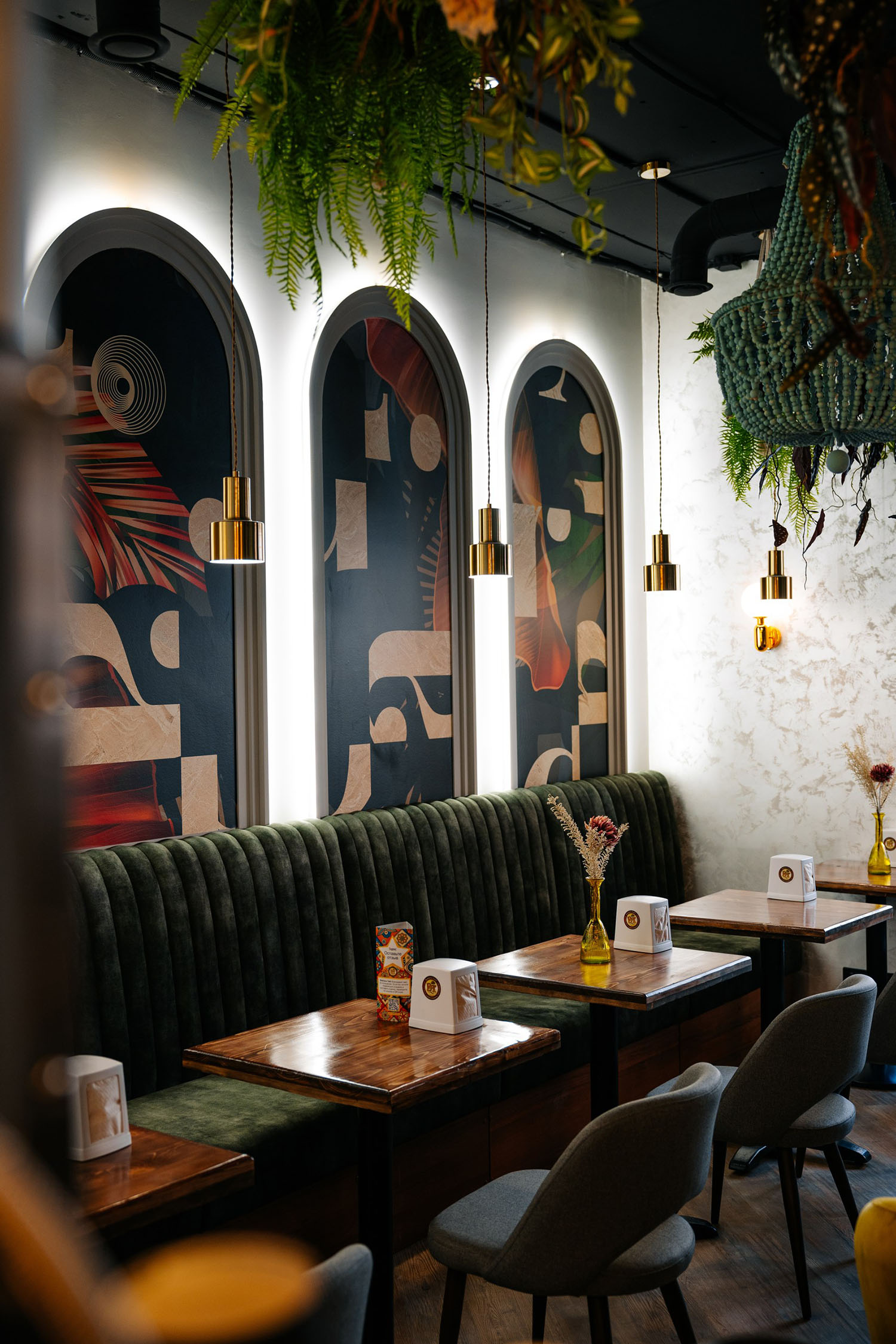 Ресторан в Краснодаре украсили панно из коллекции «Grafico». Геометрические, абстрактные принты этой коллекции останутся в сердце приятным воспоминанием даже у самых искушённых посетителей. Необычные обои из этой коллекции отлично оживят пространство своим безупречным, оригинальным стилем!