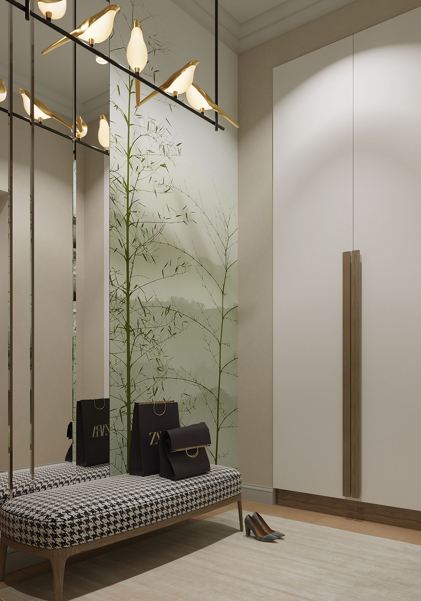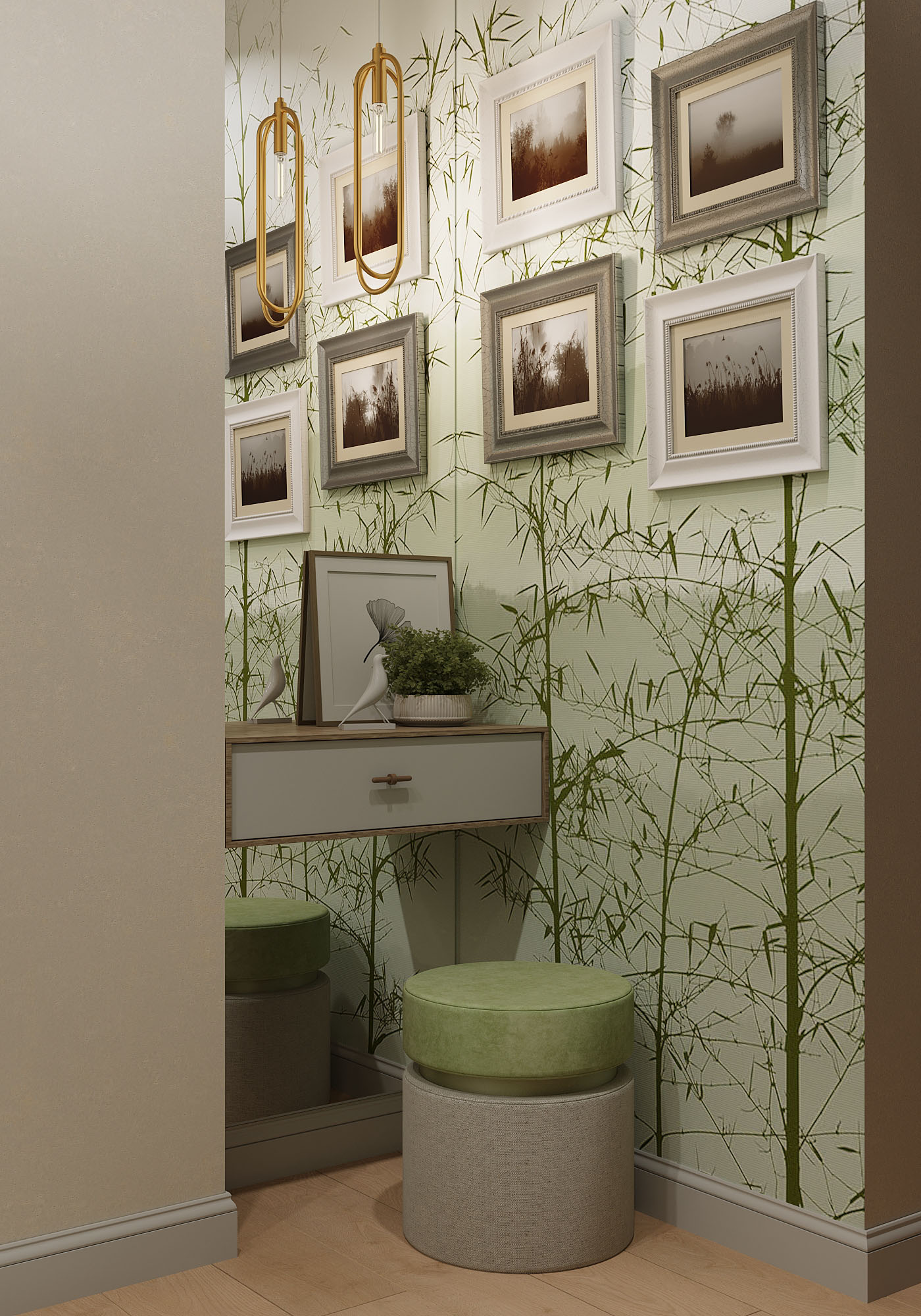 Проект прихожей, для которой отлично подошли обои из коллекции GreenDay. Заказчики очень любят природу, поэтому просили в дизайне квартиры использовать спокойные оттенки и природные мотивы. Прихожая была задумана свежей и легкой, отражающей гостеприимность и добрый нрав хозяев.