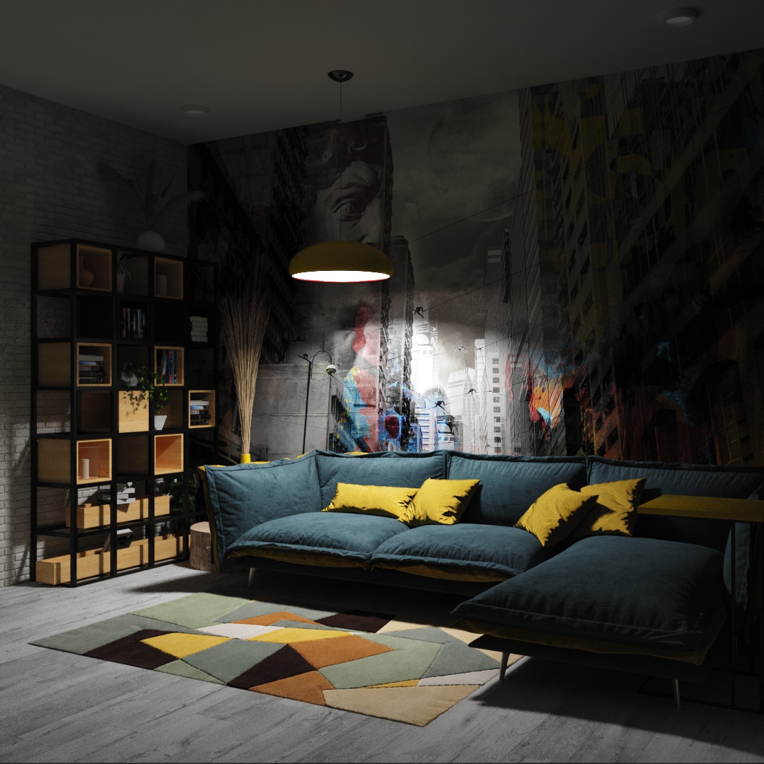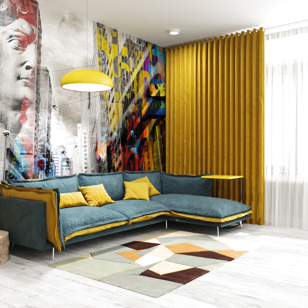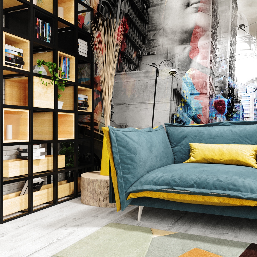Яркая гостиная в стиле гранж