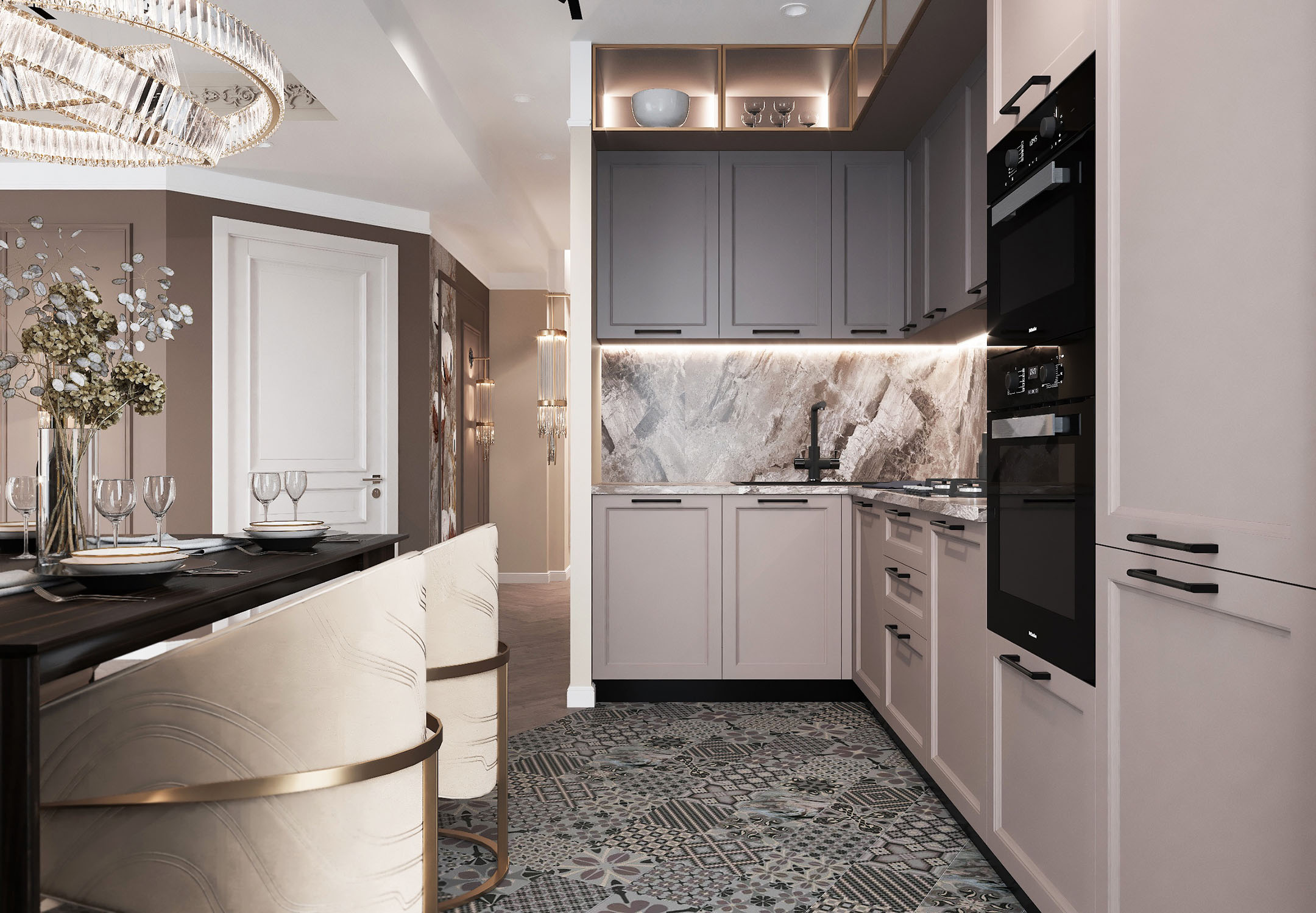 Кухня-гостиная для холостяка в стиле Неоклассика