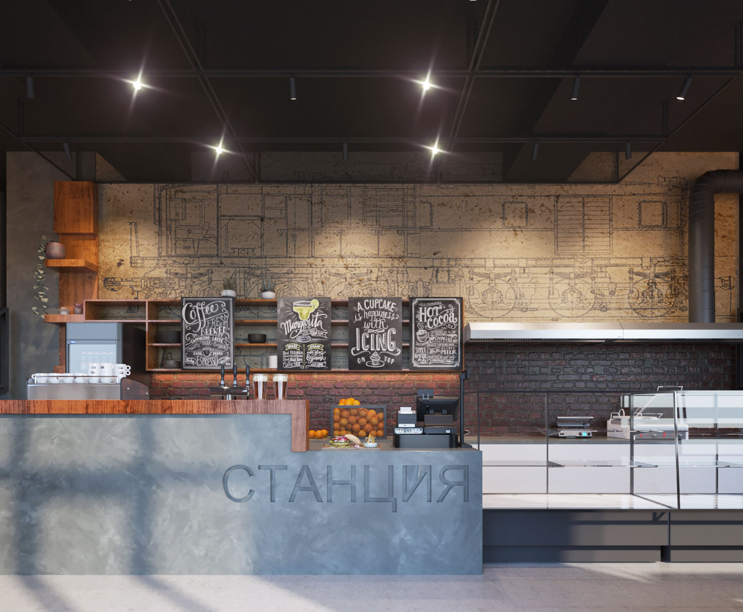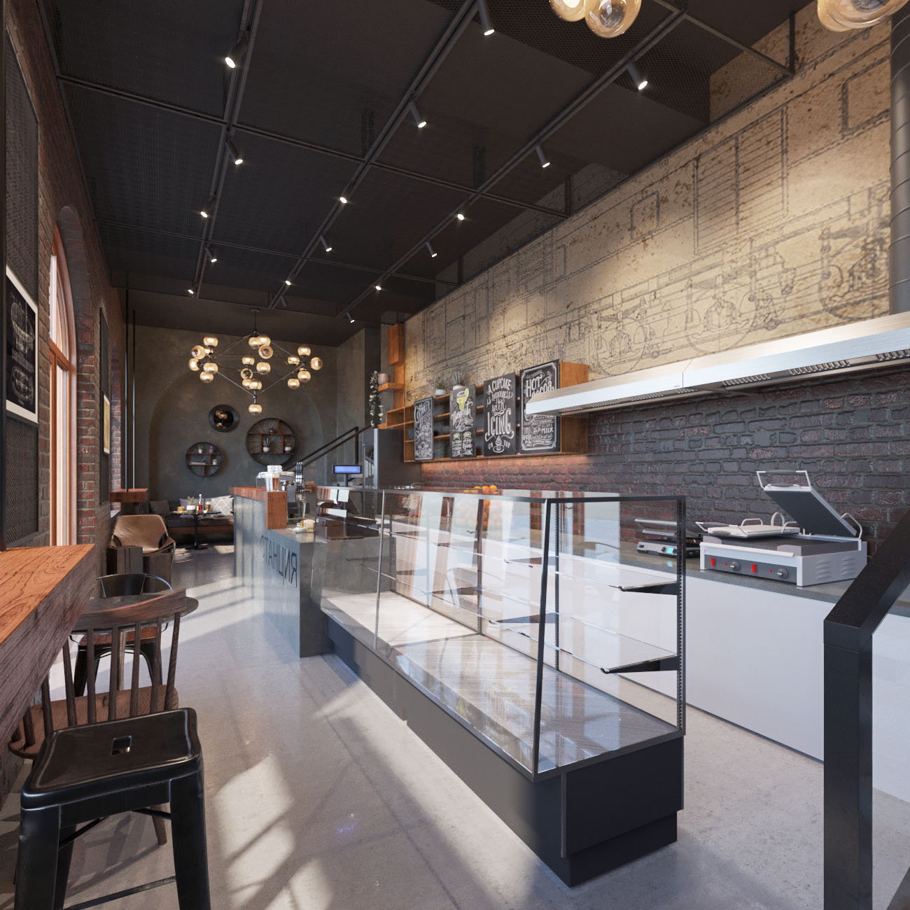 Обои Induction в оформлении кафе. Коллекция создана для тех, кто не представляет своей жизни без науки и открытий. В ней собраны замысловатые чертежи, которые станут прекрасным дополнением комнаты в стиле смелого стимпанка или лофта. Окружите себя тематическими принтами и откройте сердце навстречу новым знаниям!
