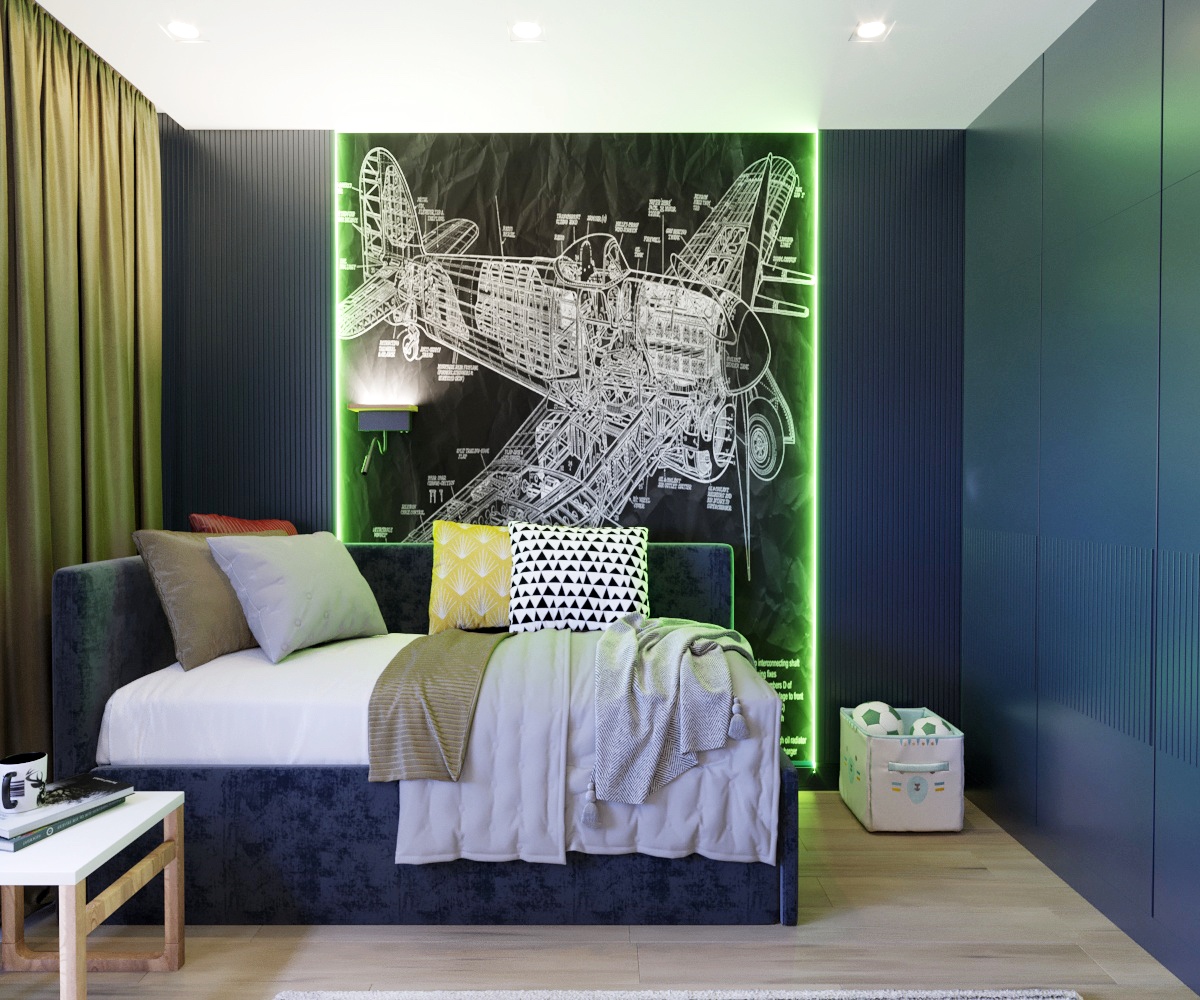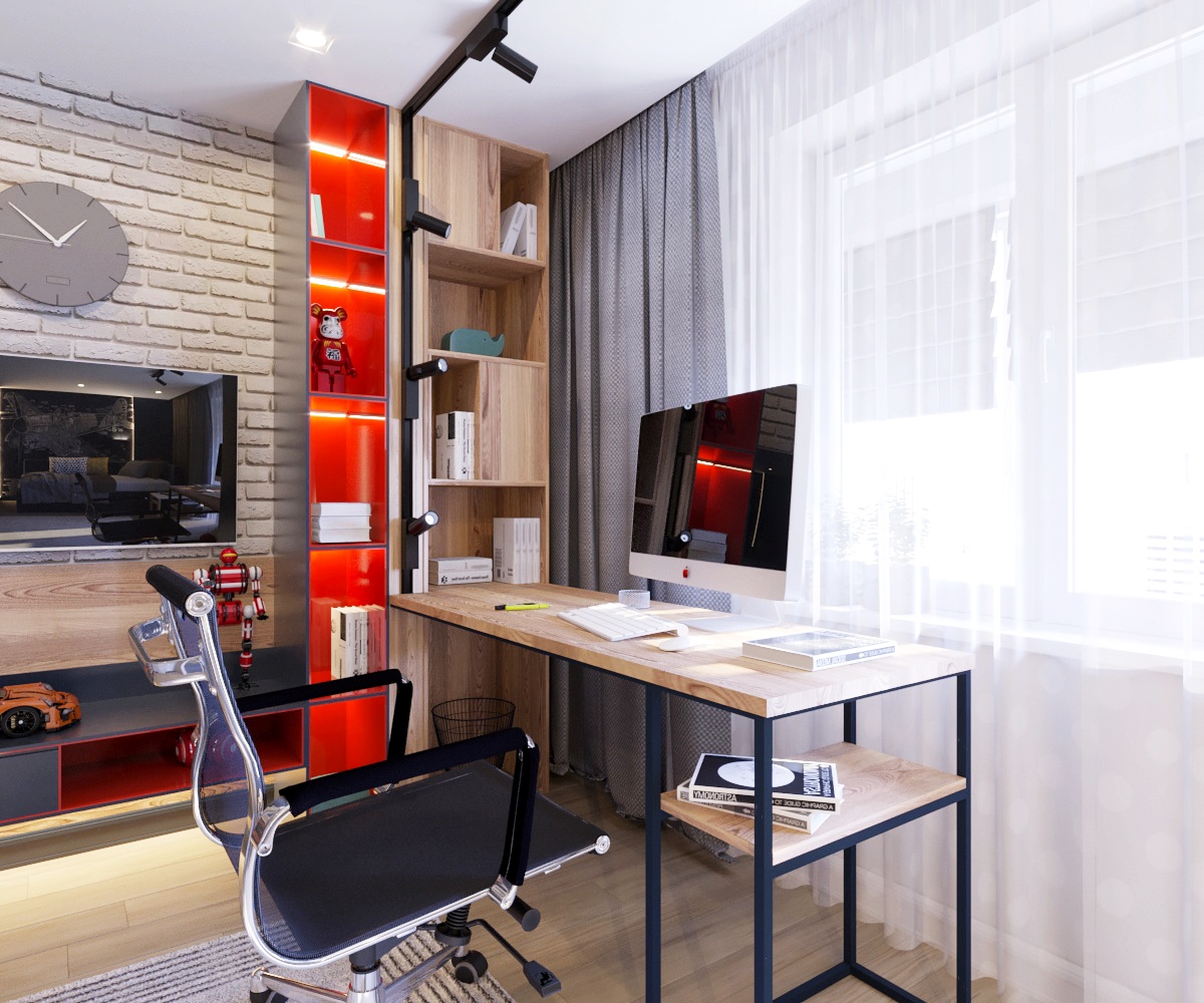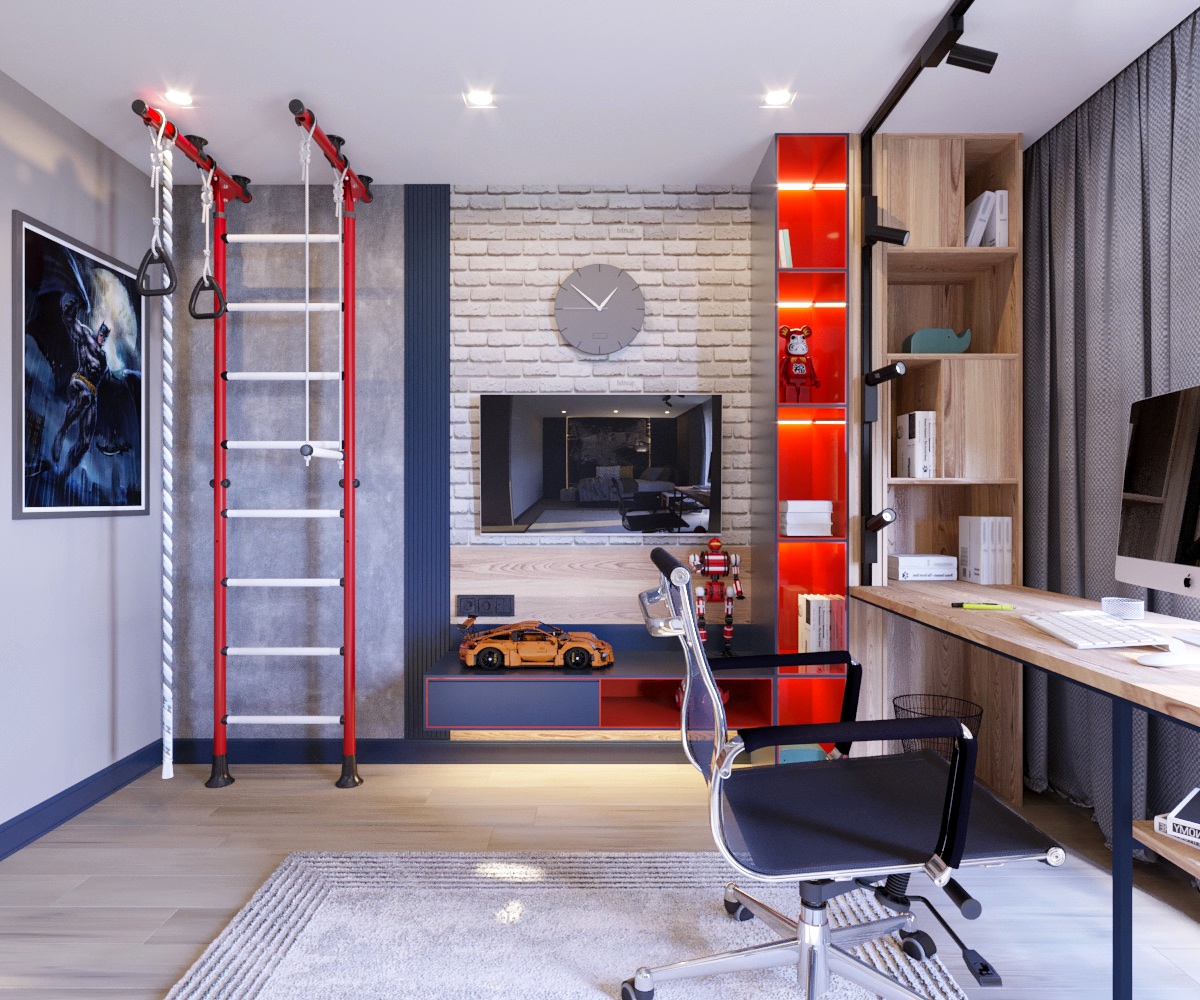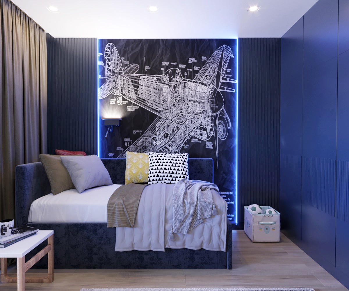 Квартира для молодого холостяка из Челябинска. Обои из коллекции INDUCTION. Коллекция создана для тех, кто не представляет своей жизни без науки и открытий. В ней собраны замысловатые чертежи, которые станут прекрасным дополнением комнаты в стиле смелого стимпанка или лофта.