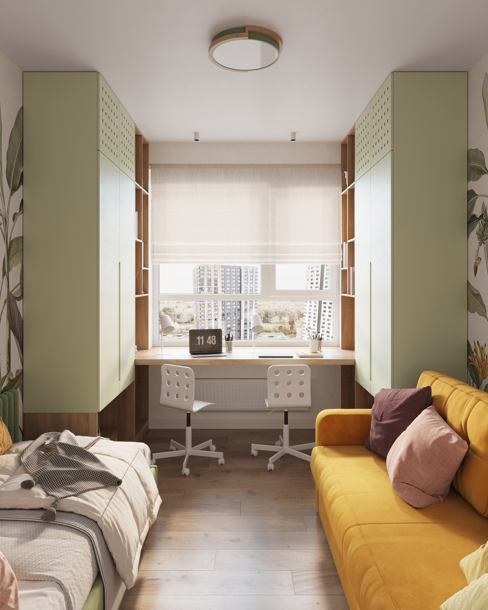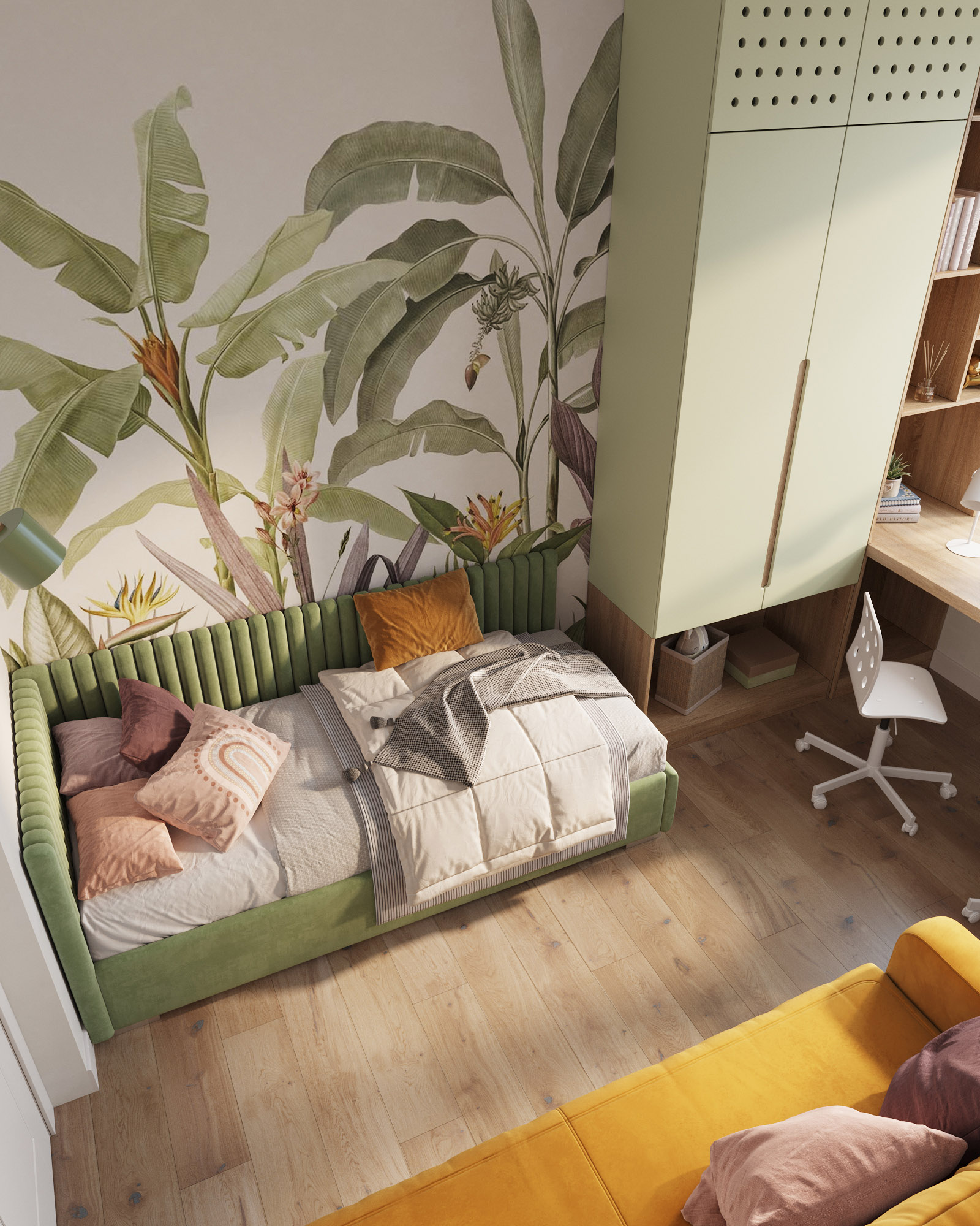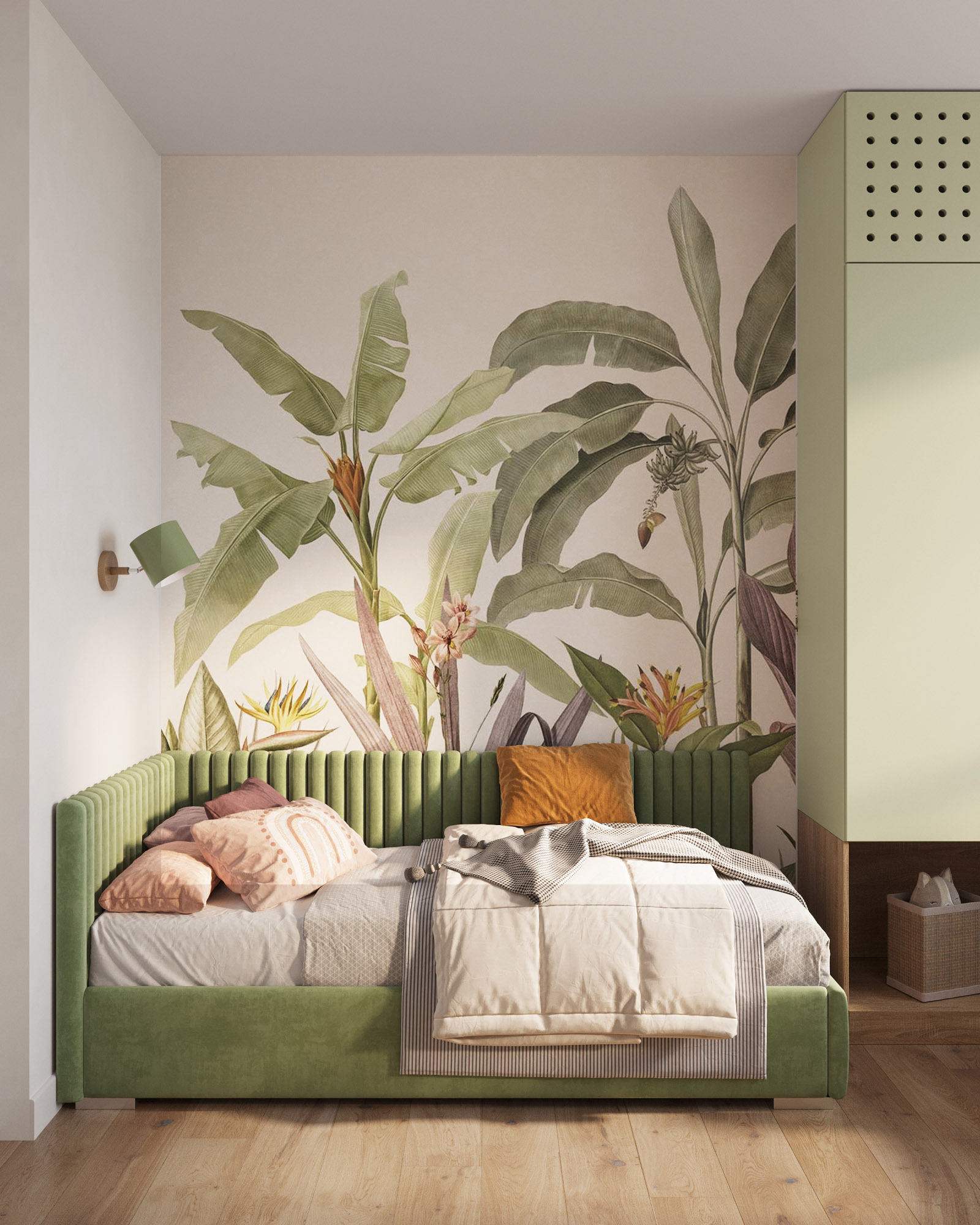 Детская комната с использованием обоев из коллекции «Eden-21». Эти удивительные принты придадут вашему интерьеру особый шик, а проработанные до мельчайших деталей рисунки каждый раз будут привлекать внимание и открывать вашему взору что-то новое.