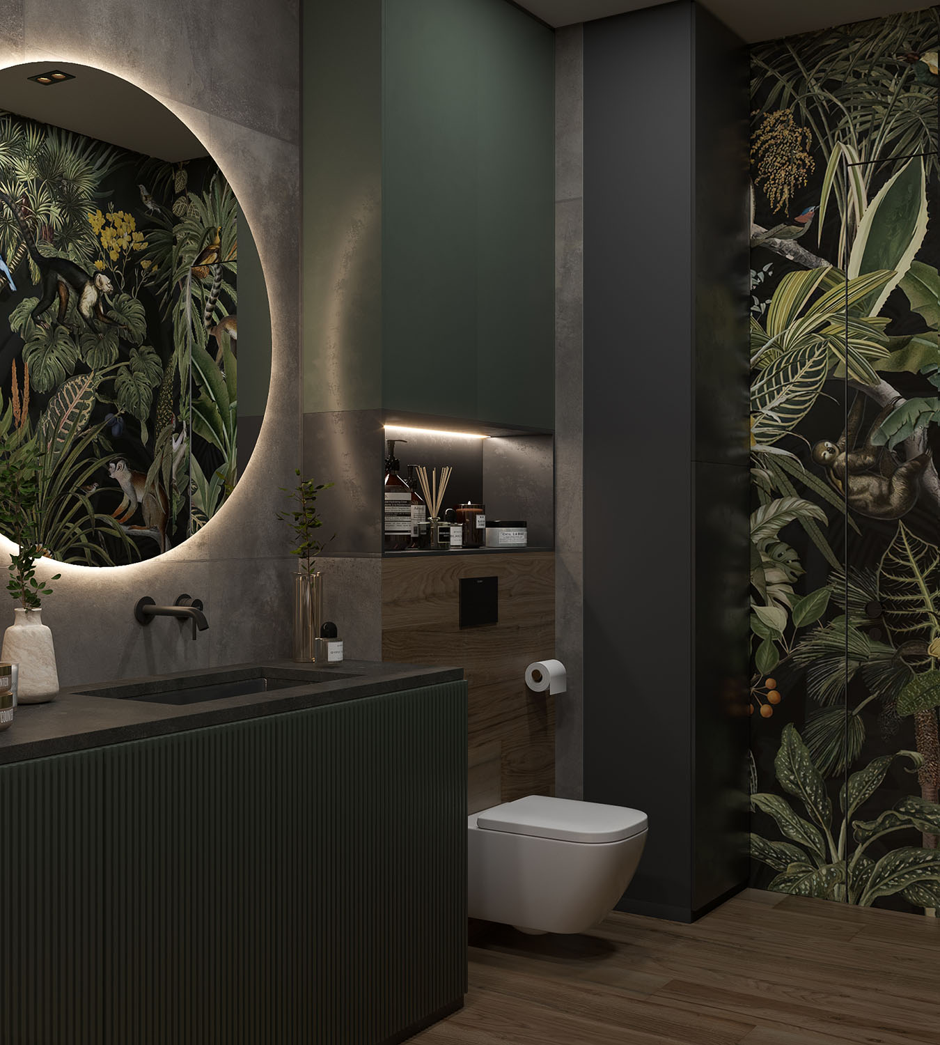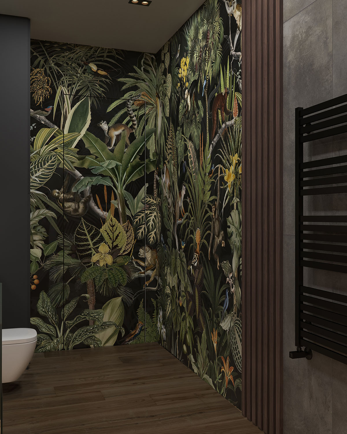 Дизайн санузла, в оформлении которого использованы обои из коллекции EDEN 21. В ней мы совместили привлекательные для всех природные мотивы с яркими интенсивными красками. Эти удивительные принты придадут вашему интерьеру особый шик, а проработанные до мельчайших деталей рисунки каждый раз будут привлекать внимание и открывать вашему взору что-то новое.