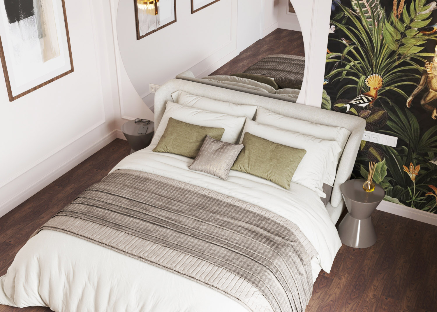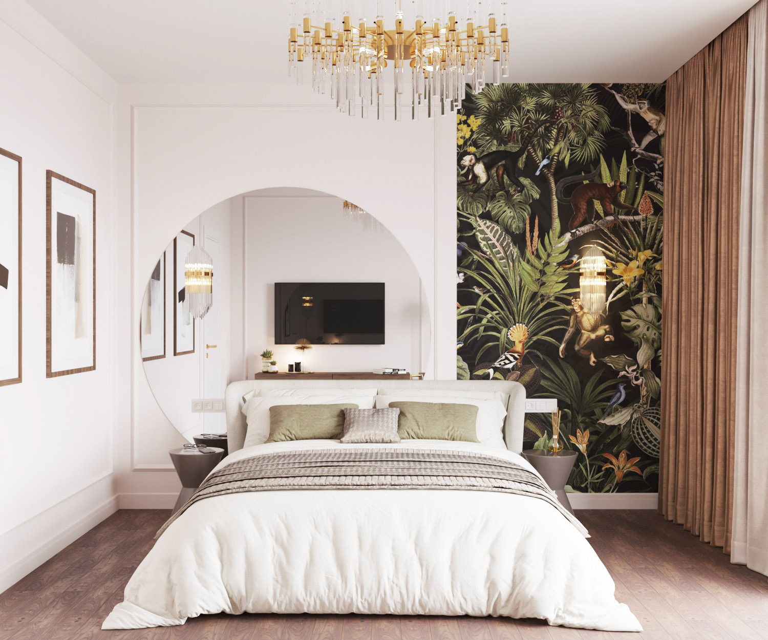 Для оформления этой спальни заказчики выбрали обои из коллекции EDEN 21. В ней мы совместили привлекательные для всех природные мотивы с яркими интенсивными красками. Эти удивительные принты придадут вашему интерьеру особый шик, а проработанные до мельчайших деталей рисунки каждый раз будут привлекать внимание и открывать вашему взору что-то новое.