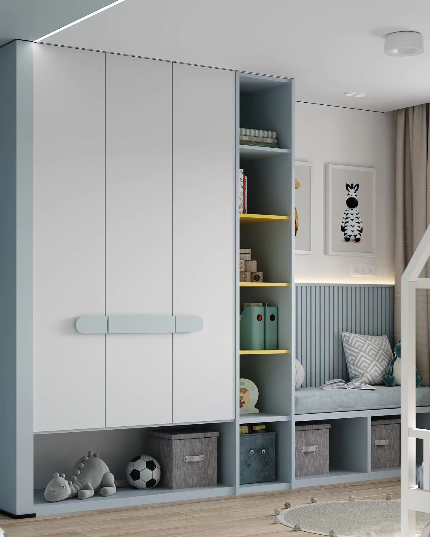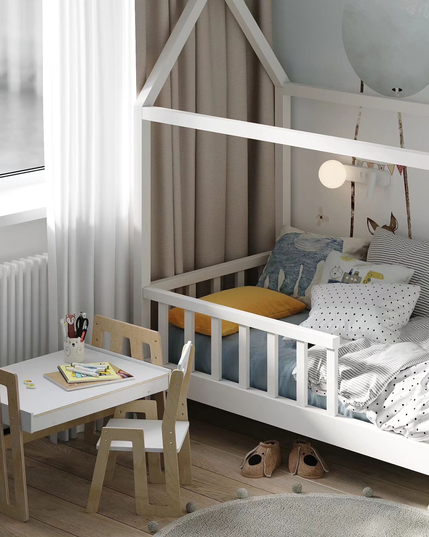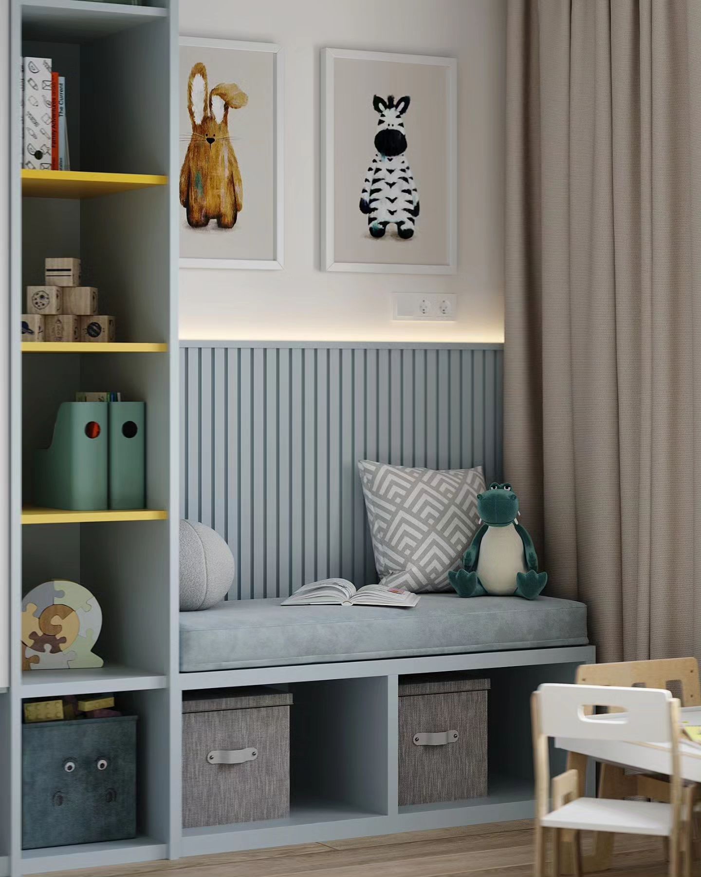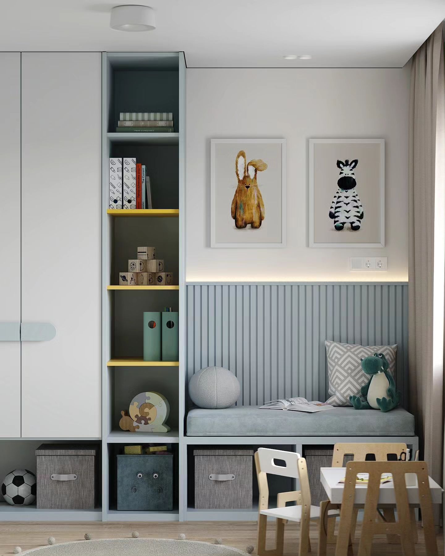 Детская комната площадью 13,5 м². Обои из коллекции LITTLE FOREST. Удивительная сказочная Вселенная открывается в этой чудесной коллекции. Нарисованные нашими дизайнерами герои будто вышли из доброй сказки и сейчас начнут рассказывать о своих приключениях. А может быть, даже пригласят взглянуть одним глазком на свой волшебный мир!