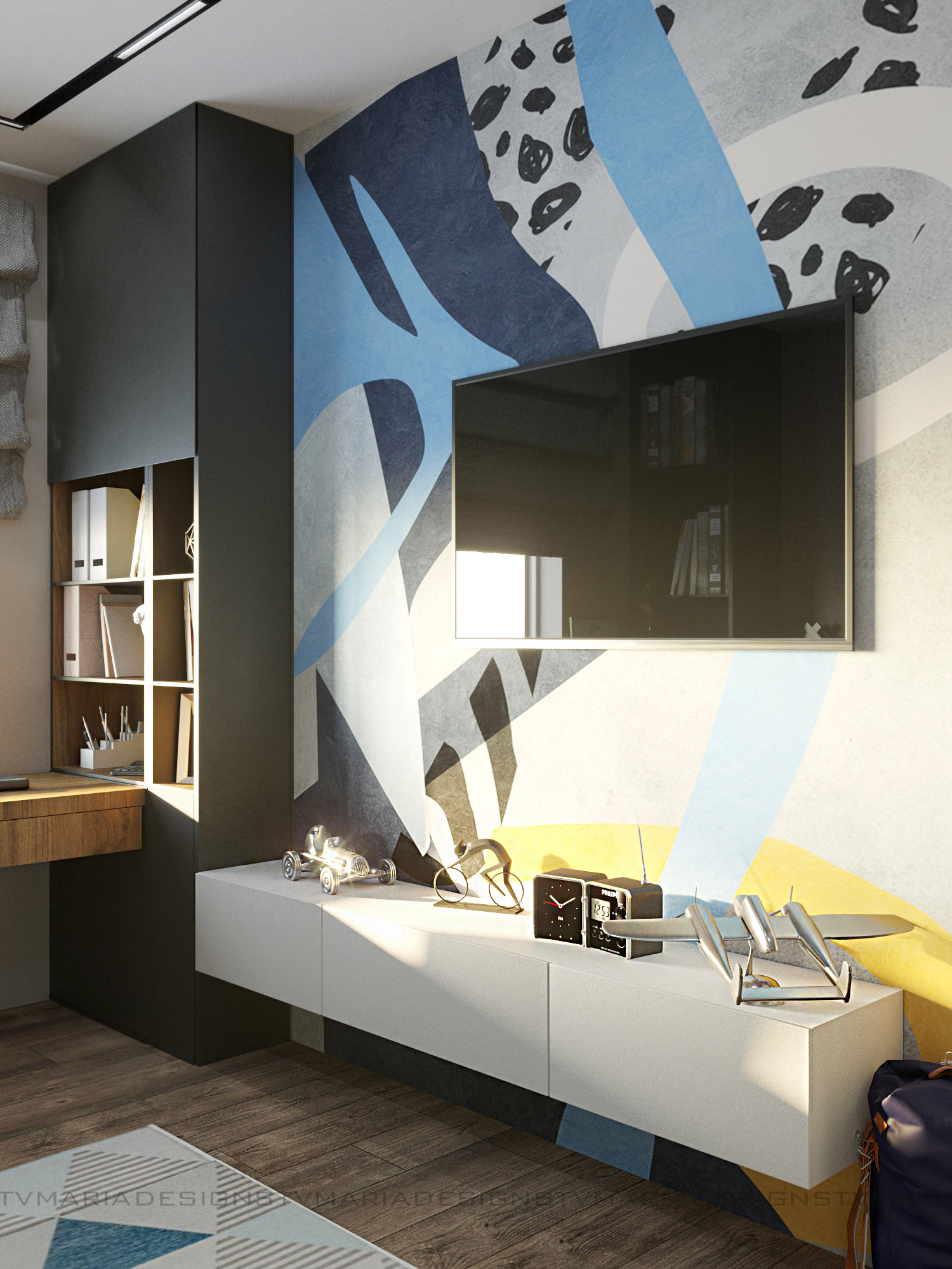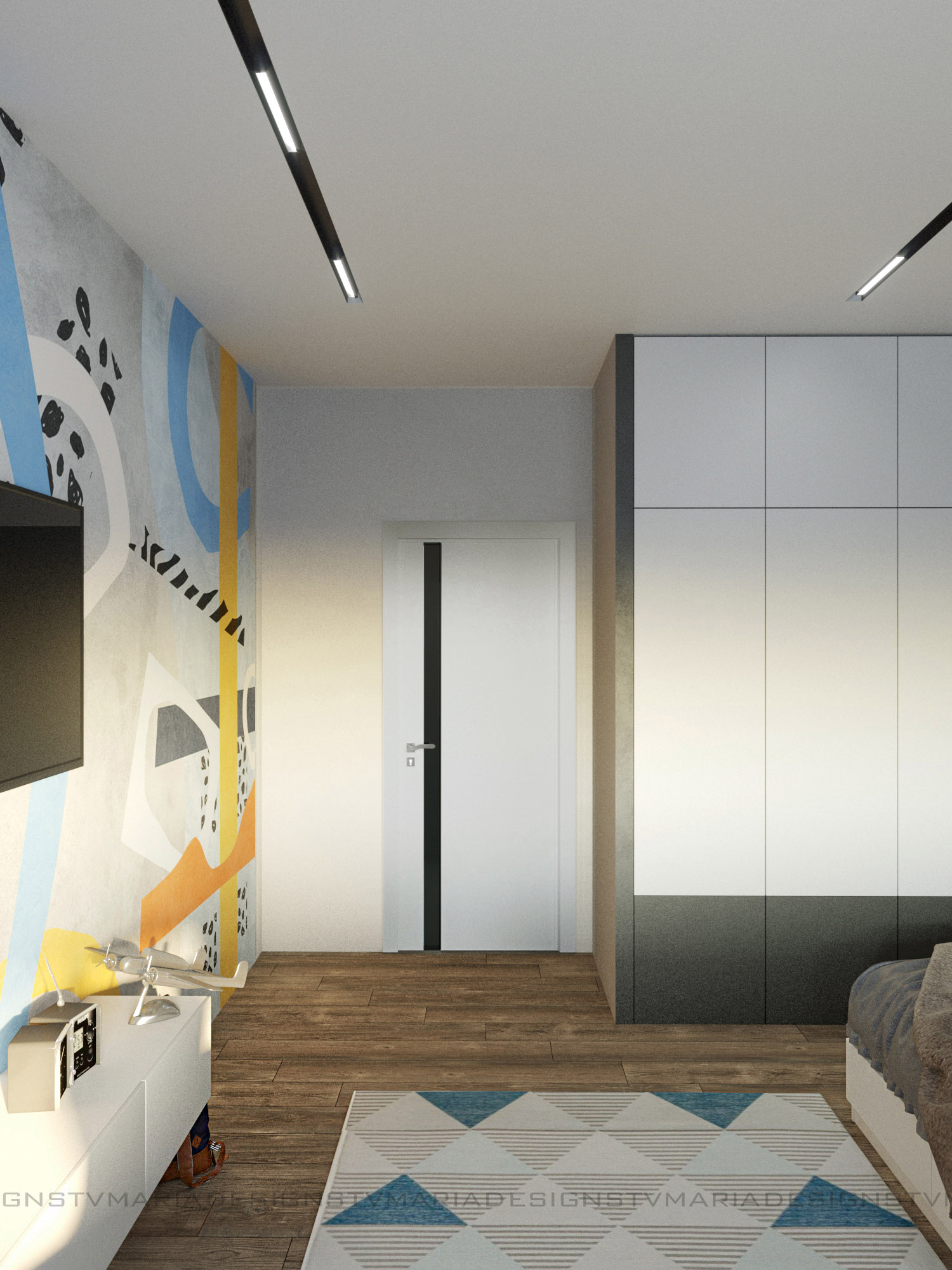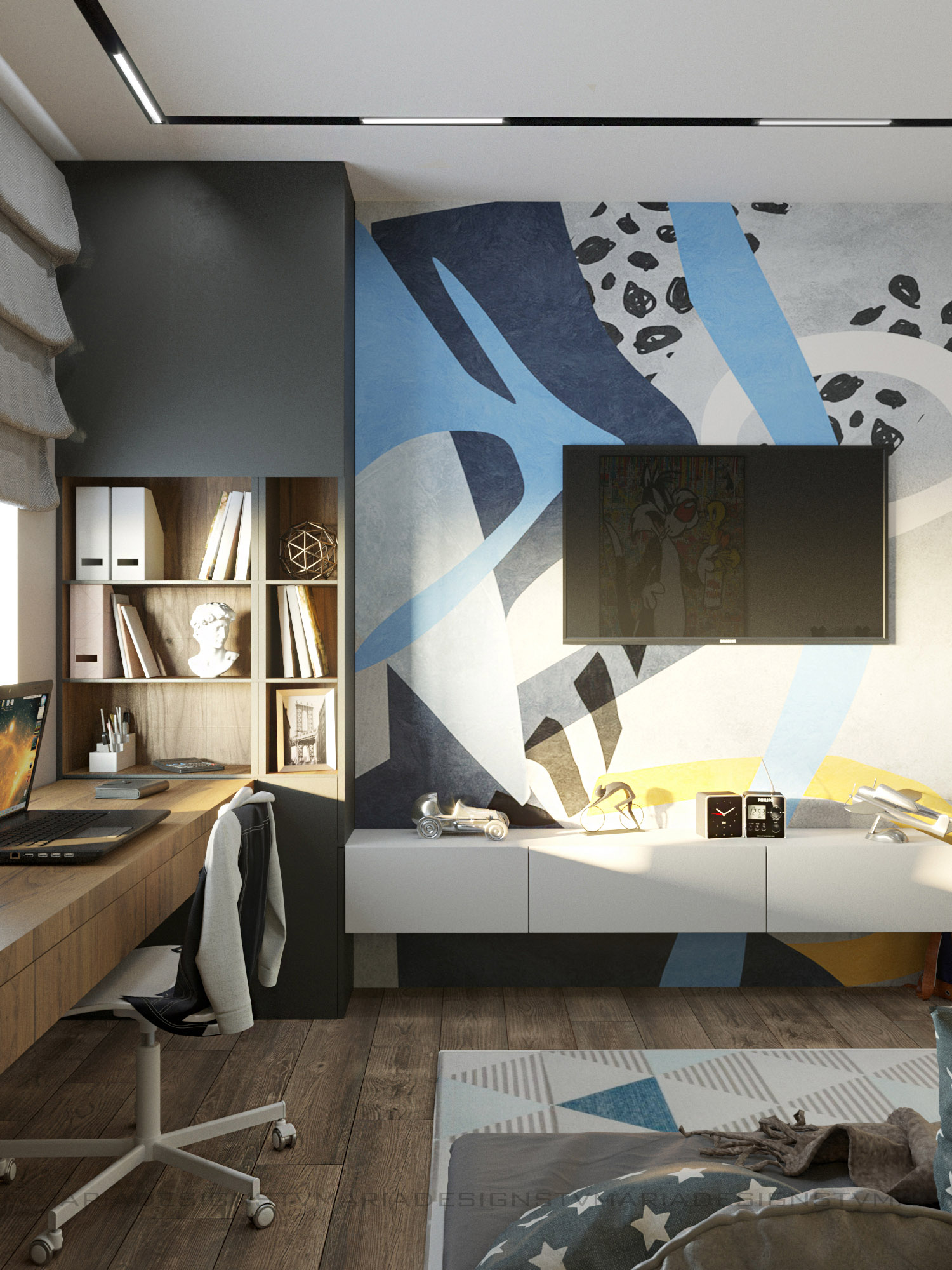 Дизайн детской комнаты для мальчика-подростка, г. Ставрополь. Заказчики — молодая семья, хотели современный и яркий дизайн. Одним из пожеланий было сделать детскую в стиле лофт, так как и вся квартира поддерживает этот стиль.
