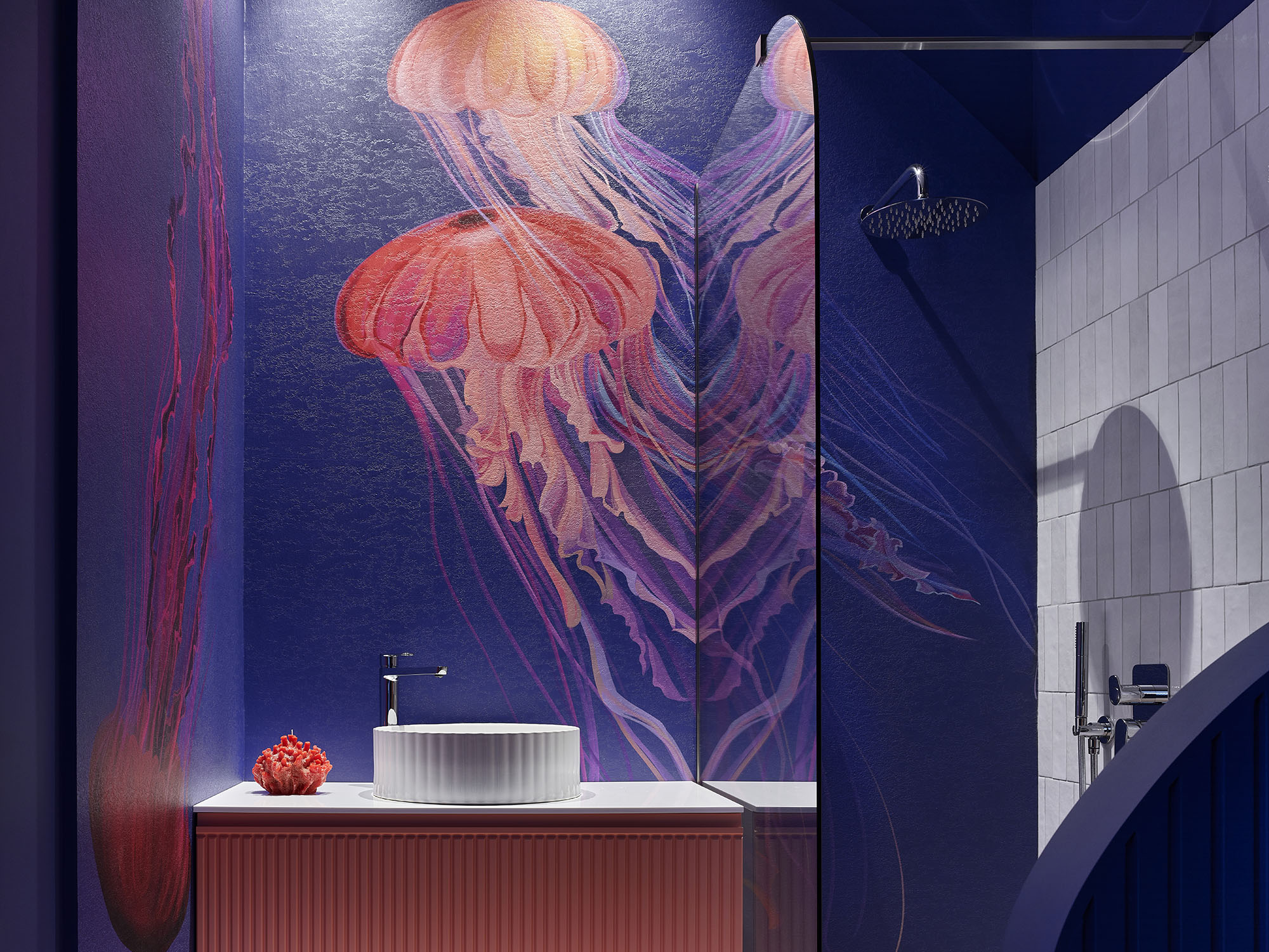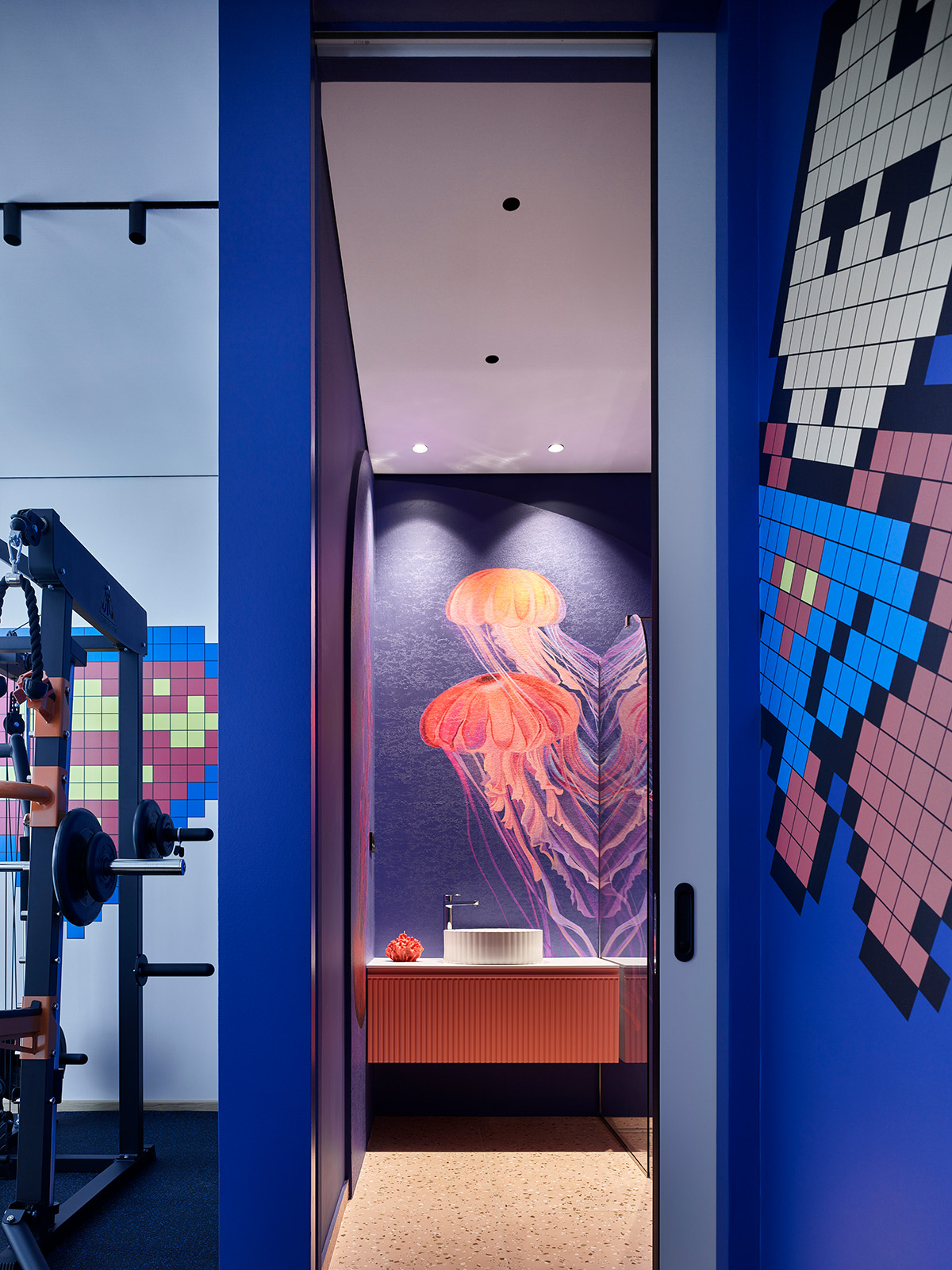 НеОбои с медузами в санузле спортзала