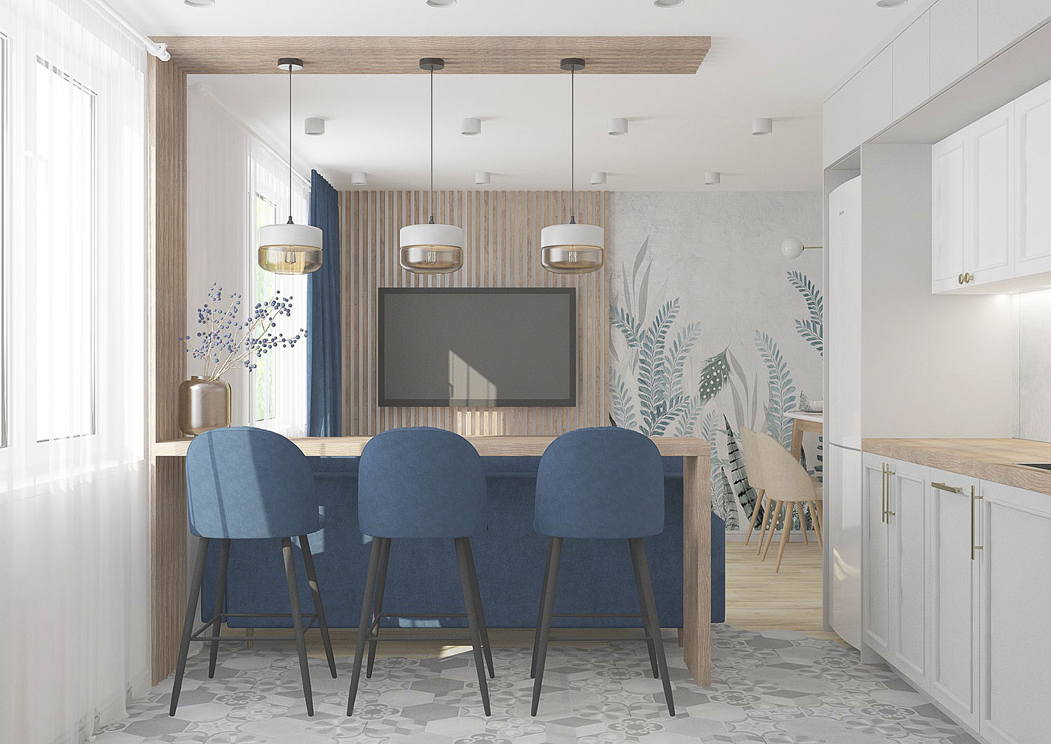 Обои из коллекции PERO в оформлении кухни-гостиной