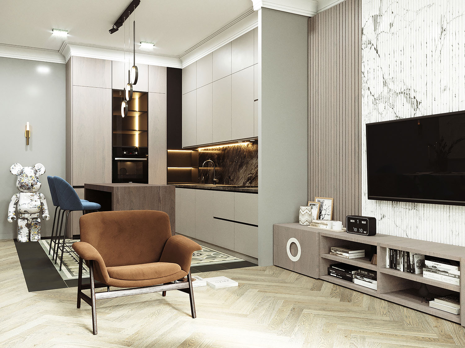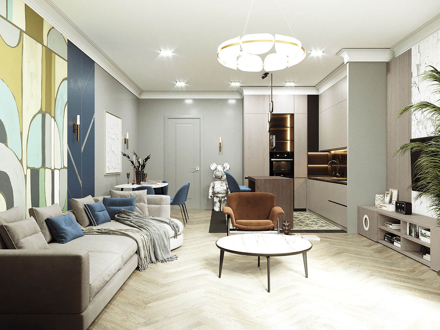 Обои из коллекции Puzzle в оформлении кухни-гостиной