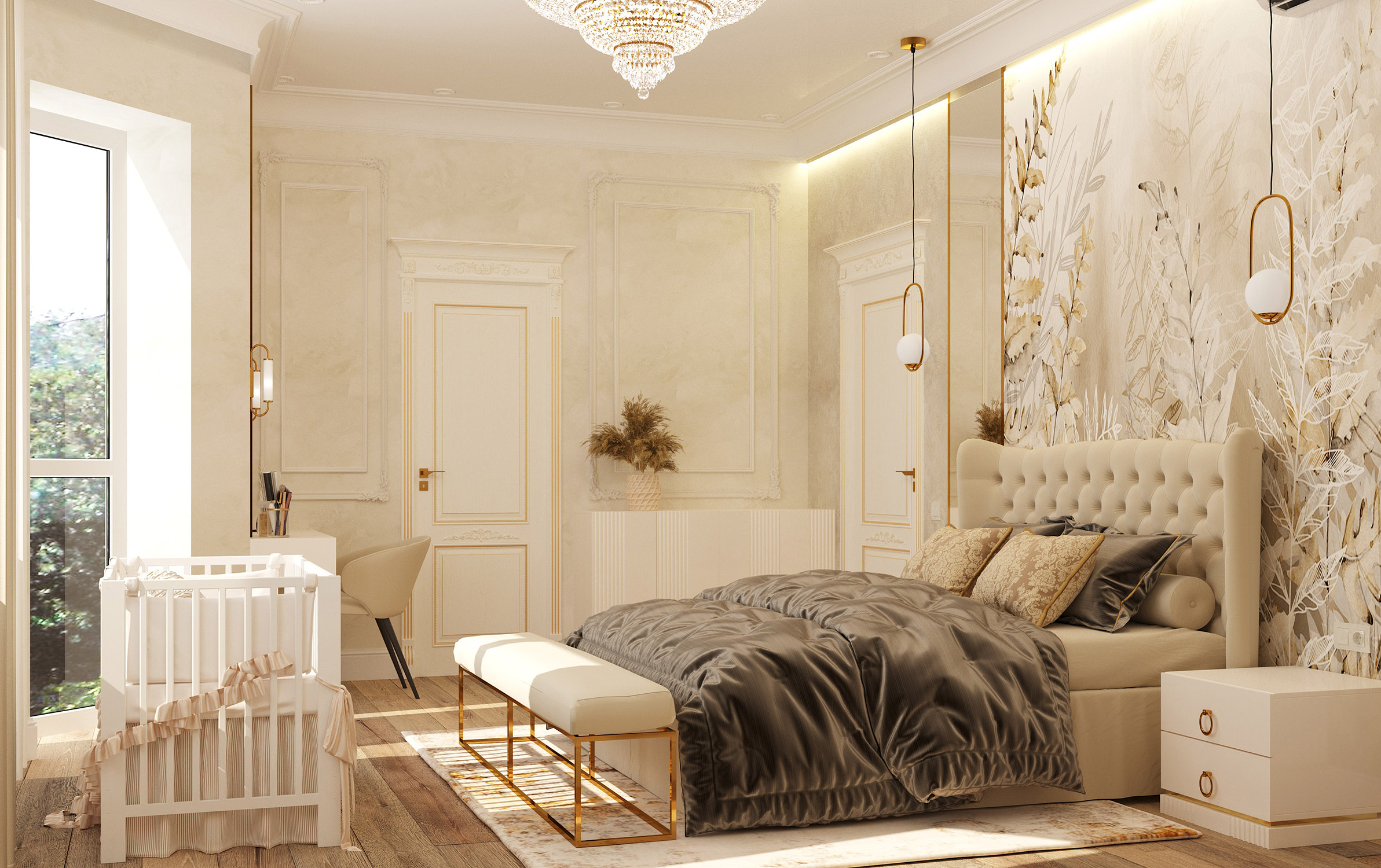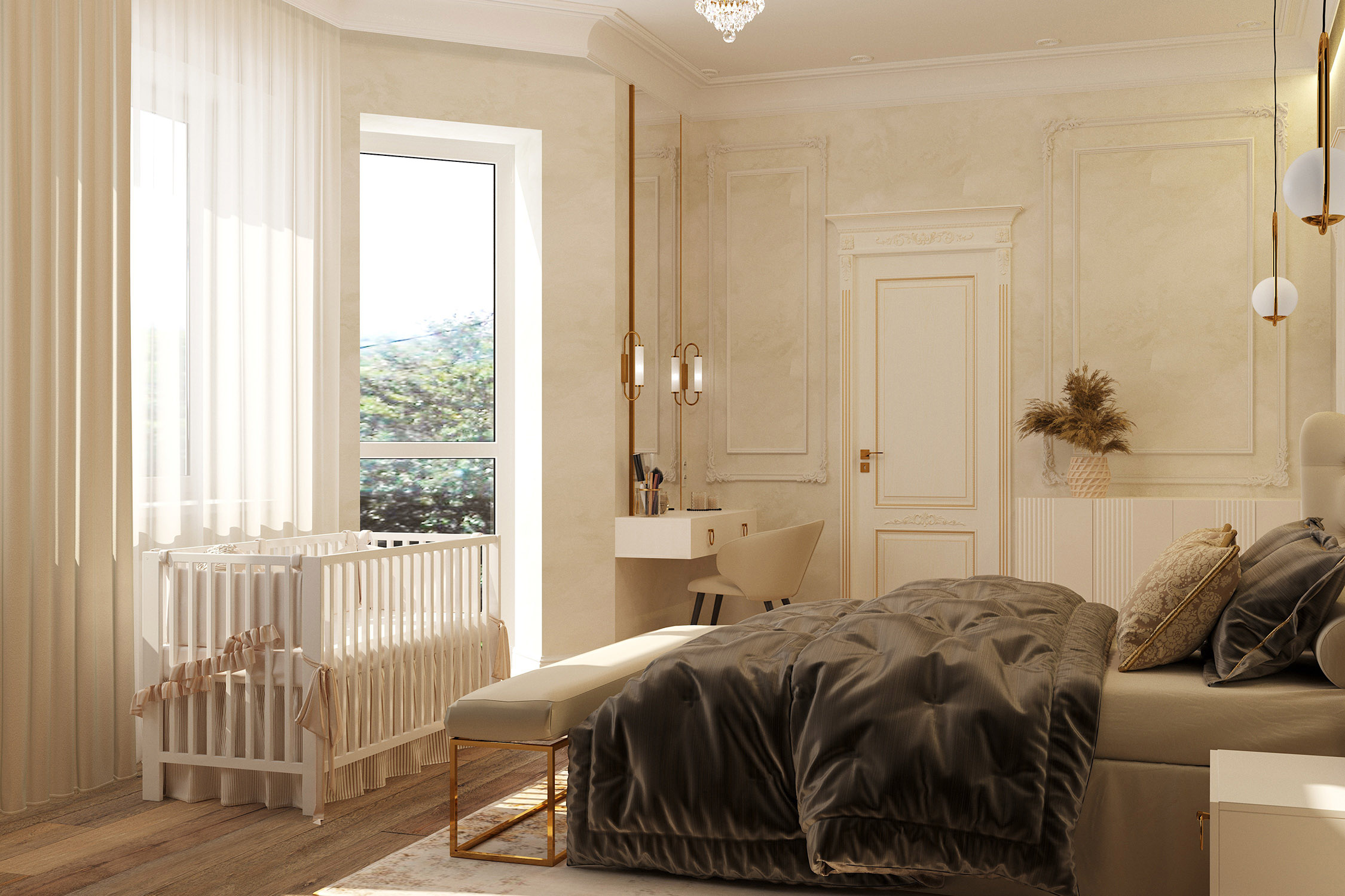 Мастер-спальня в неоклассическом стиле для молодой пары