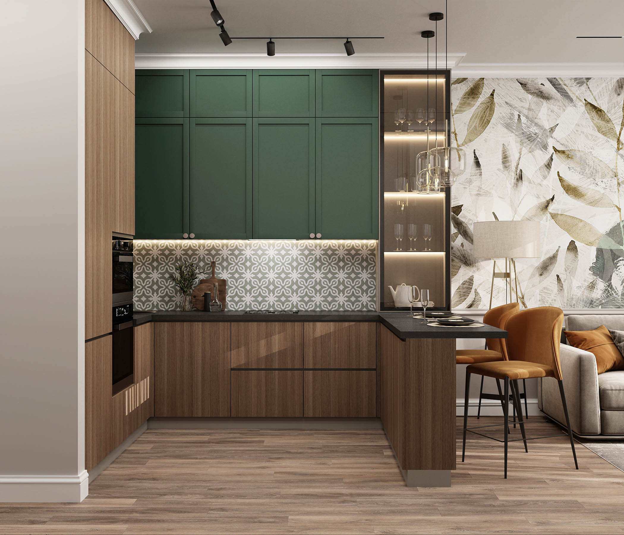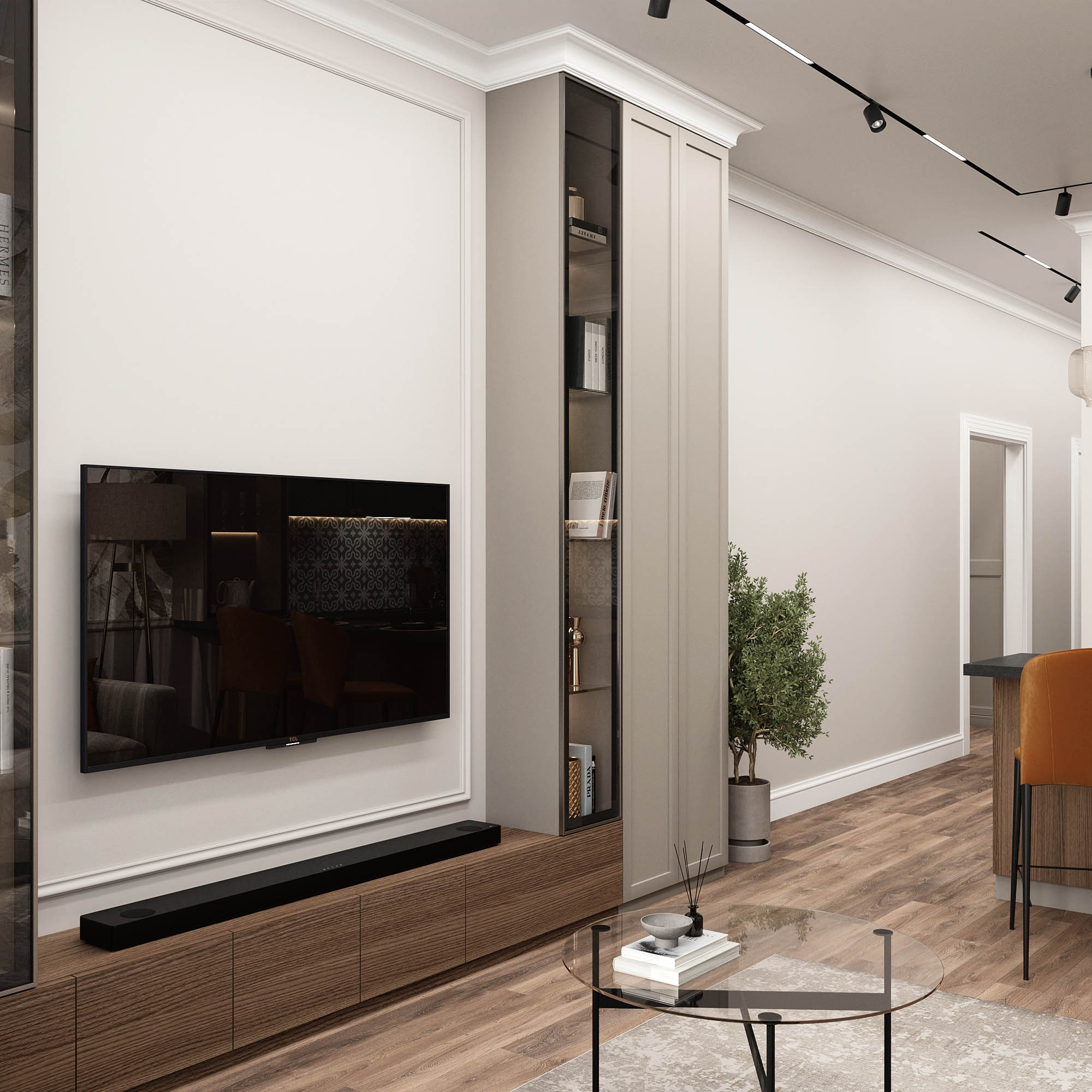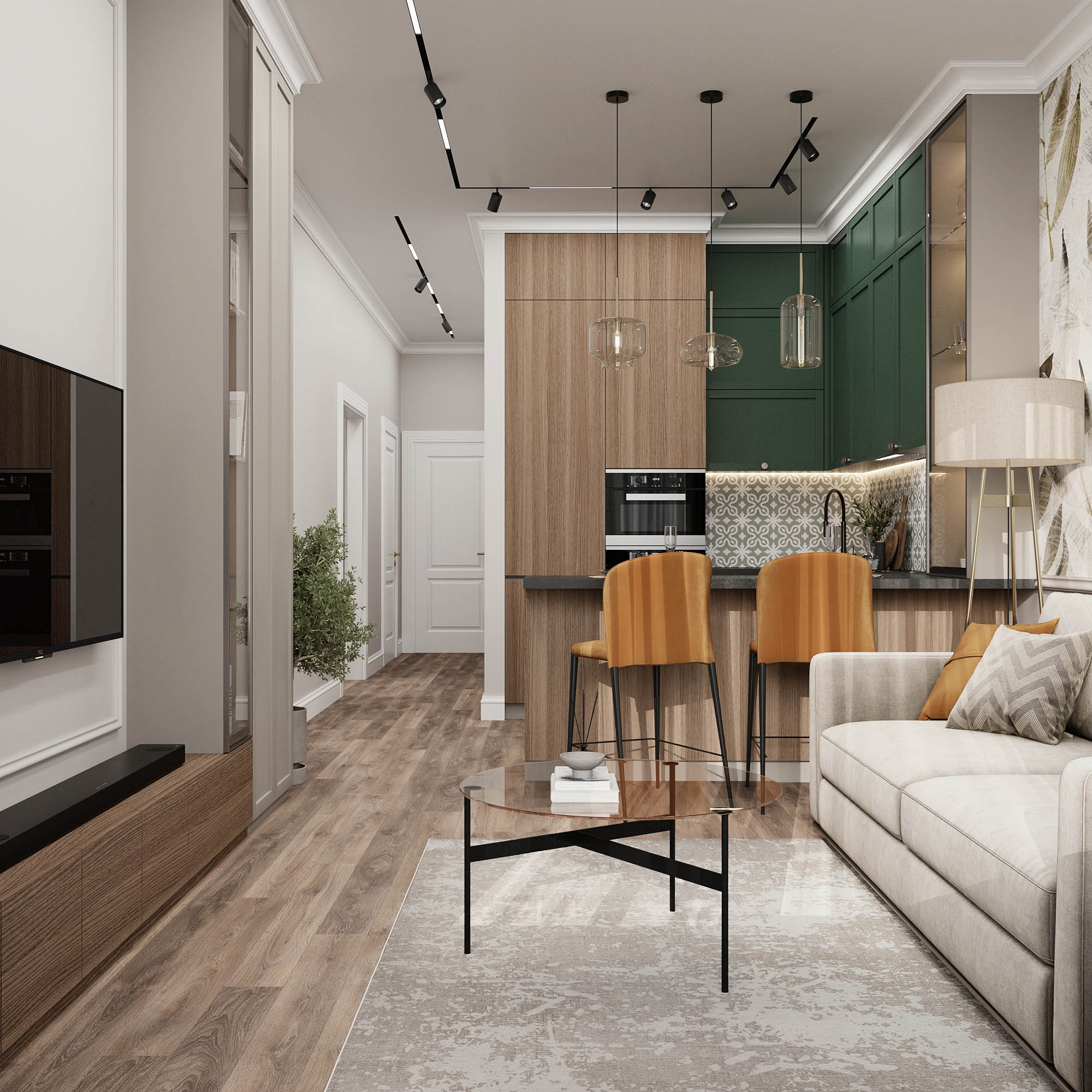 Вот что пишет нам автор об этом проекте: «Интерьер — это про акценты. Когда делаю визуализации, то бывают некоторые картинки более скучные, чем другие. Но это не значит, что каждую стенку в интерьере нужно чем-то загружать. Просто нужно правильно расставить акценты.