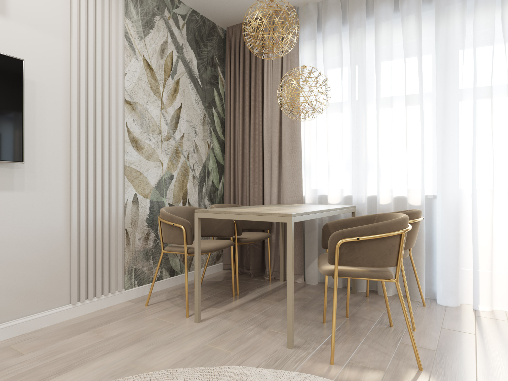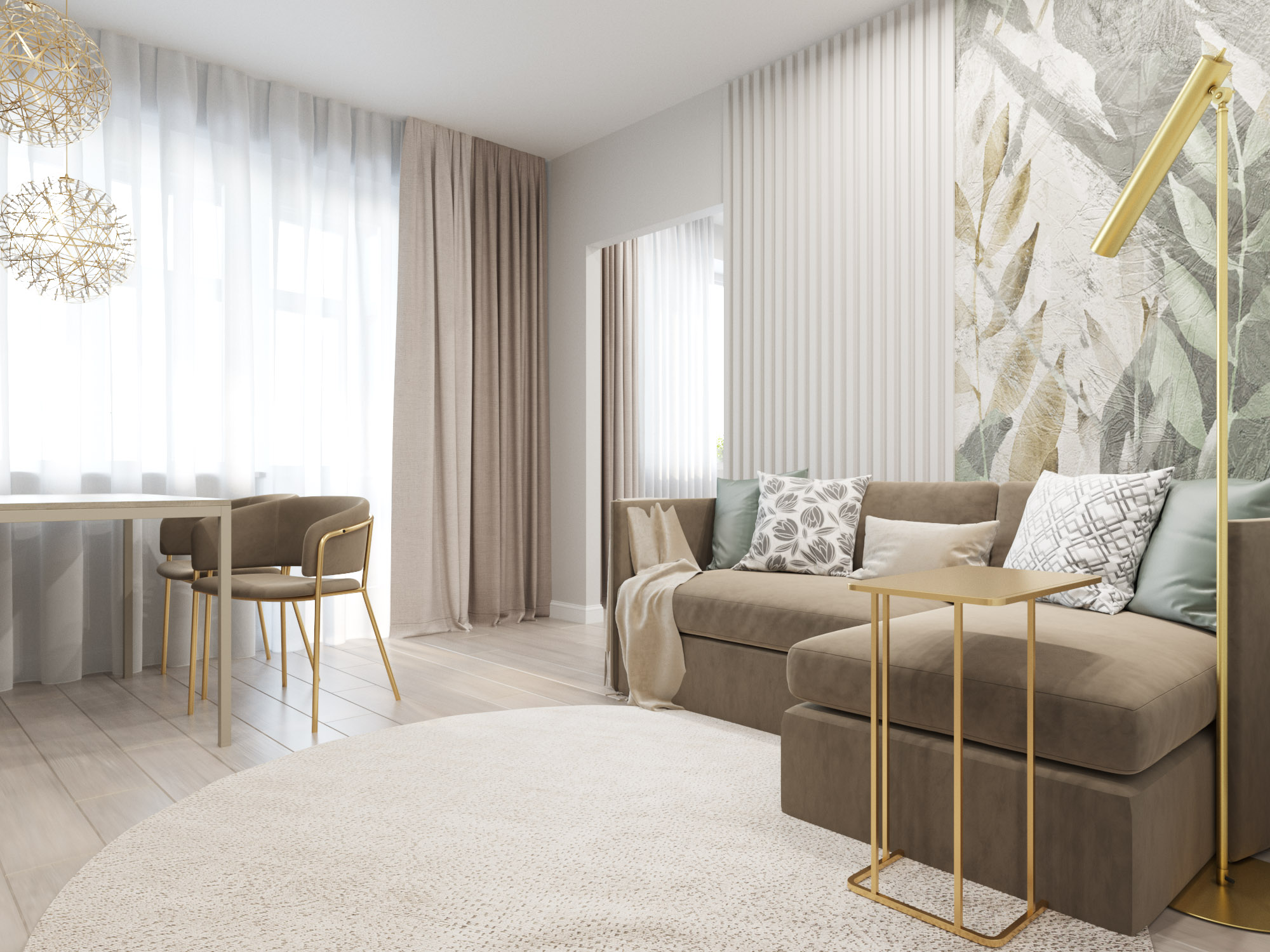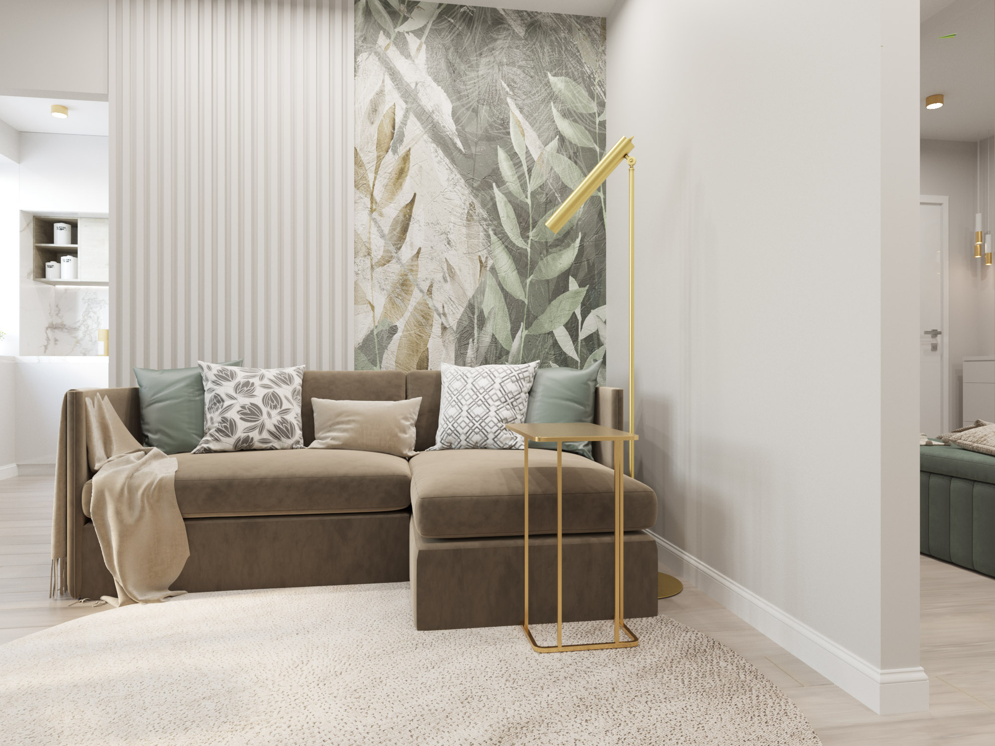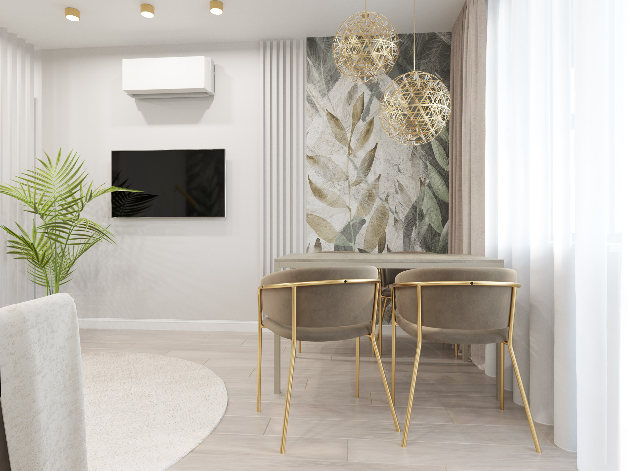 Акцентом в дизайне этой гостиной стали обои Selva-2019. Несмотря на яркие акценты, в ней очень много воздуха, растительности и свежести. В таком интерьере очень легко сохранять спокойствие и внутреннюю гармонию.