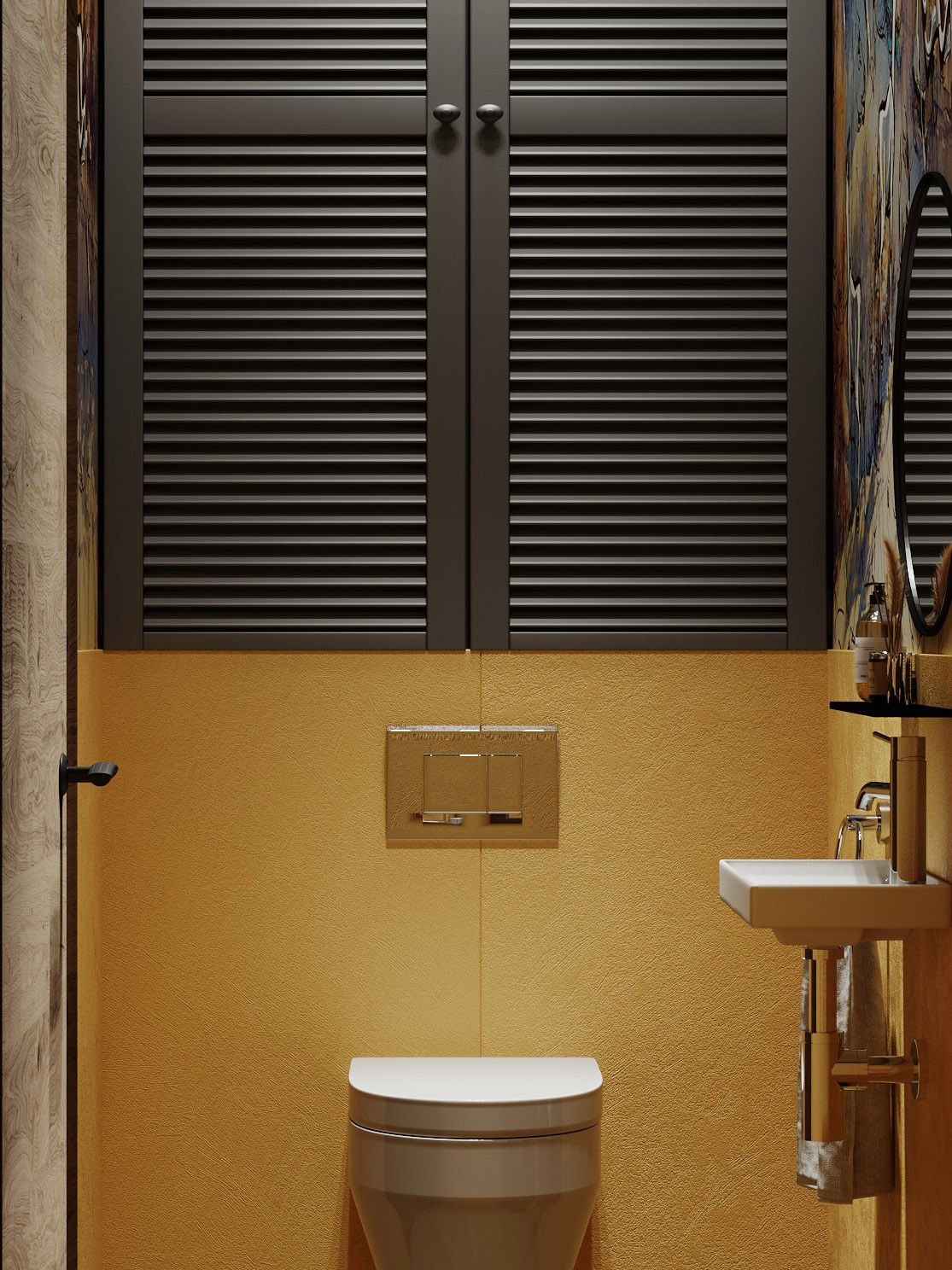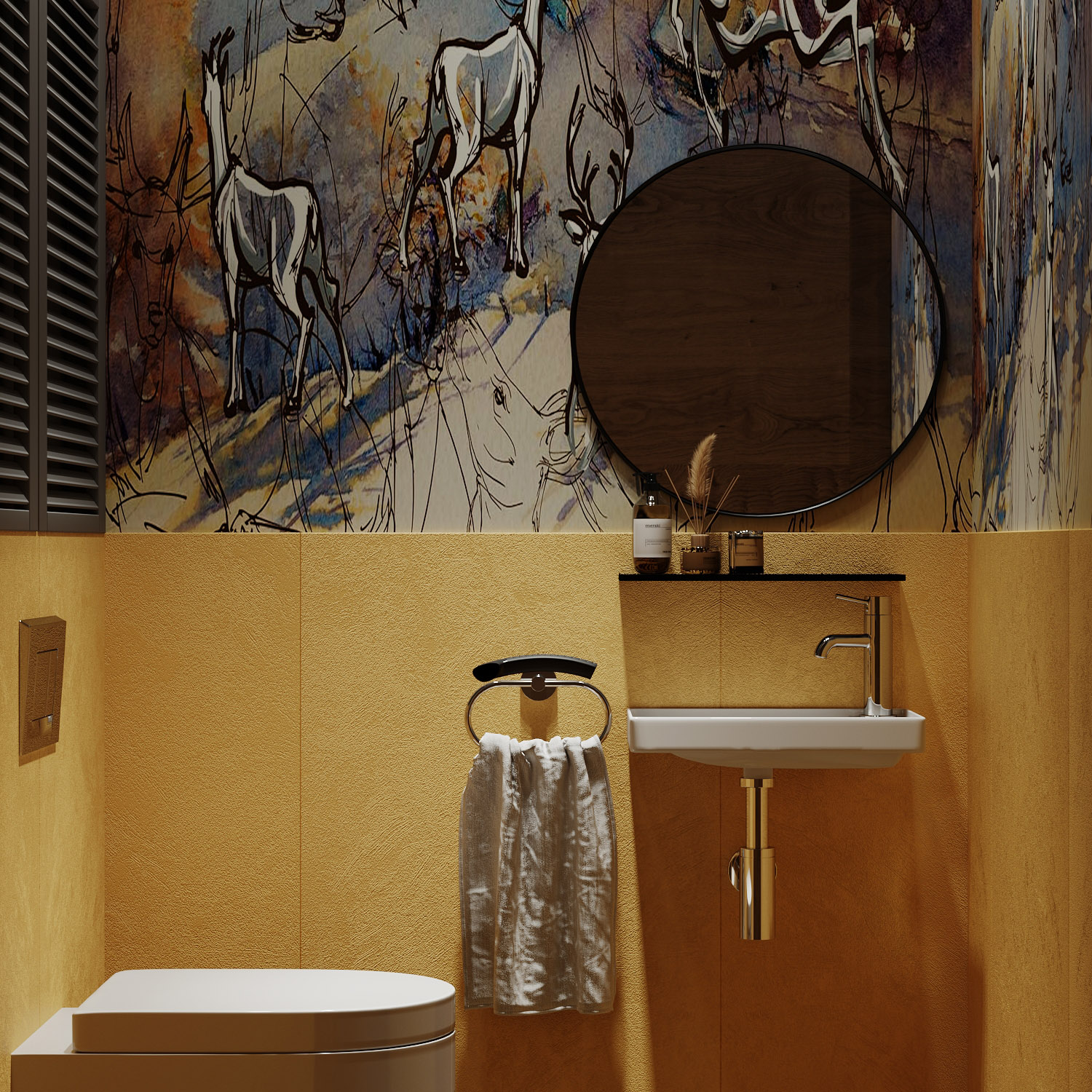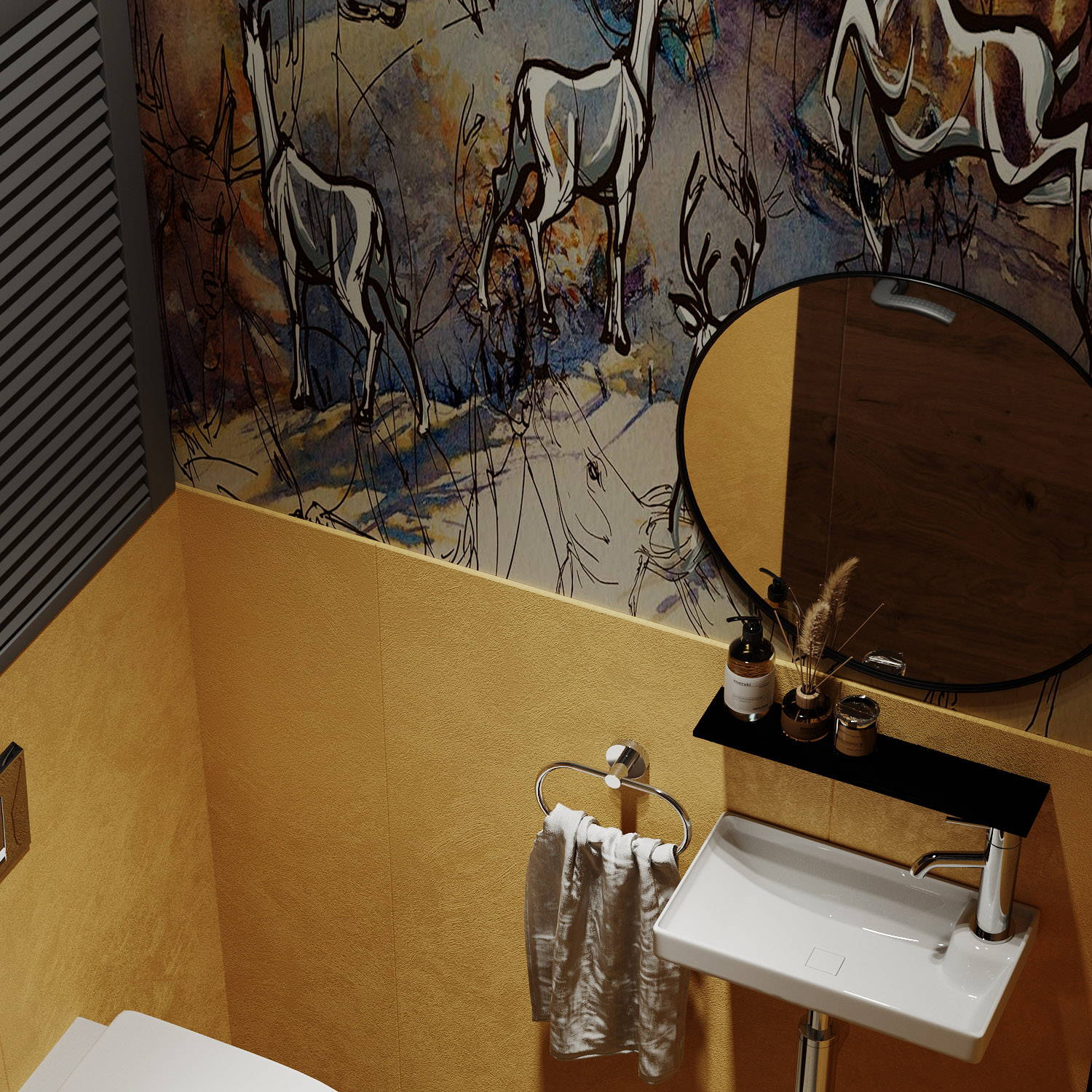 Проект санузла в загородном доме. Обои из коллекции «Siberia». Наши обои можно мыть, они не боятся влаги, долговечны и смотрятся красиво и необычно!