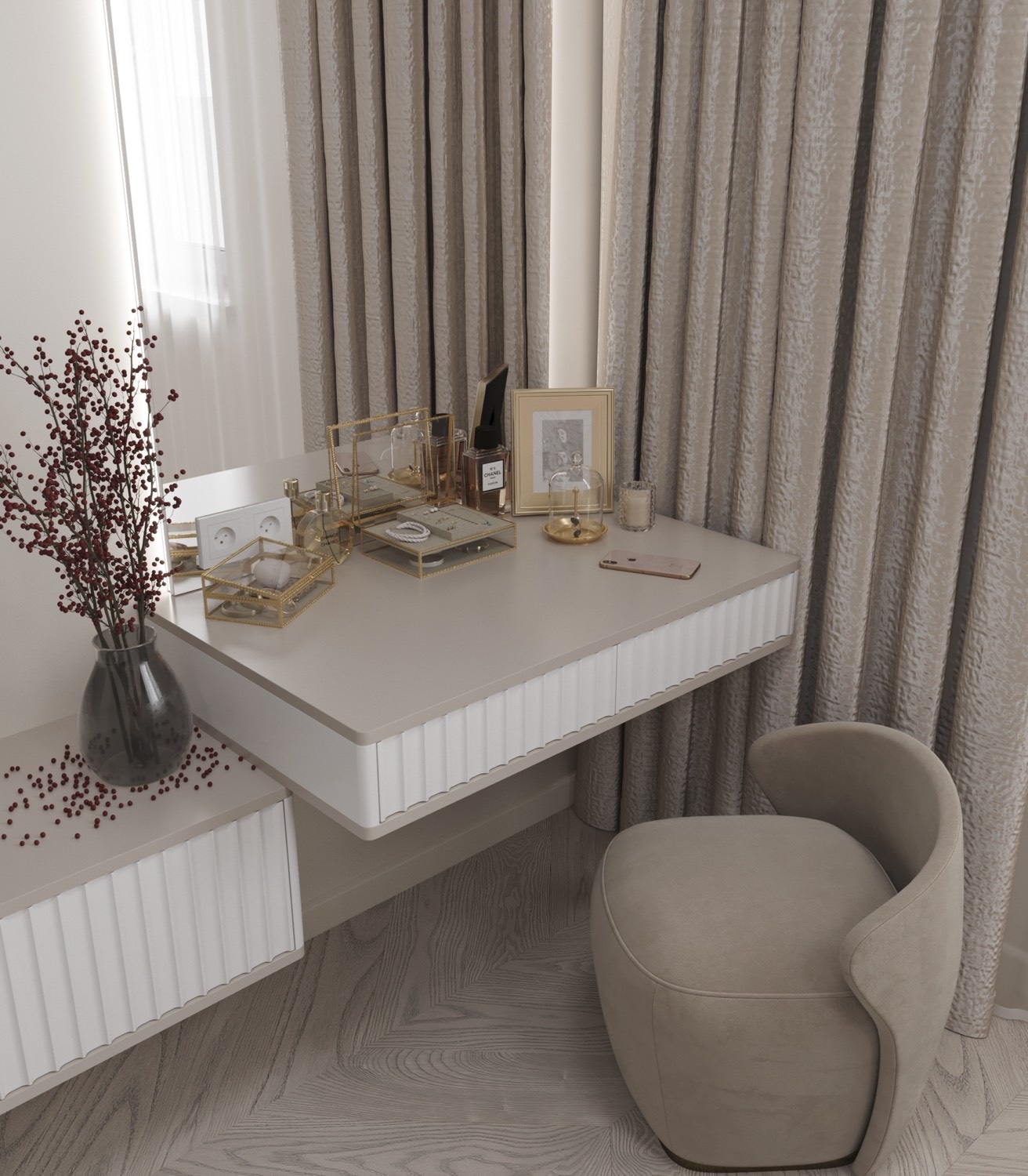 «Всегда в проектах я руководствуюсь минимализмом декора, выстраивая формы и геометрию объемами и светом, — делится с нами автор этого проекта Марина, — В данном проекте воссоздан легкий неостиль. Оригинальность и легкость стандартной архитектуре ниш придаю с помощью света и нейтральных цветов. А вишенкой на «торте» являются обои из коллекции Solo-22».