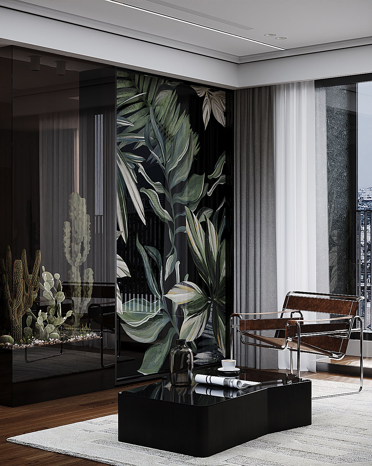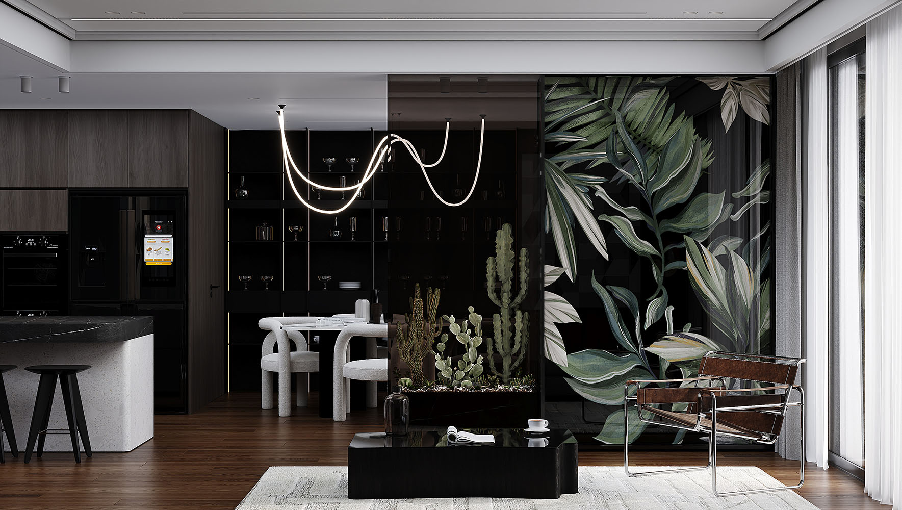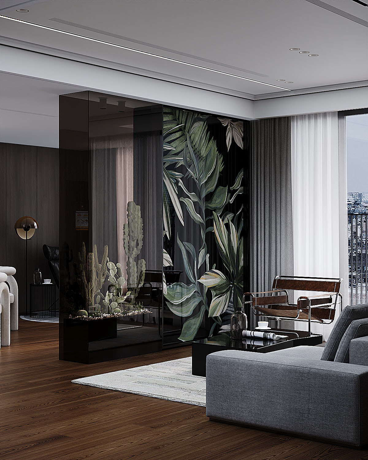 НеоВитраж Wall Street в интерьере кухни-гостиной